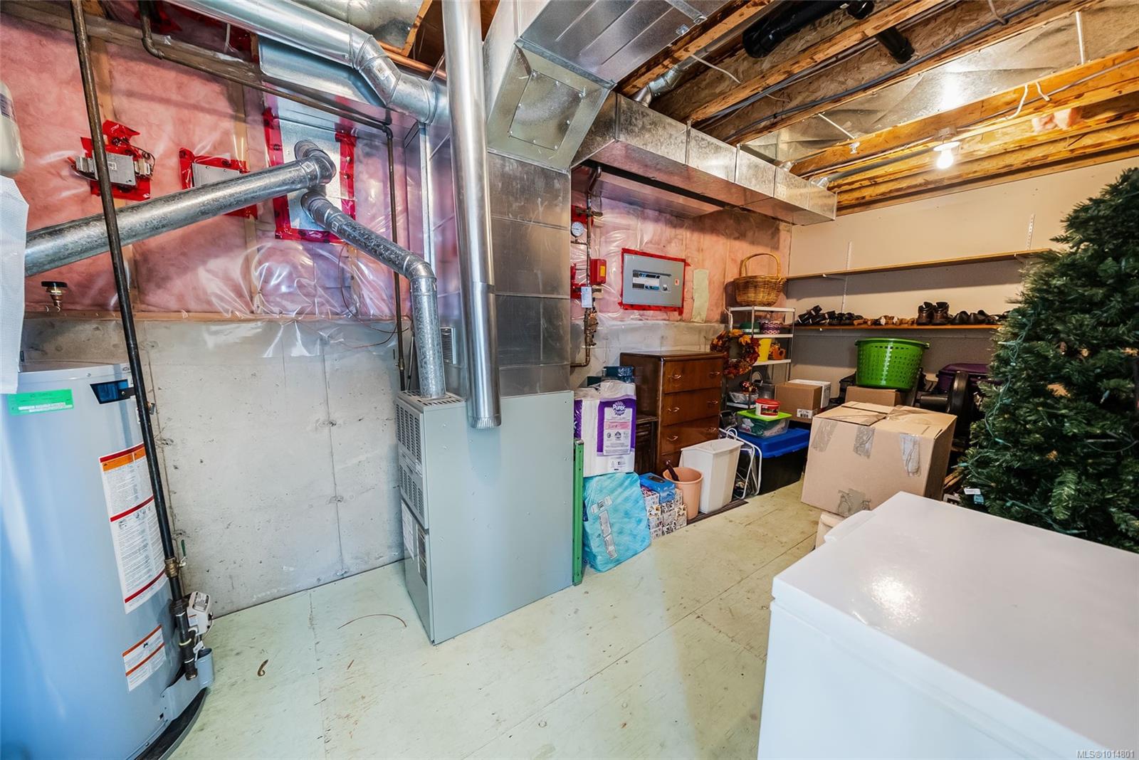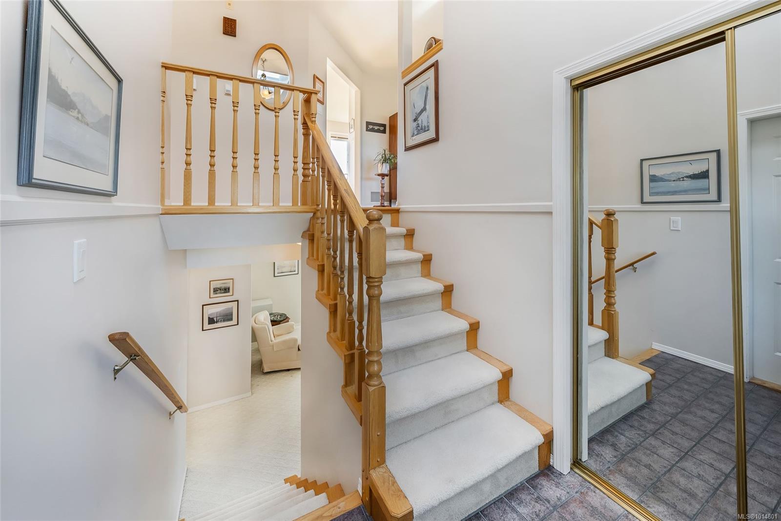 Livingroom and dining combo allows for many options for furniture placement & full enjoyment of the natural gas fireplace, Master bedroom has full ensuite with jetted tub & separate shower & Large walk in closet. Private door to sundeck. Lower level has 2 spacious bedrooms, full bath, & a family room with access to another ocean view sundeck. Large storage room plus Extra 3rd level storage. Manicured low maintenance yard. Located in the heart of Departure Bay close to the beach, ferries, golf course & shopping Other features – new hot water tank May 2023, Phantom screens, quality designer window blinds, large double garage. 55+ strata, pets allowed.