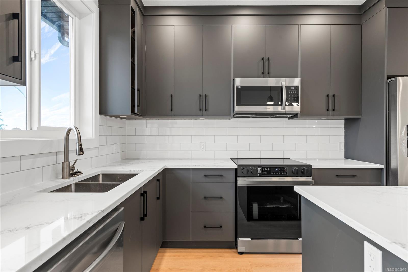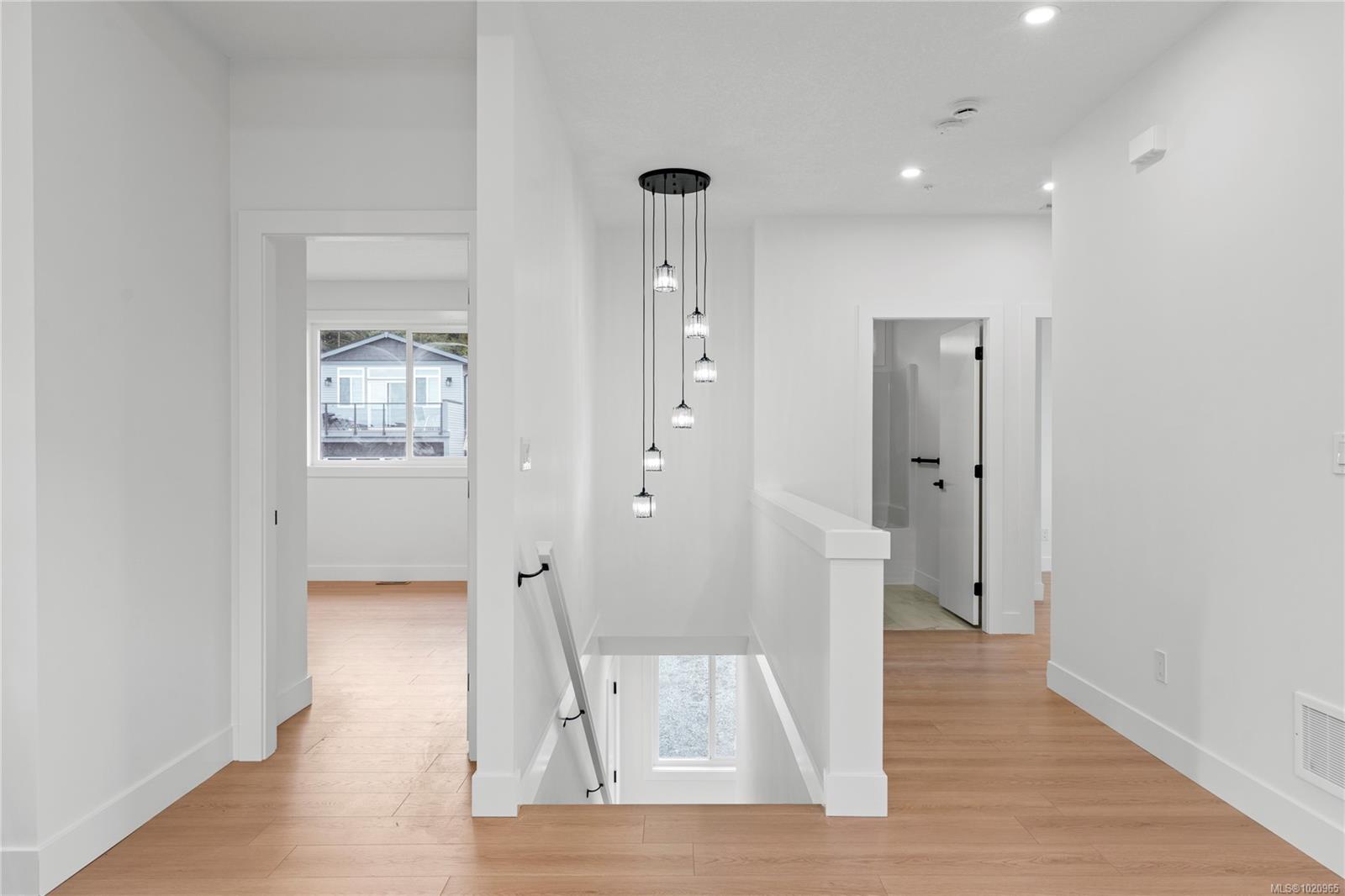 Welcome to 631 Eight Street –A Single house on a strata lot, NO Strata FEE. This is a stylish single-family home offering modern design, ocean views, and income potential. Featuring a legal 2-bedroom suite with separate hydro meter, this home is perfect for first-time buyers or investors. The main level boasts a tile foyer, 12 mm laminate floors, 9’ ceilings, electric fireplace, and a sleek dark grey kitchen with Samsung appliances, pantry, subway backsplash, and balcony to enjoy sweeping views. The primary bedroom includes a walk-in closet with organizer and a modern ensuite with quartz counters, tile floors, and glass-door shower. Built for comfort and sustainability with a heat pump, fire sprinkler system, and landscaped yard. Close to schools, parks, VIU, shopping, and transit. Book your showing today!