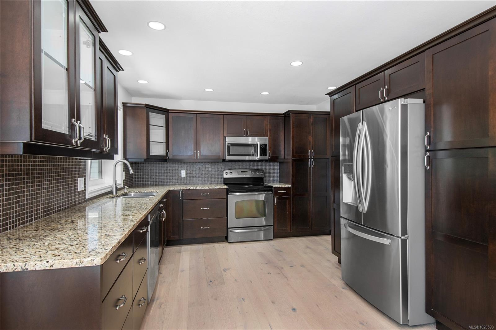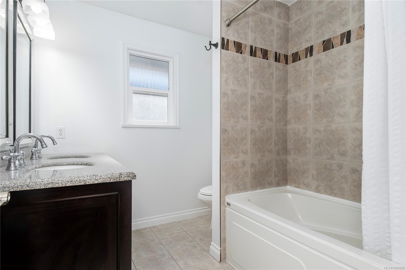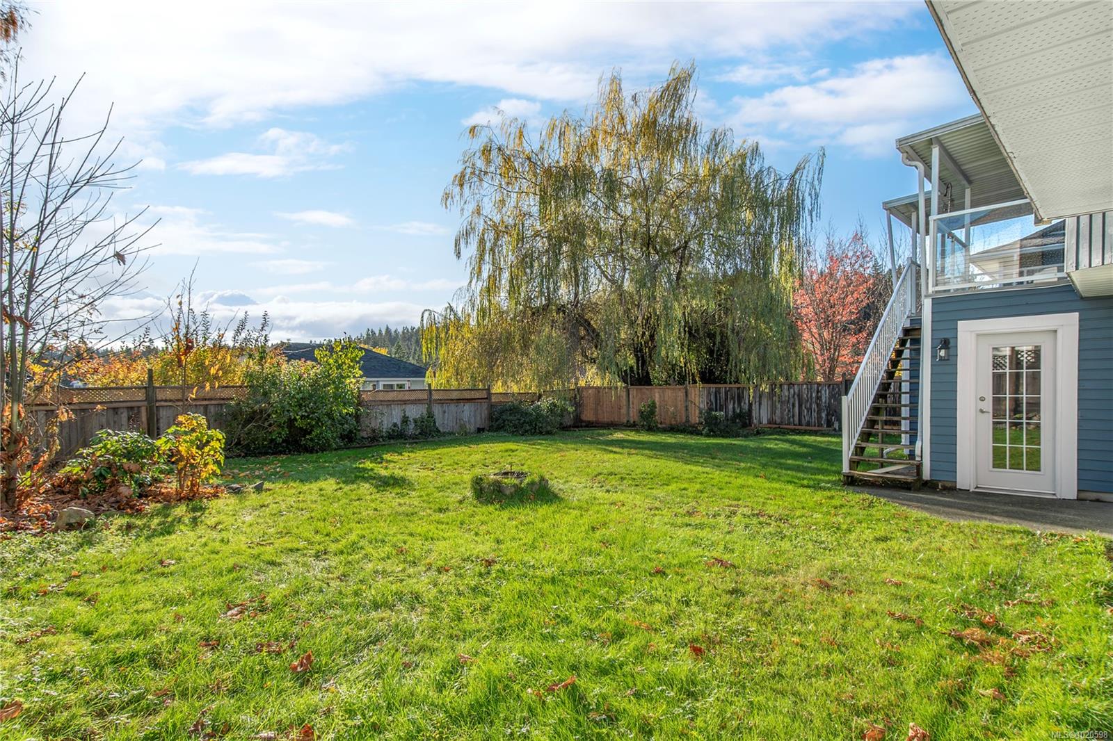 Spacious family home in a desirable Campbell River location. This 5-bedroom, 3-bathroom, 2,293 sq. ft. residence offers a sun-filled main level with engineered hardwood flooring, an open layout ideal for gatherings, and three bedrooms with warm hardwood floors, including a spacious primary with ensuite. The updated kitchen features wood cabinets, granite countertops, and access to the carport. The lower level is a pleasant surprise—boasting two additional bedrooms, a powder room, and a generous family room with a gas fireplace and durable vinyl flooring, perfect for movie nights, a home gym, or welcoming guests. Outdoors, enjoy a fully fenced and landscaped yard with mature trees, ideal for summer BBQs, gardening, or relaxing afternoons. Situated in a highly walkable Campbell River neighbourhood, you’re steps from schools, parks, and everyday amenities. Additional features include a vaulted ceiling, covered deck, in-floor heating in the main bathroom, and ample storage.