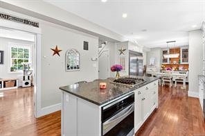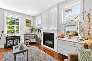 Built in 2015, this residence offers a sophisticated blend of modern design and timeless comfort. The main living area showcases soaring 10ft ceilings, expansive windows, custom built-in cabinets/shelving and a gas fireplace, seamlessly connected to a chef-inspired kitchen finished with striking Tahsis blue marble countertops, a massive fridge, custom bar built-ins, and integrated laundry and recycling systems. A dedicated media room, enhanced with 7.5 surround sound, double sound insulation, and outdoor speakers, creates an elevated entertainment experience. Designer light fixtures and refined finishes add a touch of elegance throughout. Outdoors, the property features a beautifully landscaped yard, complete with irrigation, an outdoor fireplace, and a garden shed. A heat pump, insulated 4-ft crawl space, and efficient systems ensure year-round comfort. Ideally situated close to the river, breweries, and local amenities. This home is a show stopper and must see listing!