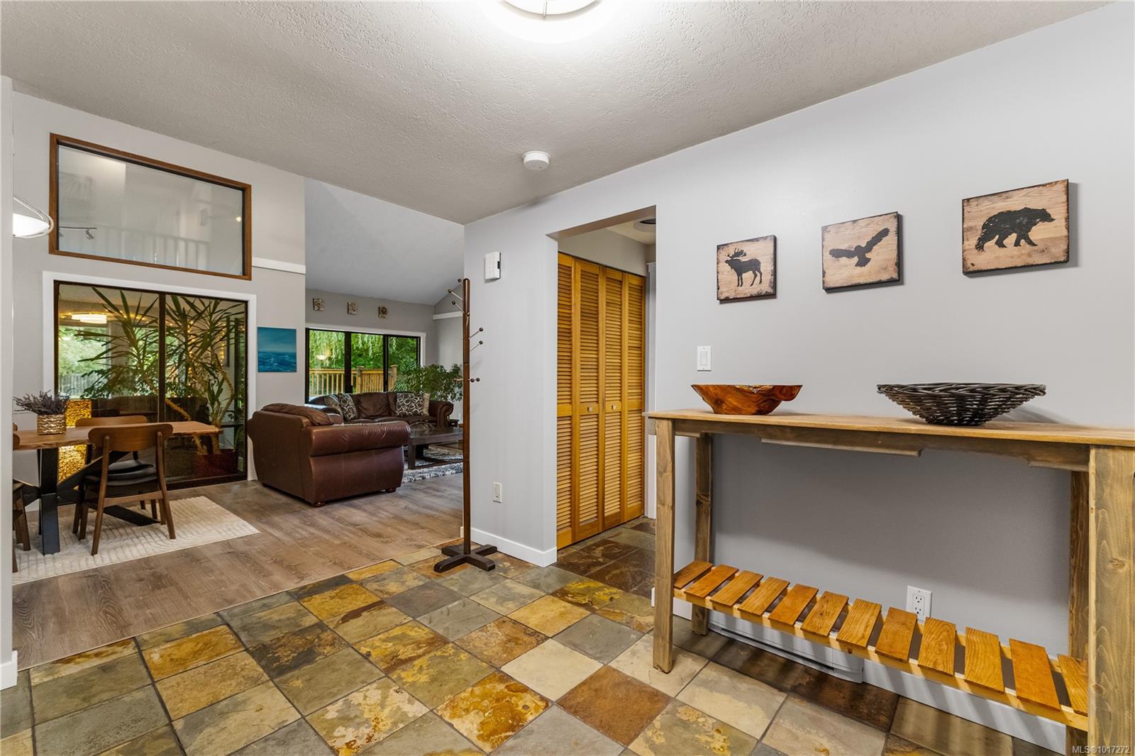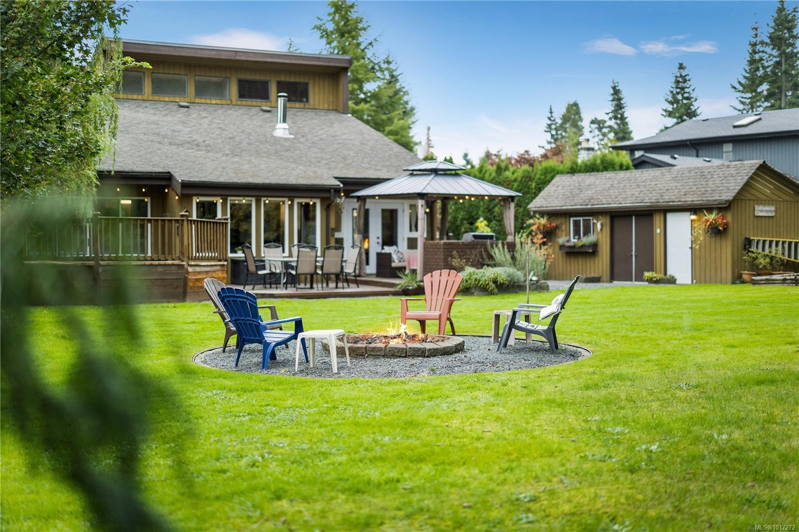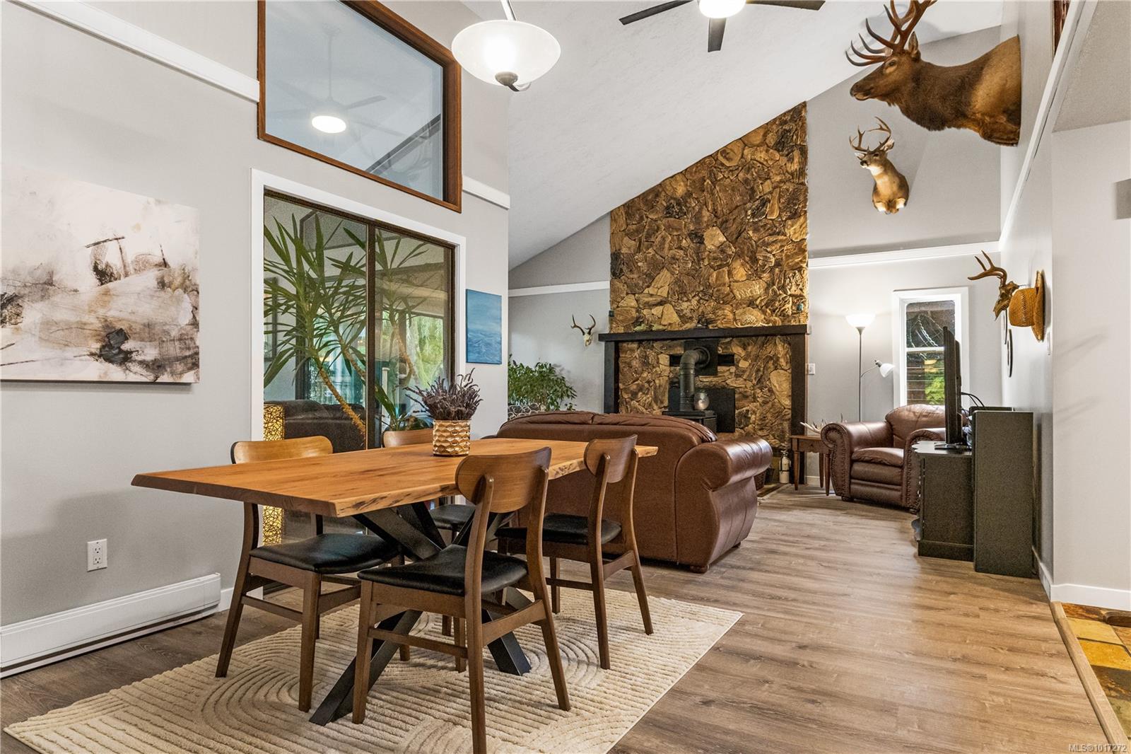 Welcome to this charming West Coast contemporary in the sought-after Mitlenatch neighbourhood. Set on a private 0.54-acre lot backing onto a local park, this home offers plenty of space for family living and outdoor enjoyment. The main floor features an open-concept design overlooking the peaceful backyard—perfect for entertaining or keeping an eye on the kids. A large den/sunroom adds flexibility for a home office, playroom, or cozy reading space. Upstairs are three spacious bedrooms, including a primary suite with 3-piece ensuite. The double garage and generous driveway offer loads of room for boats, RVs, and all your toys. Recent updates include a refreshed kitchen, gas fireplace, mini-split system, washer and dryer, flooring, and more. A true family home in a quiet area close to trails, beaches, and all the natural beauty Campbell River is known for.