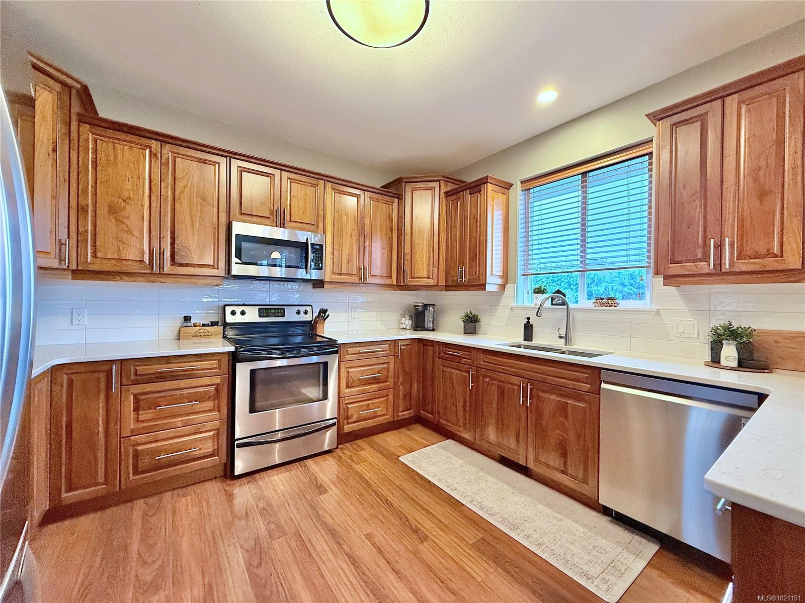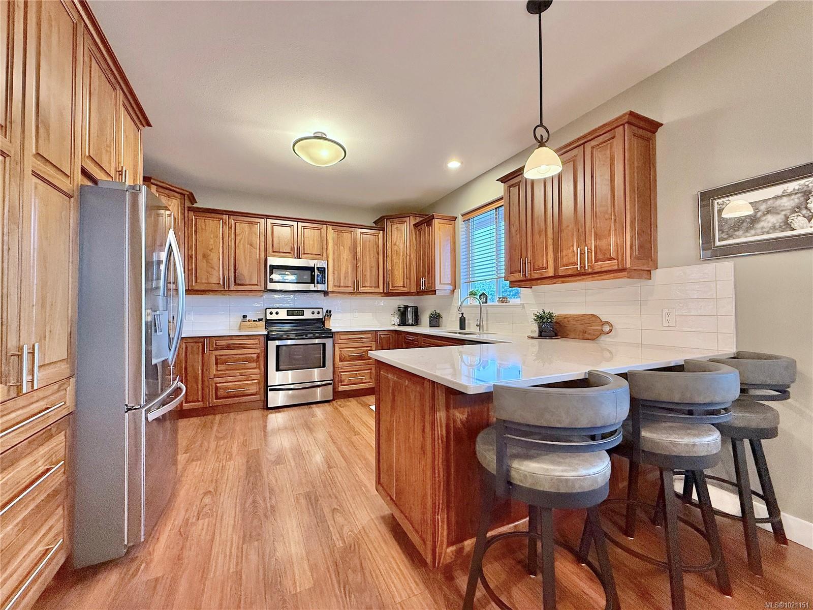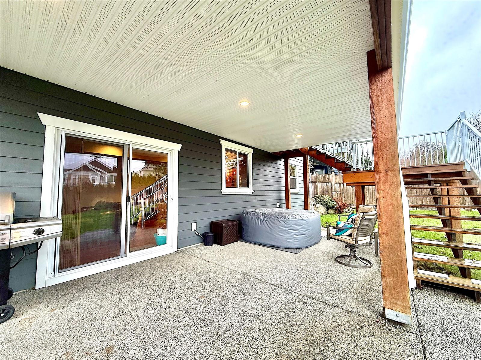 Welcome to this beautifully maintained family home offering space, comfort, and stunning ocean views. The main level features three bedrooms and two bathrooms, complemented by a sizeable walnut kitchen with stone countertops and ample workspace. The kitchen flows seamlessly into the open-concept living and dining areas, creating an ideal setting for family gatherings and entertaining. Step outside onto the expansive, sun-drenched deck- the perfect place to relax, host a BBQ, or enjoy the breathtaking ocean vistas. On the lower level, you’ll find a fourth bedroom, a den, and a spacious family room with a wet bar—offering excellent versatility for guests, teenagers, or a home office setup. The flat, sunny lot provides plenty of outdoor space for family enjoyment, while also offering ample RV parking. Located in Willow Point near all levels of school, recreation, and many walking trails. This warm and welcoming home is move-in ready and perfectly suited for your family’s next chapter.