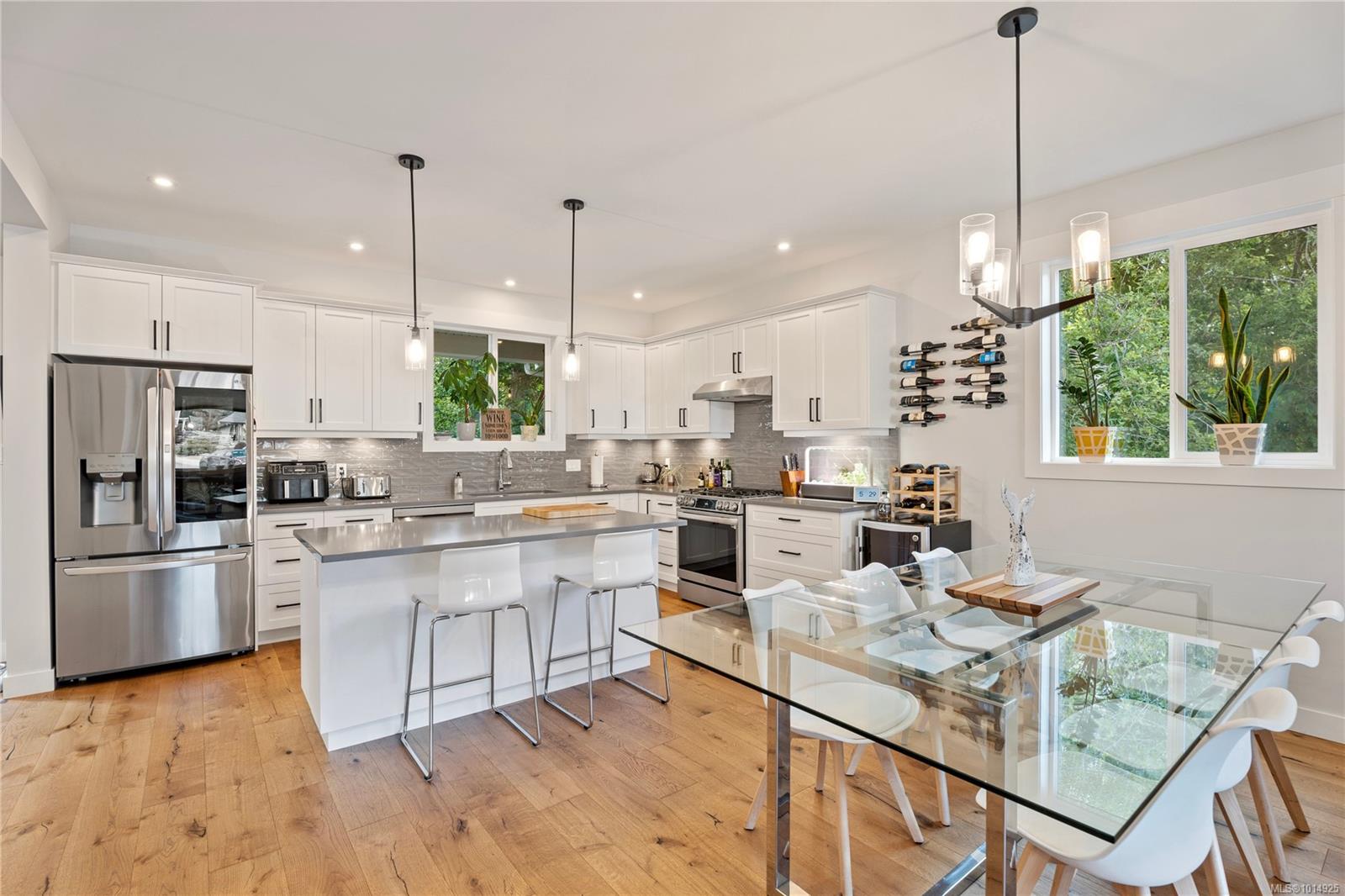 Superb home in a sought-after family neighbourhood! Located in Parkwalk at Maple Bay, this 3-year-old, 2,555 sq. ft. home sits on a beautifully landscaped 0.19-acre lot backing onto green space for added privacy. The main level offers open-concept living with a natural gas fireplace, heat pump, & a spacious kitchen featuring a large island, pantry, and premium LG appliances. Step through the sliding glass doors to a generous 26’ x 10’ covered deck—perfect for entertaining. Upstairs you’ll find three bedrooms, a 5-piece main bath, & a spacious primary suite with a 4-piece ensuite & large walk-in closet. Bonus: a legal 1-bedroom suite with full kitchen, eating nook, living area, 4-piece bath, and all new LG appliances—ideal for family or rental income. The extra-long garage offers space for a workshop and includes 100 sq. ft. of overhead shelving & 240 V EV plug. Ample RV parking and a foundation ready for a future shed/workshop. Just steps from Maple Bay School, sports fields, & courts!
