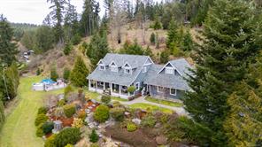 Not a neighbour in sight on what could be your own private 5-acre retreat at the base of Maple Mountain! Once a peaceful B&B, now a cherished family home, this beautifully maintained 3,300 sq.ft. house sits on a stunning acreage with a cherry blossom-lined driveway. The main floor offers a spacious primary bdrm & a den that can function as a fourth bedroom or guest suite. Upstairs, two bdrms with walk-in closets & private ensuites connect to a bonus room—perfect as a playroom, storage or creative space. The 1,000 sq.ft. finished basement is ideal for a gym, TV lounge or games area. Step outside to enjoy the pool, hot tub, fire pit & direct trail access for hiking & biking. A double-bay shop & add’l outbuilding offer plenty of space for a workshop & all the big toys you can dream up – RVs, Boats, ATVs! Located just minutes from Maple Bay & a 10-minute drive to Duncan’s shops & restaurants, this property offers a perfect blend of privacy & convenience. Data is approx; verify if important