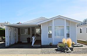 Affordable, charming retirement home in North Nanaimo in the heart of Crest 11 Estates. Constructed in 2005 and has maintain all its beauty and charm. Easy care living in this 924 sq ft home featuring 2 bedrooms, 2 baths, tons of natural light with spacious living room, vaulted ceilings and open concept floor plan. Laminate flooring throughout, extra shelving and storage space. Private yard with storage shed plus 14×18 covered area just off the kitchen in the back yard, raised garden beds, R/V space on side of driveway and much more. Situated in close proximity to Home Depot, Super Store, the Big Mall and a vast array of stores of every kind for convenient living. It is all within easy reach. 55 plus park, small pets allowed, close to shopping and most major amenities. Quick possession available.