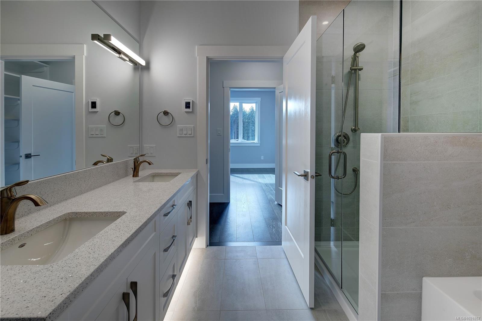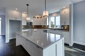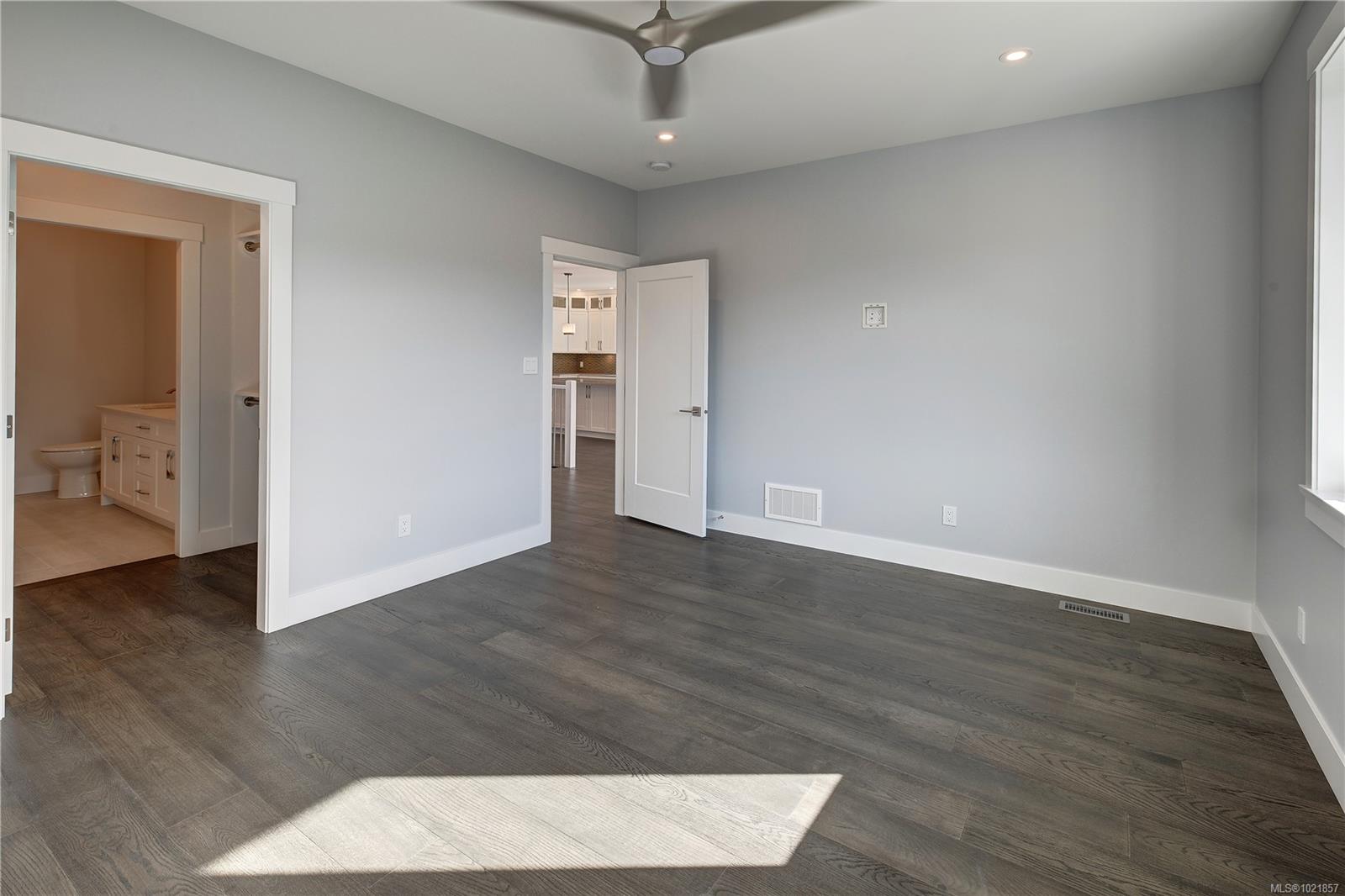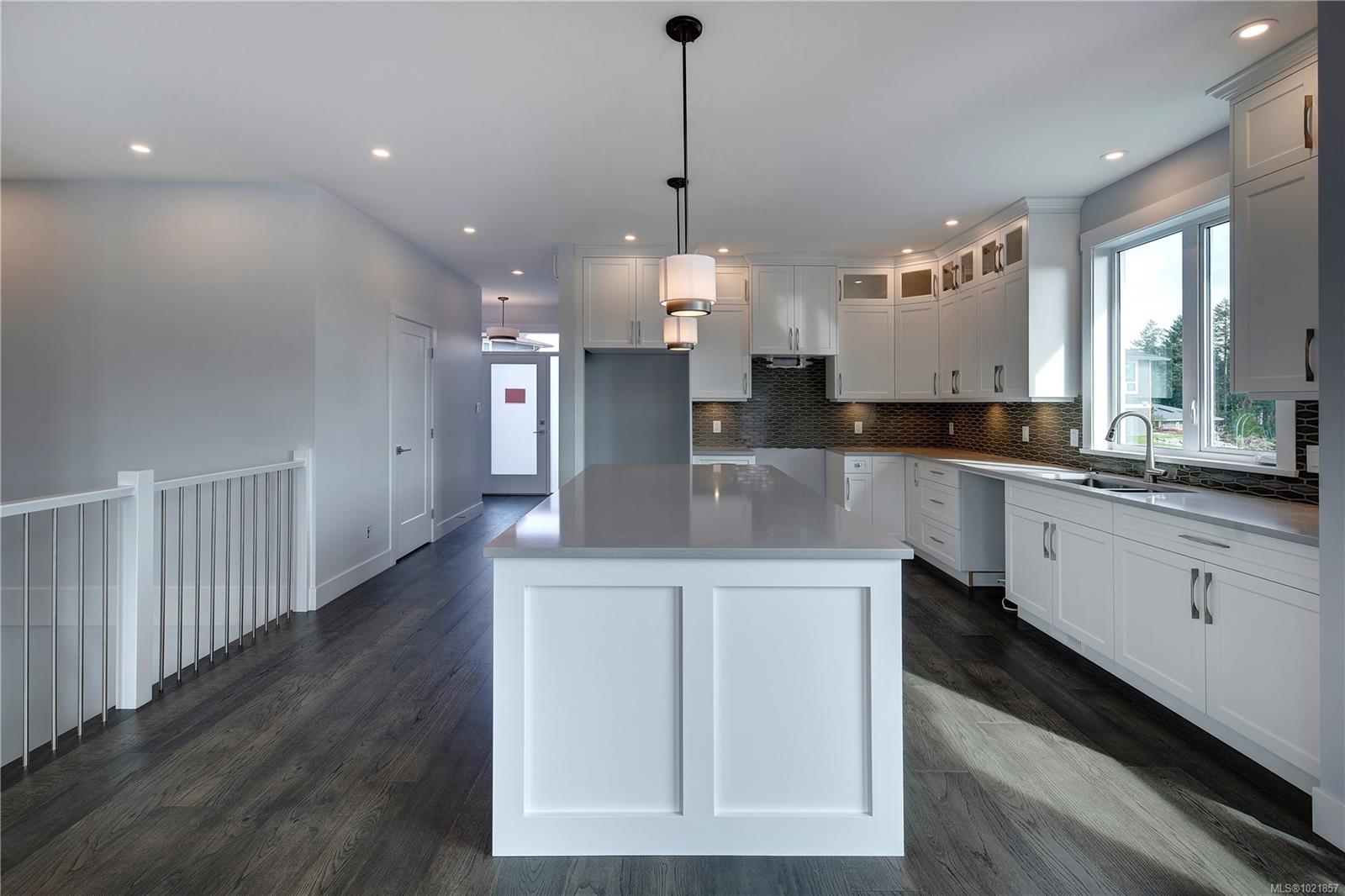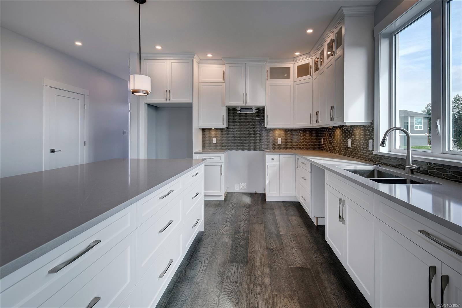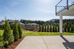 Dare to compare! Look at what this beautifully finished brand new home offers. Level entry with walk out lower level and over 2200 sq ft. High end finishing like extensive hardwood and heated tile floors. Heat pump, hot water on demand, quartz counters, gorgeous kitchen cabinetry, high ceilings , 5 piece ensuite and impressive feature wall fireplace. Big deck (plus patio space), lovely mountain views and lots of morning and evening sun. You’ll love the landscaping in the quiet upscale development close to ferries, airport, golf, all marine activities etc. This home has it all!!
