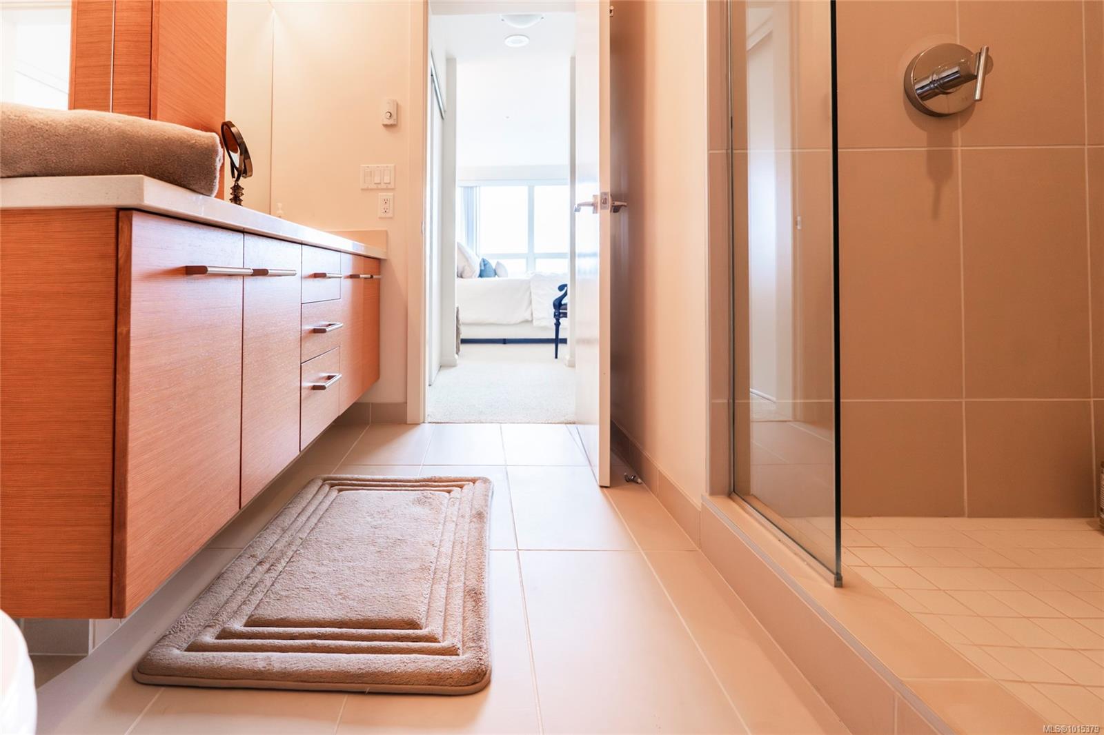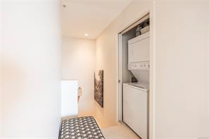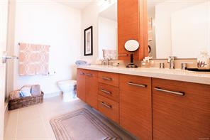 Inside, the home balances modern design with west-coast warmth. The kitchen anchors the main floor as a true showpiece, sleek cabinetry, generous storage, and a large central island with bar seating. The living room centers on a large window framing harbour views. Upstairs, both bedrooms occupy their own retreat, each offering sweeping ocean views and the comfort of a private ensuite. Everyday convenience continues with two secured underground parking stalls and a giant private storage room that offers plenty of space for bikes, paddleboards, or seasonal items. Experience the best of harbourfront living in Nanaimo.
