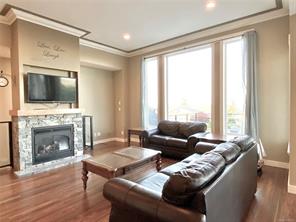 Nestled in prestigious Oakridge Estates, this 15-year-old home is a blend of luxury & comfort, boasting spectacular views of ocean, mountains, and city. Spanning 2993 sq. ft, it features 5 beds & 4 baths, perfect for spacious family living. Heart of the home is its open concept living area, adorned with high ceilings, elegant wood floors, abundant natural light, leading to a sunny deck. Gourmet kitchen is equipped with custom cabinetry, a large island, stainless appliances and wine rack, ideal for culinary enthusiasts. Master suite is a retreat with stunning views, walk-in closet & spa-like ensuite, including double sinks and soaker tub. Property also includes a family area, a bath, and a 2-car garage. A standout feature is the 2-bedroom legal suite with its own entrance, driveway, offering versatility for income potential or family use. This home is more than a residence; it’s a lifestyle choice for those valuing beauty, comfort & elegance. Measurements approx, verify if important.