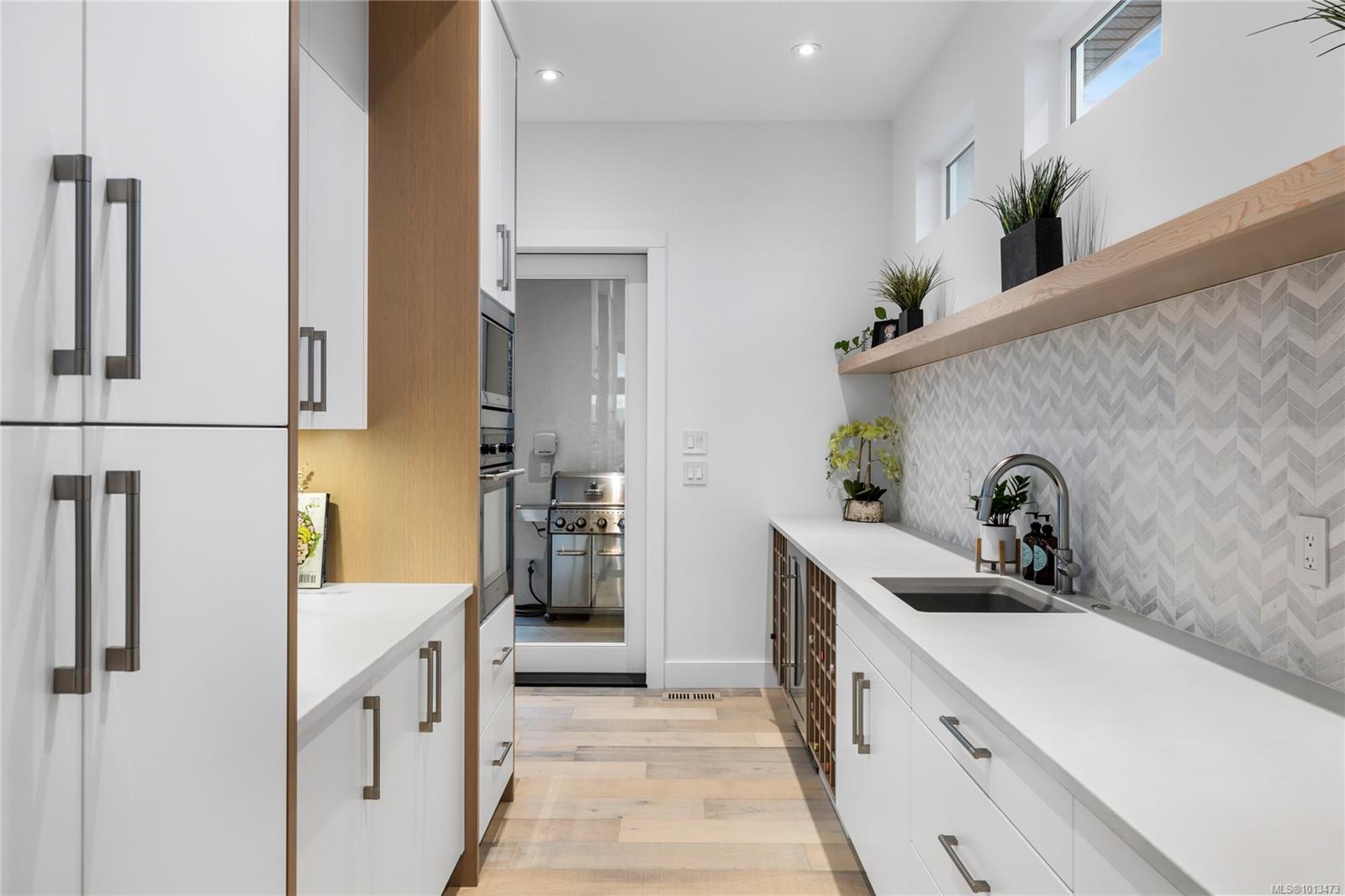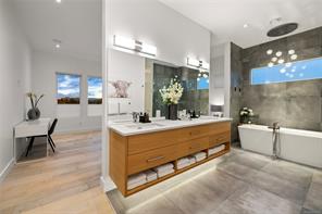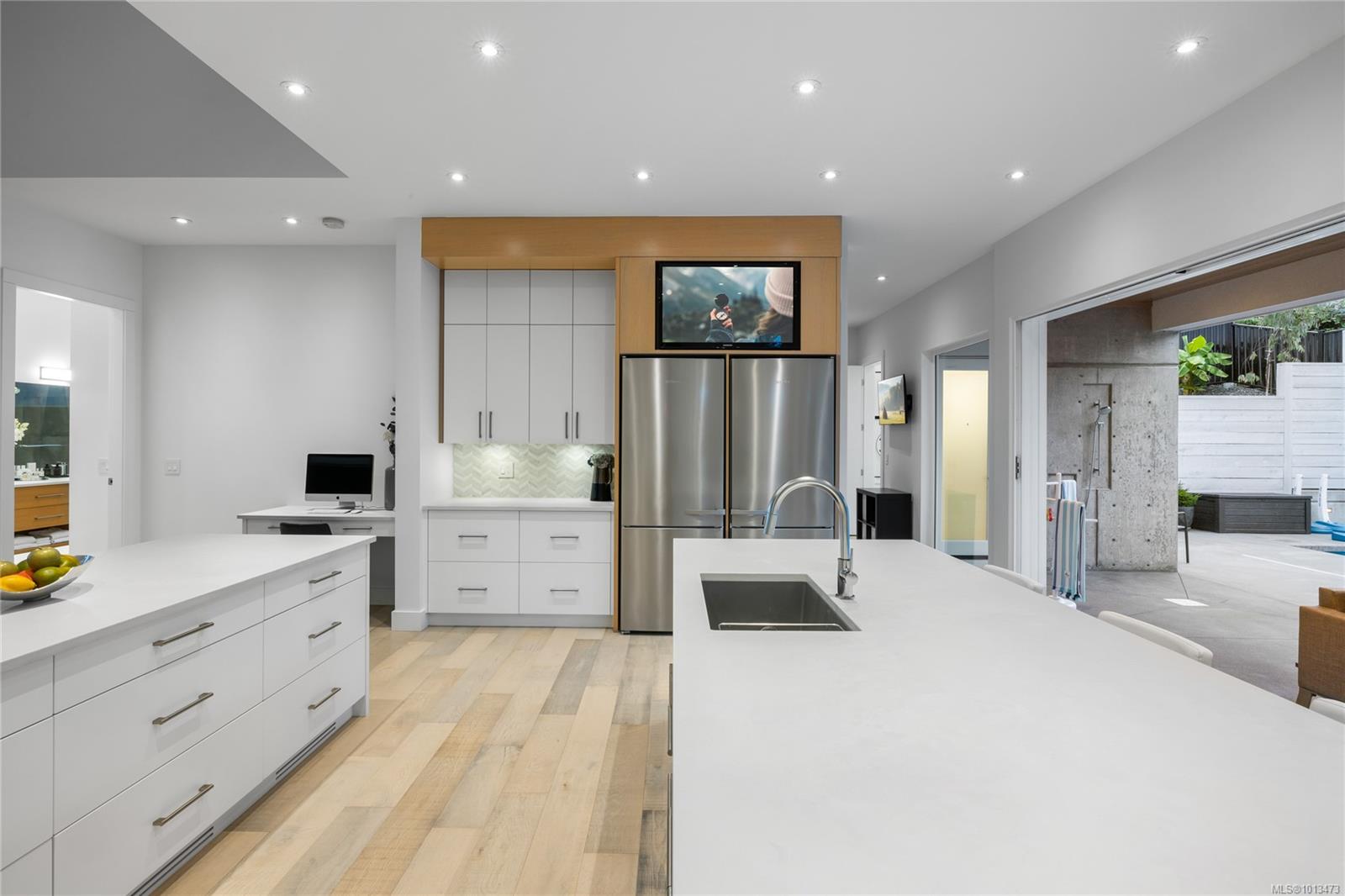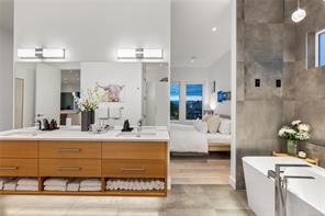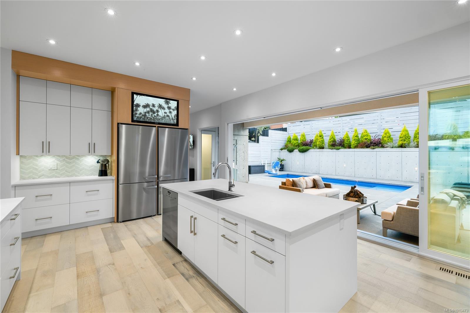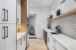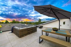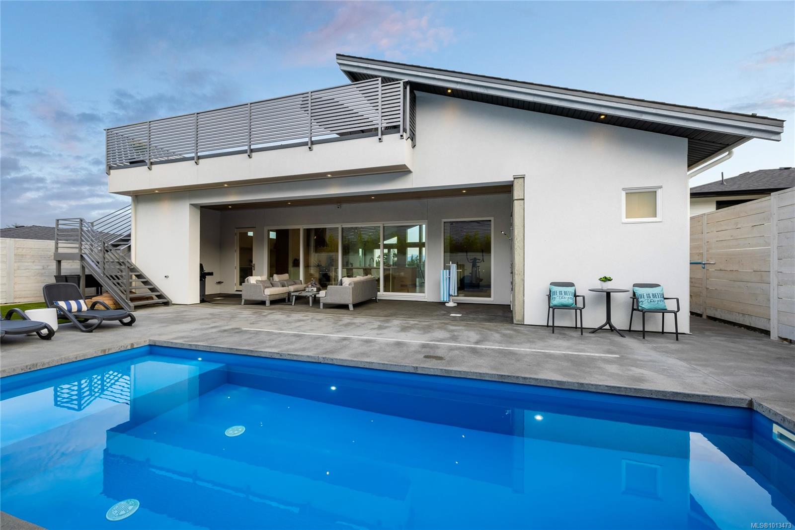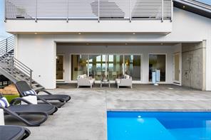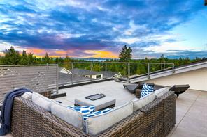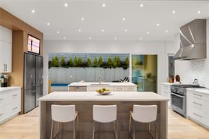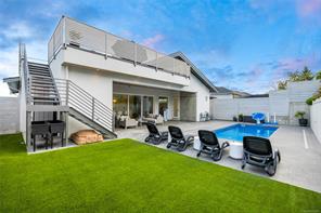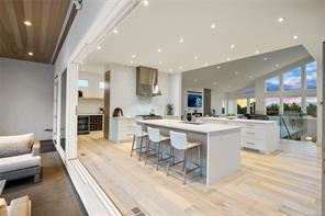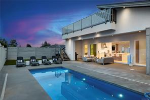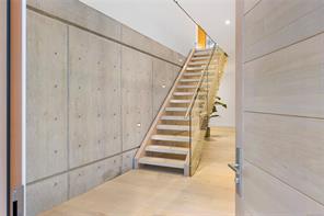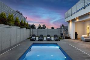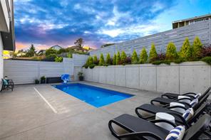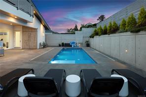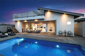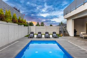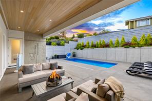 This custom built home enjoys a southern exposure and boasts an array of luxurious features. The expansive living area seamlessly blends with the outdoors through a 20’ sliding door leading to a private fenced yard complete with a covered patio and a 25×10 heated in-ground pool. Exterior aluminum stairs lead to an impressive 800 sqft rooftop deck with stunning ocean views. Inside, the gourmet kitchen is a chef’s dream with double islands, a Miele Appliance package, and a convenient butler’s kitchen. The generous primary bedroom features a stunning 5pc ensuite with dual vanity, water closet, freestanding tub, glass shower, and a spacious walk-in closet. Throughout the home, you’ll find quartz countertops, vaulted ceilings, architectural concrete interior walls, a 72†linear fireplace, custom wood open riser stairs, and engineered oak flooring. There are also two sets of laundry facilities for added convenience. All measurements are approximate and should be independently verified.