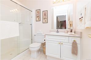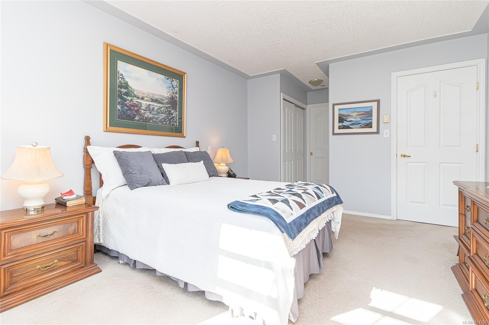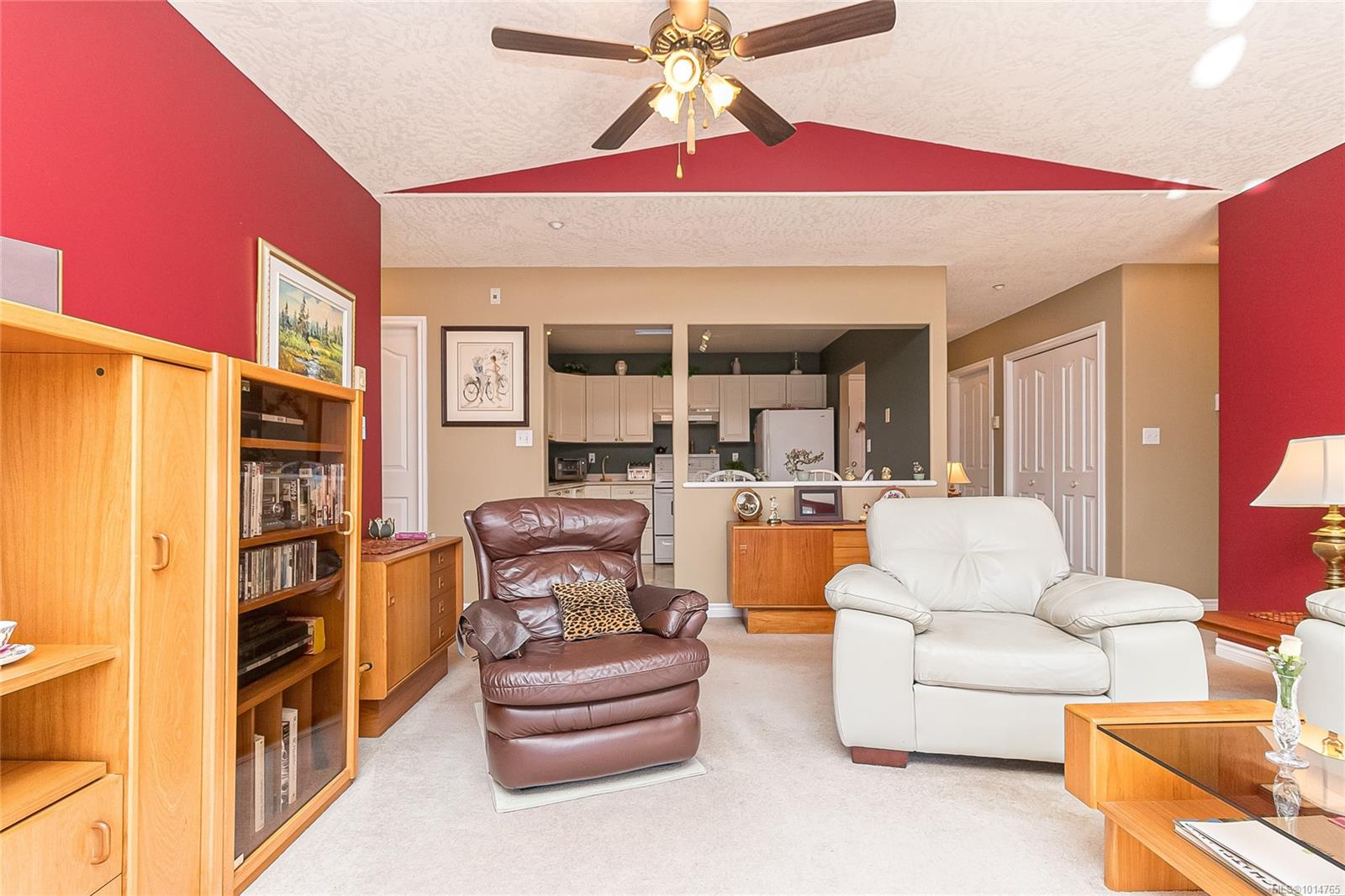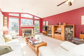 Welcome to Grand Oaks Terrace, where refined living meets comfort and convenience. This top-floor residence offers 2 bedrooms and 2 bathrooms in a freshly painted open-concept layout filled with natural light. The expansive living and dining area boasts vaulted ceilings, a skylight, and a gas fireplace that creates an inviting atmosphere for both everyday living and entertaining. The chef-inspired kitchen has abundant cabinetry and generous counter space. Retreat to the spacious primary suite, featuring a walk-in closet and a private full ensuite. The thoughtful floor plan places the second bedroom on the opposite side for added privacy, alongside an additional 3-piece bathroom. A dedicated laundry room and in-suite storage with new Hotwater tank complete the home. Grand Oaks Terrace is a well-maintained, pet-friendly community just moments from vibrant downtown Langford, with shopping, dining, recreation and transit at your doorstep.