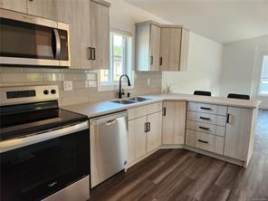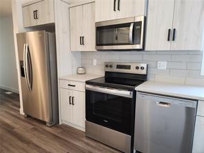 Step into this beautifully finished 2-bedroom, 2-bathroom home featuring stylish vinyl plank flooring, vaulted ceilings, and an open-concept layout perfect for modern living. The light, contemporary kitchen boasts sleek Corian countertops, Whirlpool stainless steel appliances, an above-range microwave, and plenty of cabinet space.