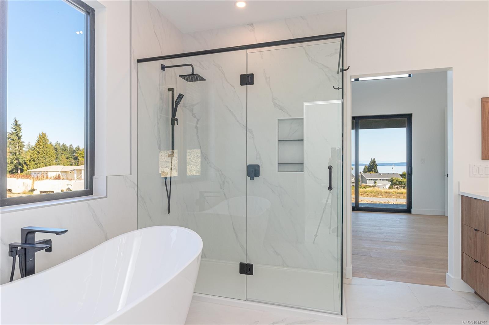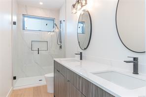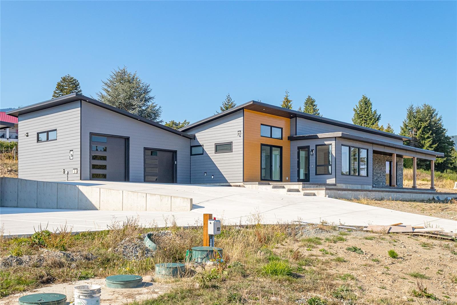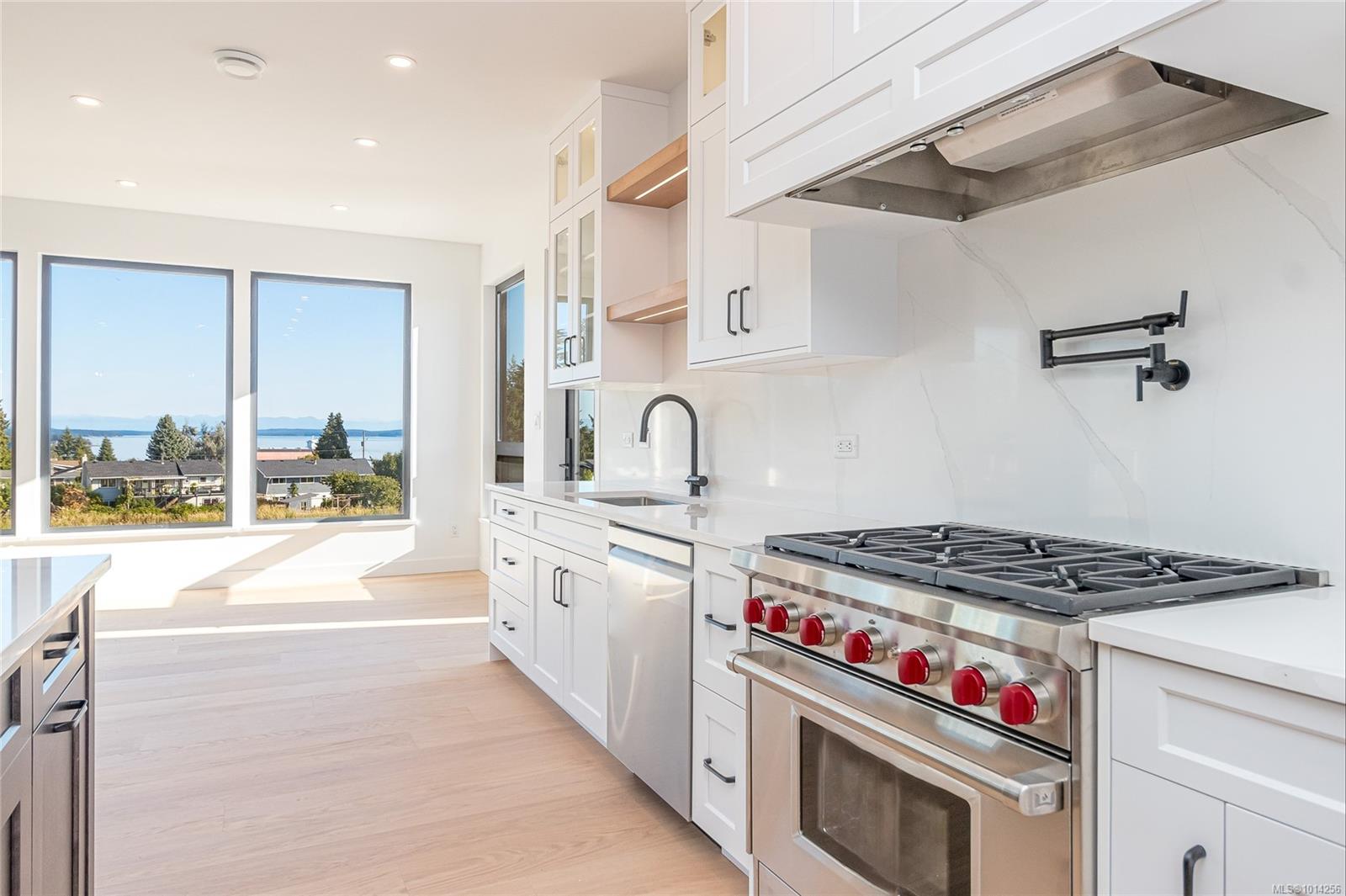 EXPANSIVE OCEAN AND MOUNTAIN VIEWS! This exquisite custom executive rancher combines West Coast modern elegance w/luxurious finishes. Designed to capture the magnificent views and natural light, this home boasts Westeck windows + exterior doors including transoms, clerestory + a four panel patio system permitting a seamless flow from the living room to the covered patio. Chef’s kitchen w/adjacent butler’s pantry is an entertainer’s dream – 36′ inch Wolf range (gas), custom cabinetry w/birch boxes, high end Calacatta Plata quartz counters + a grand kitchen island. Primary suite offers views, walk-in closet w/built-ins, 5 pc ensuite. Attached o/s garage (two EV chargers) + detached garage/workshop w/RV outlet, extended driveway to rear entrance. Too many features to list! Contact your agent for additional details. This exceptional property awaits you, conveniently located in ‘Sunny’ Saltair, walking distance to beaches, parks, minutes to Ladysmith + Chemainus, 15 min to Nanaimo Airport.