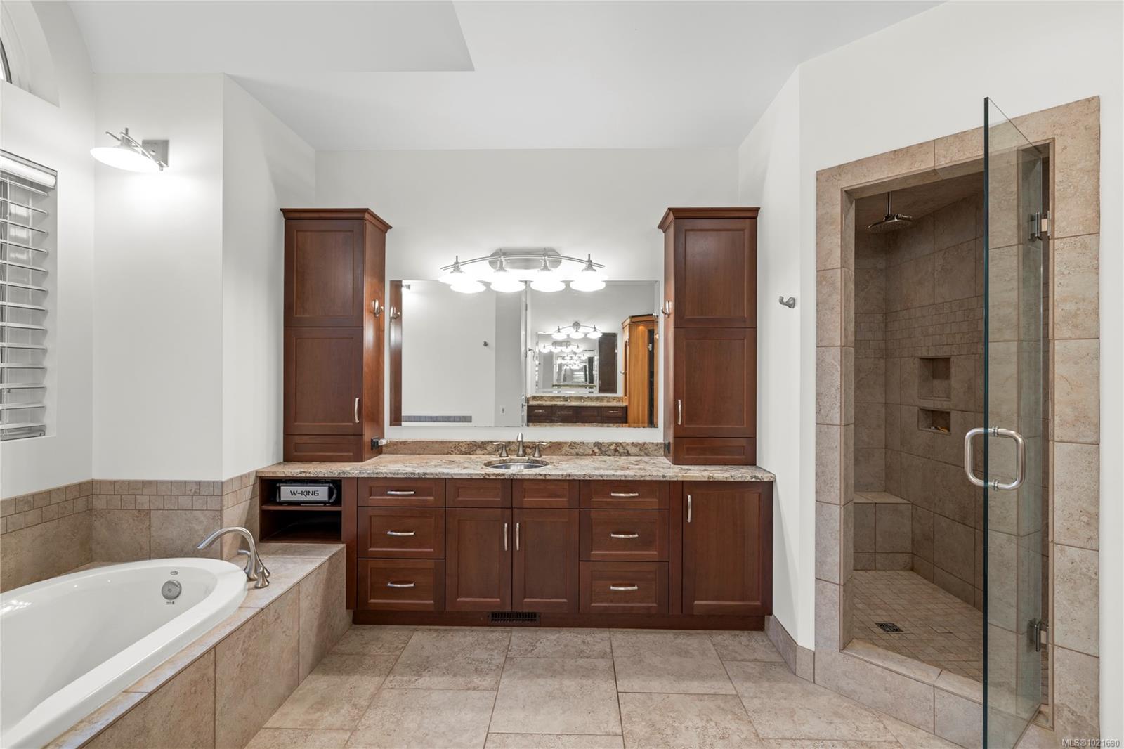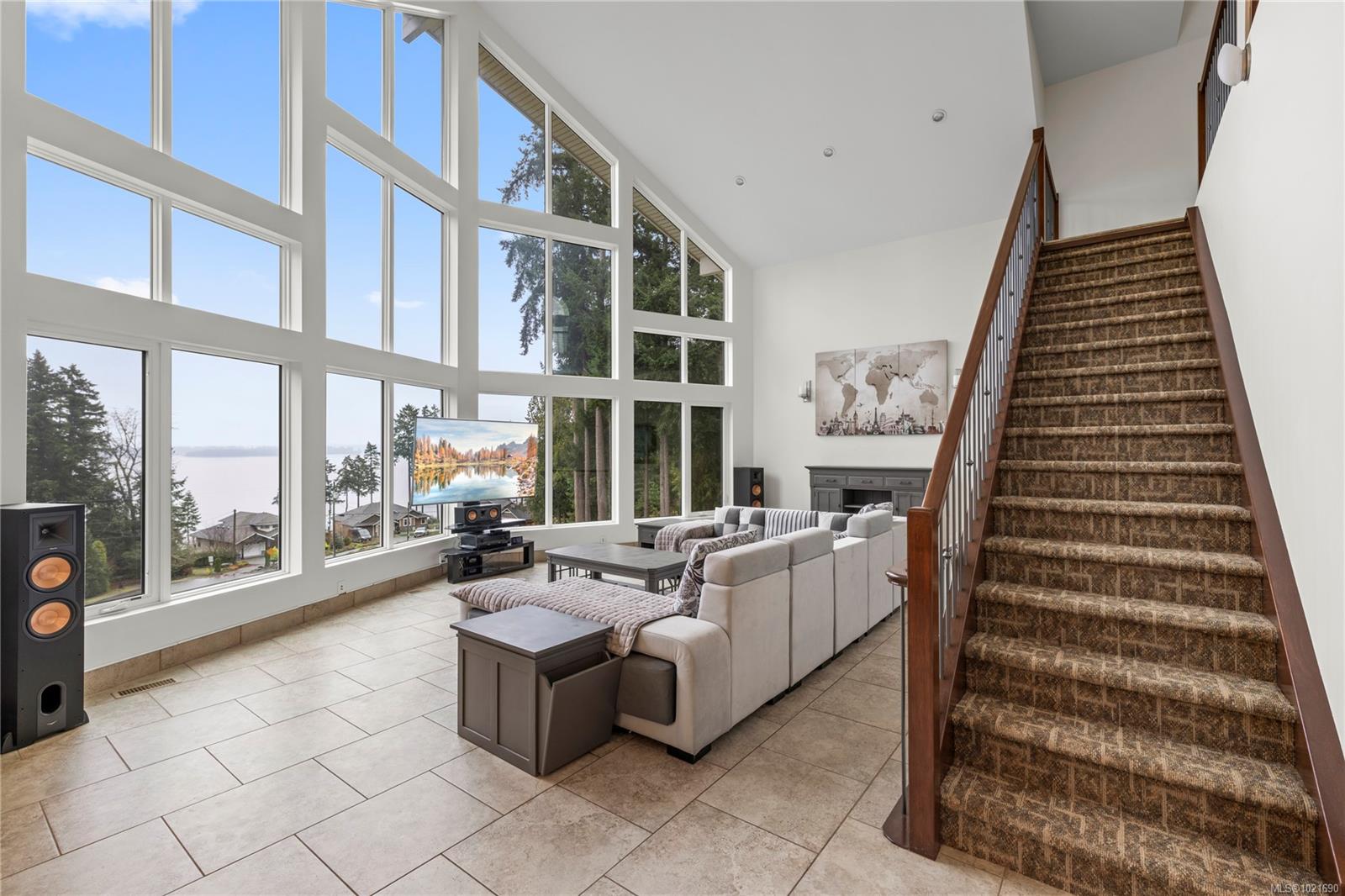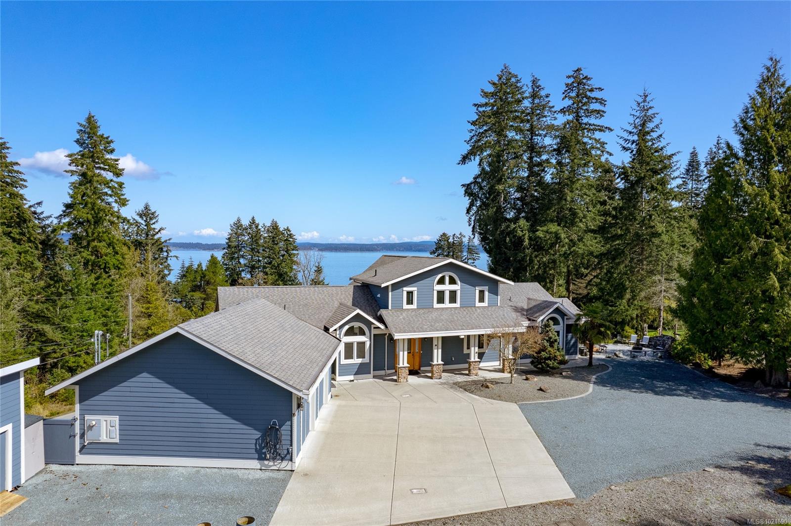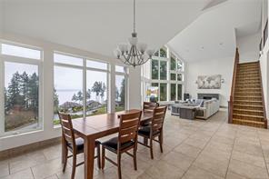 Welcome to Seaside Wood Estates in Saltair, where luxury meets coastal living. This one-owner, custom-built home offers 5,600 sq. ft. of refined living on a private .4-acre estate with premium ocean views from almost every room & beach access directly across the road. Featuring 4 bedrooms & 4 bathrooms, the home includes a self-contained suite with a private entrance—ideal for guests or extended family. Soaring 21′ vaulted ceilings & floor-to-ceiling windows showcase breathtaking views. The executive kitchen boasts granite countertops, commercial-grade appliances, and pantry. The primary retreat features a gas fireplace and spa-inspired ensuite with steam shower and sauna. Additional highlights include in-floor heating, built-in speakers, a loft with full bath, oversized garage, generator, RV parking, insulated floors, sprinkler system, waterfall and firepit area, and low-maintenance, top-tier construction throughout. Close to airport, ferry, golf, fishing, hiking, and all amenities.