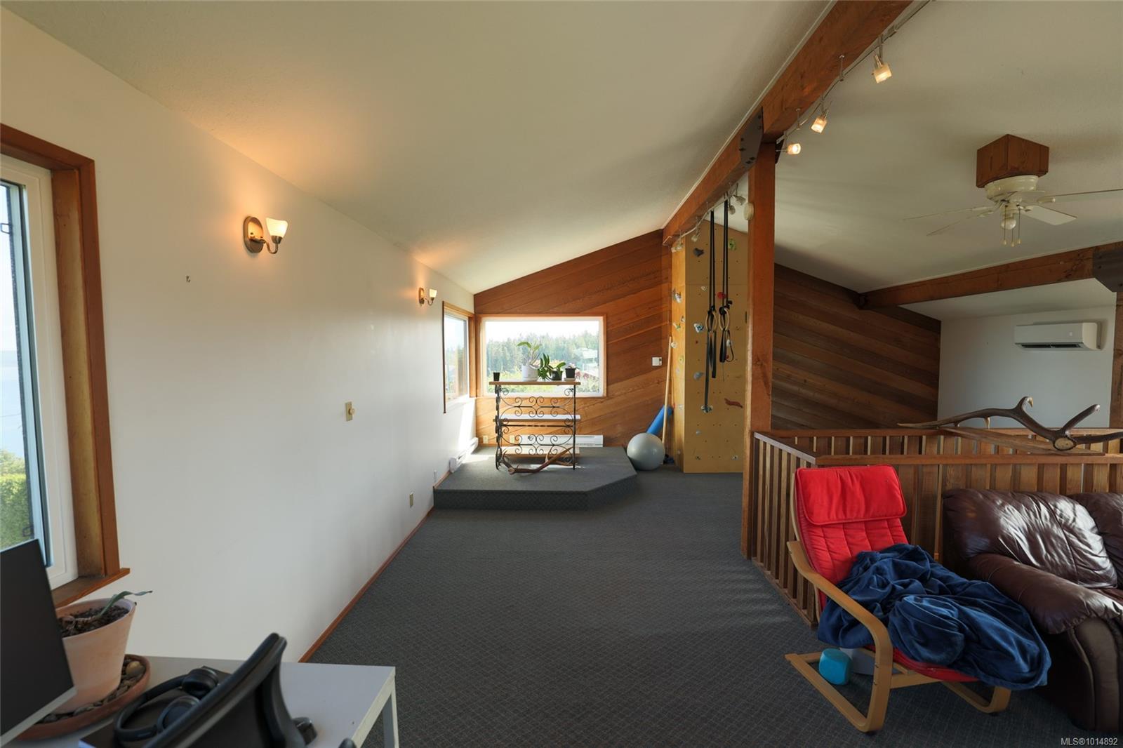 This unique Port McNeill home offers character, comfort, and big updates. Built in 1975 with a modern layout, it features new vinyl windows, perimeter drains, a heat pump, Blaze King woodstove, and cork flooring in the basement. The main floor has a bright great room with expansive ocean and mountain views, a dining area with deck access, and a kitchen overlooking the backyard. A 2-piece bath and laundry/mudroom complete this level. Upstairs is a versatile loft family room/office, while the lower level has 3 bedrooms and a full bath. Outside, enjoy a level yard with dog run, greenhouse, woodshed, quad storage, and multiple producing fruit trees and berry plants. Plenty of parking with a 2-car garage, RV/boat space, and a workshop/studio above the garage. A true standout!