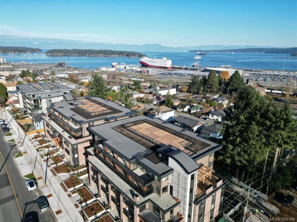 Offering fantastic, unobstructed ocean views through floor-to-ceiling windows, this modern 1 bed + den, 789 sq ft condo is located in the heart of Nanaimo’s revitalized downtown. Completed in 2023, it features a sleek minimalist design, stainless steel appliances, and bright open spaces that blend style with comfort. Enjoy your morning coffee with ocean breeze drifting in, or head up to the shared rooftop patio to soak in the mountain-meets-sea scenery. Just steps from the Hullo fast ferry to Vancouver, shops, cafés, and waterfront dining — everything you love about coastal city life is right at your doorstep. Includes 1 underground parking stall and a shared locker for bike/skateboard storage. Measurement is approximate, pls verify if important.