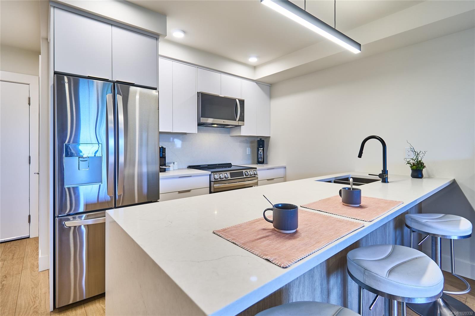 Discover Lumina, perfectly positioned in the heart of Nanaimo’s Harbourview District — a Principal Property community. Just moments from the seawall, harbourfront, cafés, parks, and Hullo Ferries, Lumina places you in one of downtown’s most dynamic, walkable neighbourhoods. This beautifully designed home showcases contemporary comfort and craftsmanship with open-concept living, premium finishes, and natural light. A covered patio extends from the main living space, offering an inviting place to relax or entertain. From the quartz waterfall island and smart appliances to the soft-close cabinetry and sleek fixtures, every detail reflects understated luxury. Residents also enjoy Lumina’s spectacular rooftop terrace — a private escape with panoramic harbour and mountain views, perfect for unwinding at the end of the day. Blending style, connection, and the spirit of coastal living, this home offers a front-row seat to the energy and growth of downtown Nanaimo’s Harbourview District.