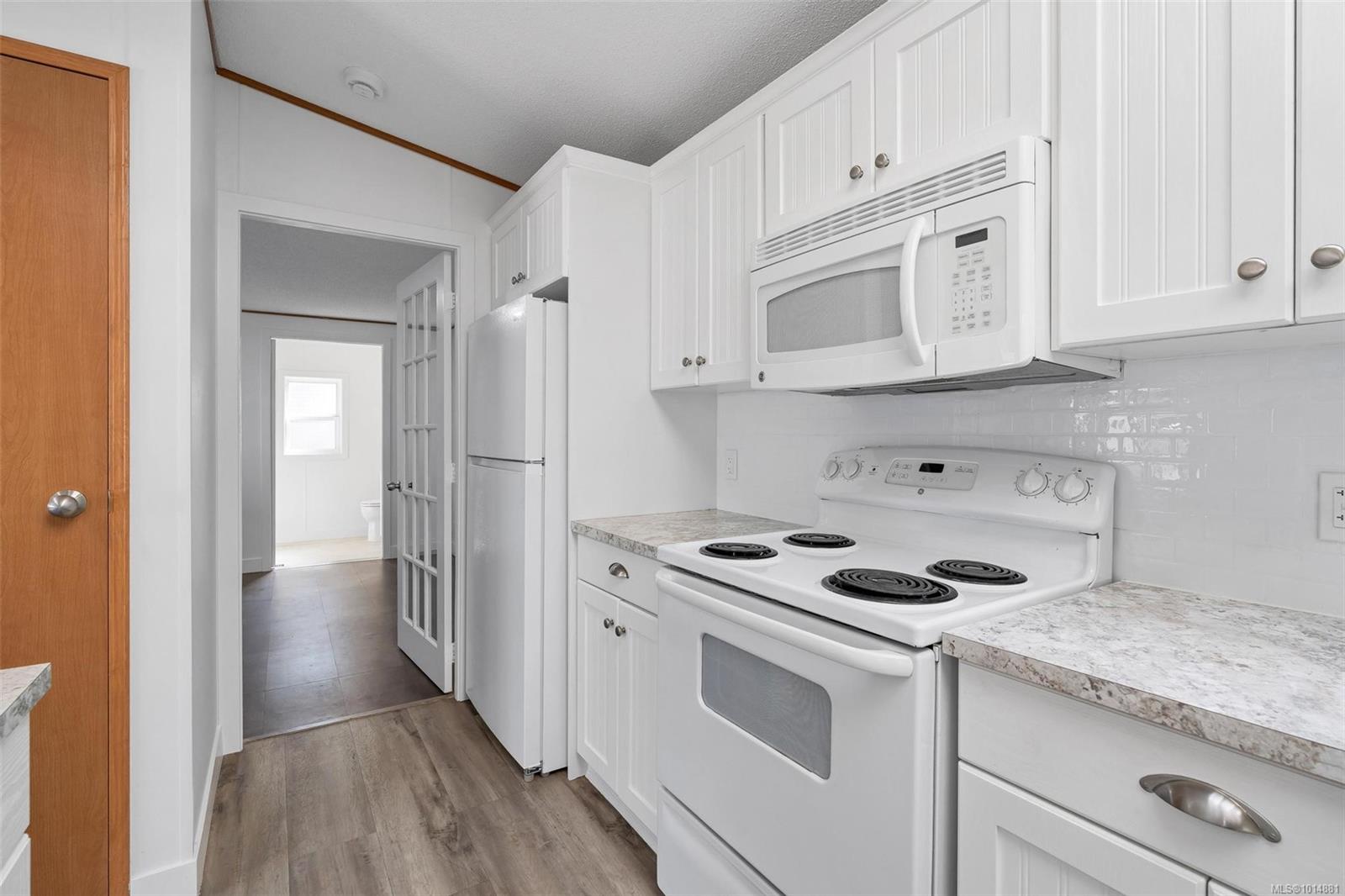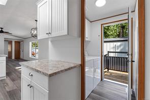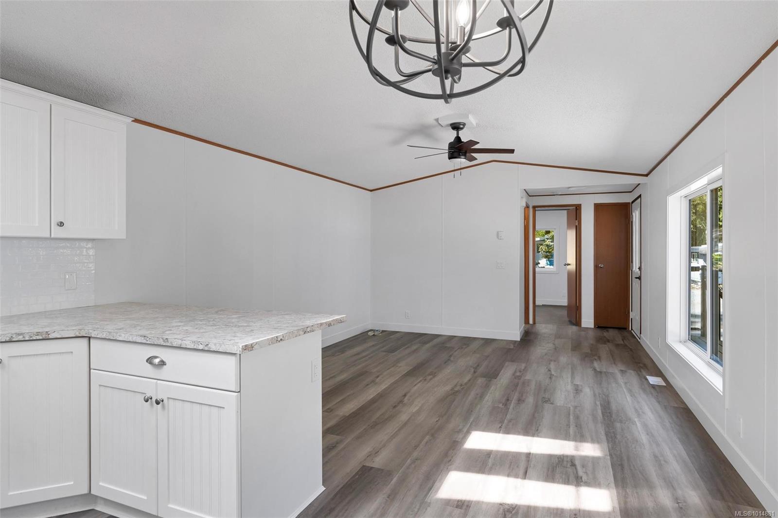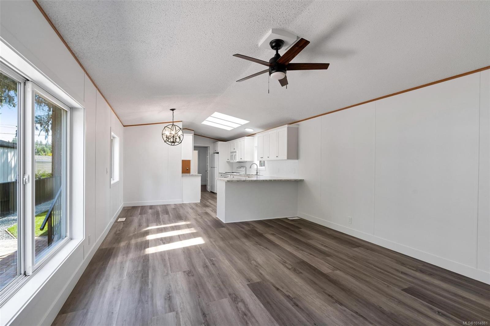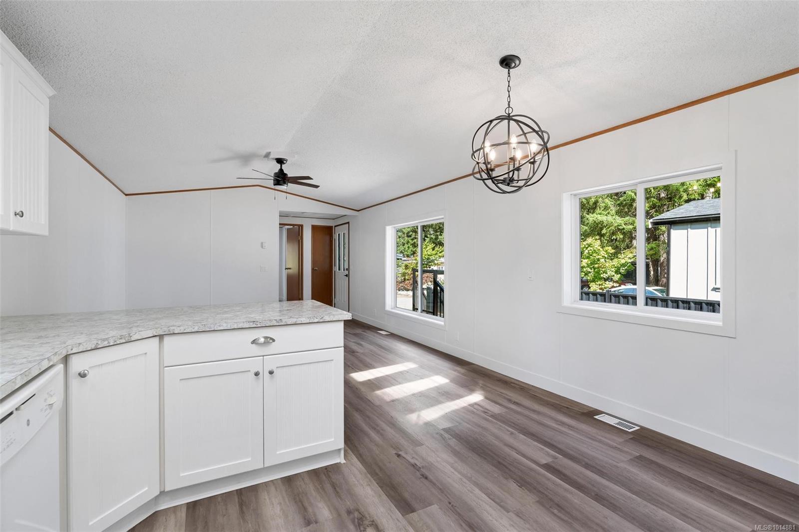 Lovely updated single-wide manufactured home featuring a modern colour palette and stylish lighting throughout. Offering 2 bedrooms and 2 bathrooms, this home has seen numerous upgrades, including a new roof, new siding, fresh paint, new countertops, and updated light fixtures. Built with 2×6 framing for added energy efficiency, it combines comfort and style. Located in the quiet Timberland Mobile Home Park, just minutes to Ladysmith or Nanaimo, this property provides both convenience and tranquillity.