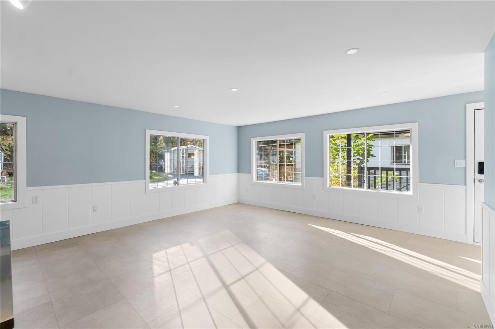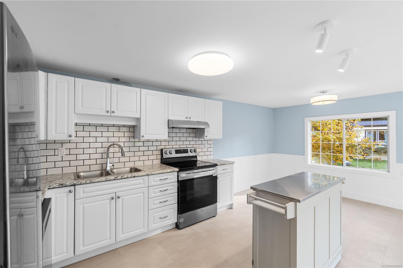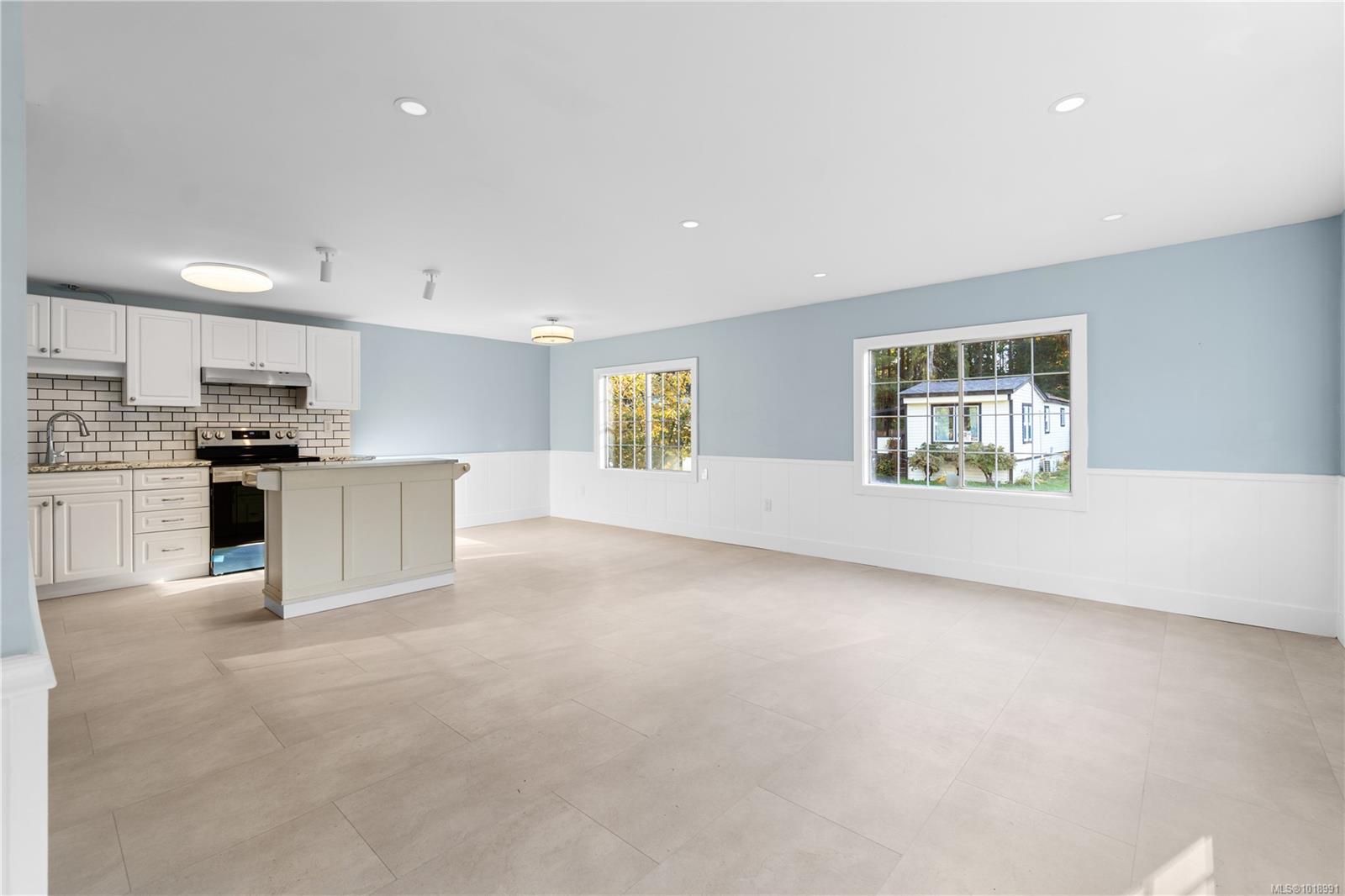 This extensively renovated 3-bedroom, 2-bathroom home sits on a spacious double lot in south Nanaimo, just 5 minutes from the airport, 20 minutes to Costco, and 15 minutes to the ferry. No detail has been spared. The home boasts extensive upgrades including a new heavy gauge metal roof, new gutters, new 15,000′ 5′ metal privacy fence, electrical upgrade w/a 2025 Silver Label, all new plumbing, 5 new LG appliances, new flooring, new drywall, new paint, new blinds and new lighting throughout. The 2 complete bathroom renos include a stand-up shower, freestanding soaker tub and vanities-all new. The kitchen has a powered island, new backsplash, new fridge/stove/dishwasher/hood fan. Let’s not forget the new heat pump, new metal exterior skirting and both of the freshly painted covered front entrance and 12×12 back deck that is perfect for entertaining. Parking for 3 vehicles. All ages welcome and 2 pets ok.