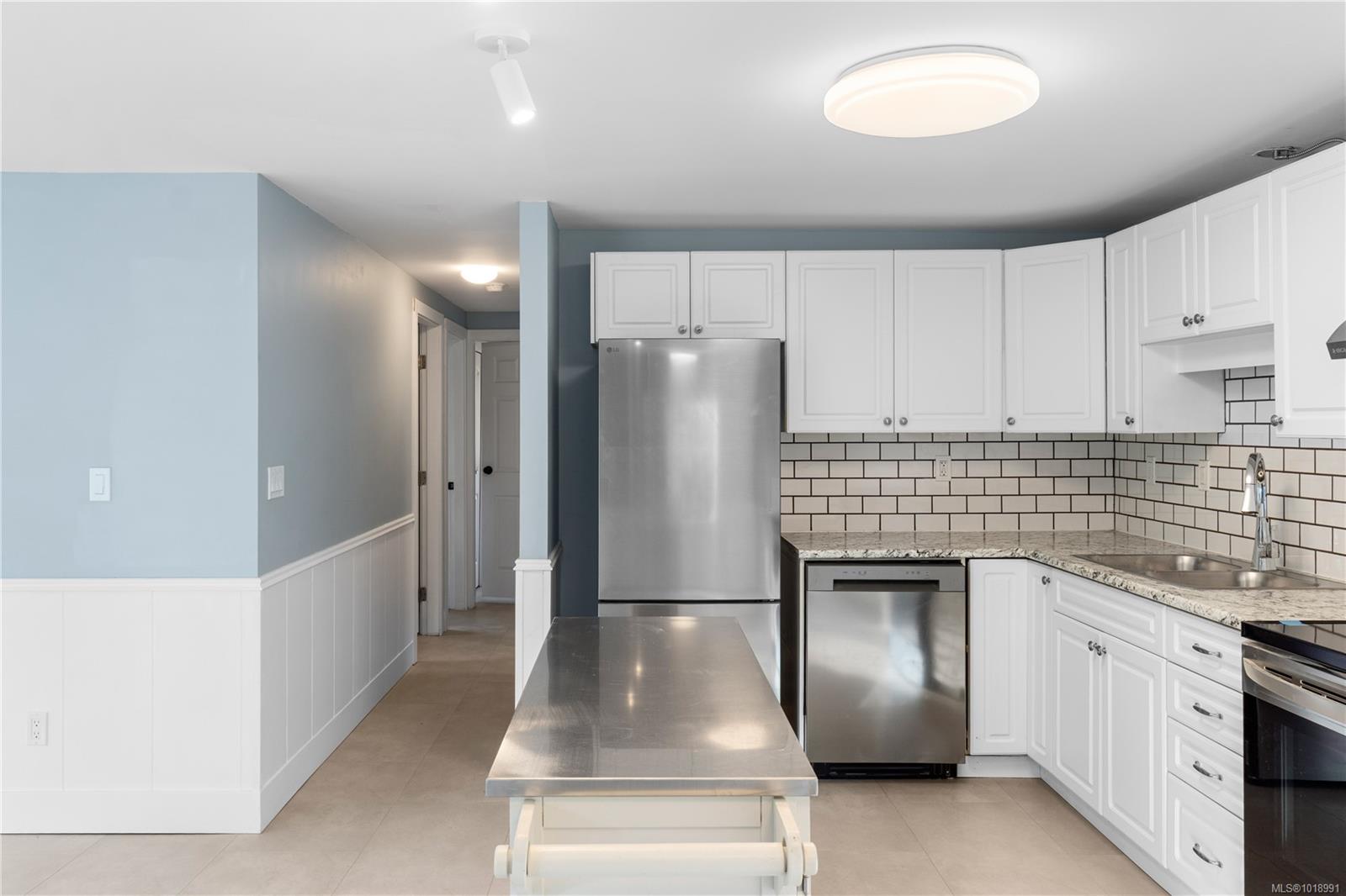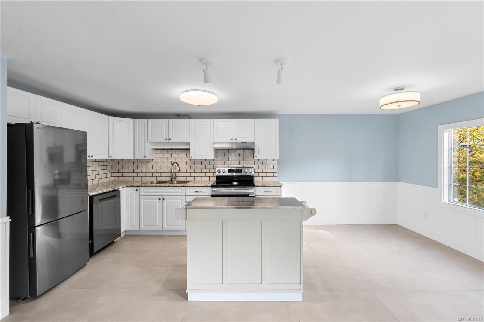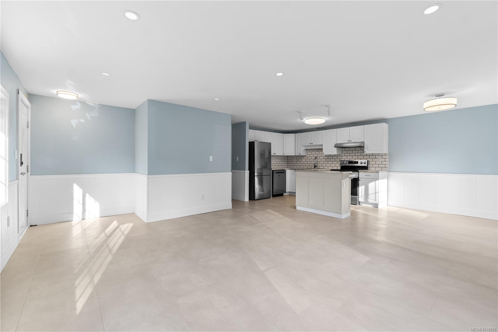 This extensively renovated 3-bedroom, 2-bathroom home sits on a spacious double lot in south Nanaimo, just 5 minutes from the airport, 20 minutes to Costco, and 15 minutes to the ferry. No detail has been spared. The home boasts extensive upgrades including a new heavy gauge metal roof, new gutters, new 15,000′ 5′ metal privacy fence, electrical upgrade w/a 2025 Silver Label, all new plumbing, 5 new LG appliances, new flooring, new drywall, new paint, new blinds and new lighting throughout. The 2 complete bathroom renos include a stand-up shower, freestanding soaker tub and vanities-all new. The kitchen has a powered island, new backsplash, new fridge/stove/dishwasher/hood fan. Let’s not forget the new heat pump, new metal exterior skirting and both of the freshly painted covered front entrance and 12×12 back deck that is perfect for entertaining. Parking for 3 vehicles. All ages welcome and 2 pets ok.