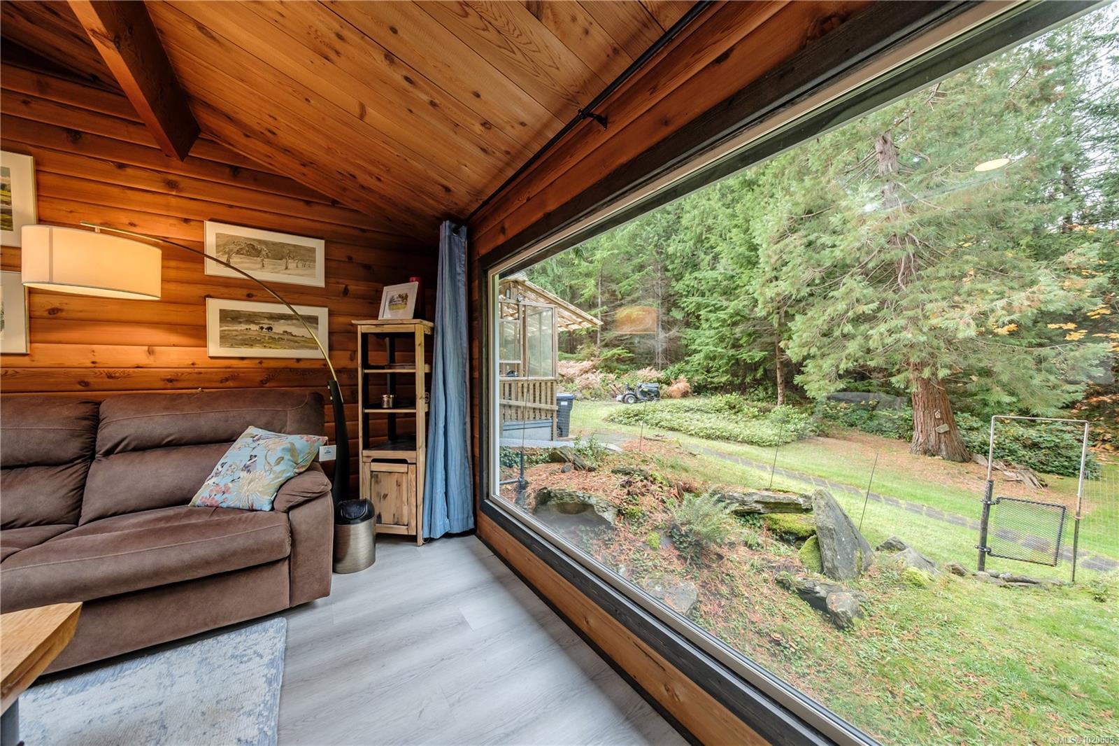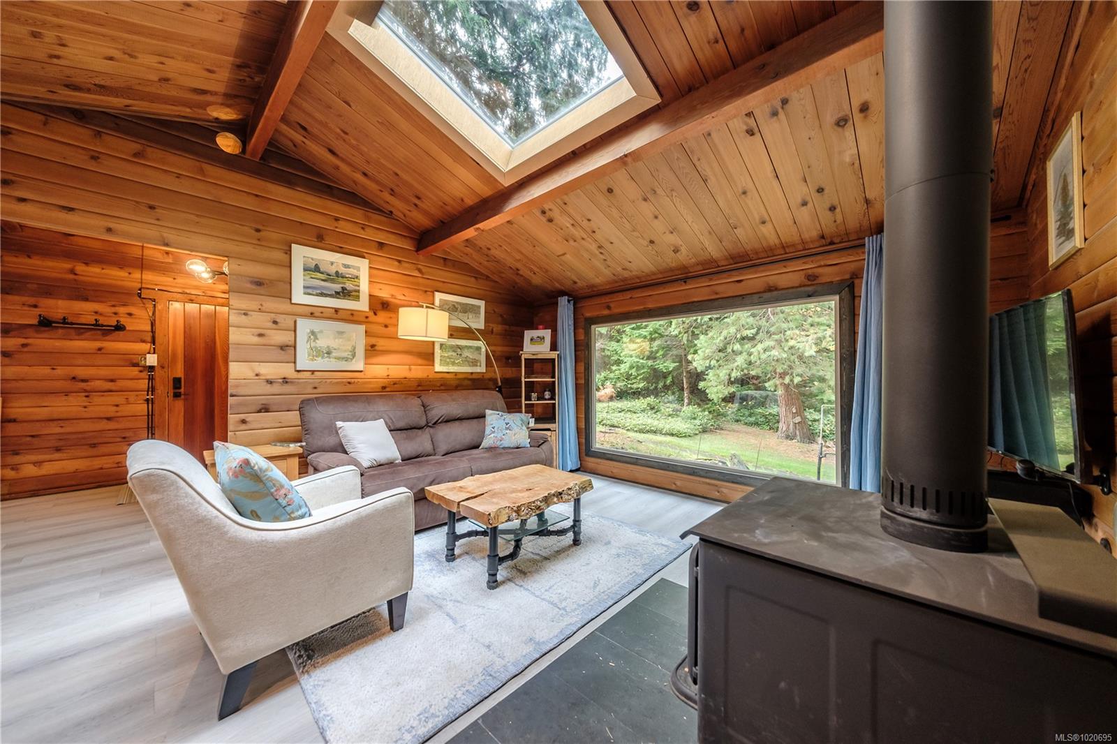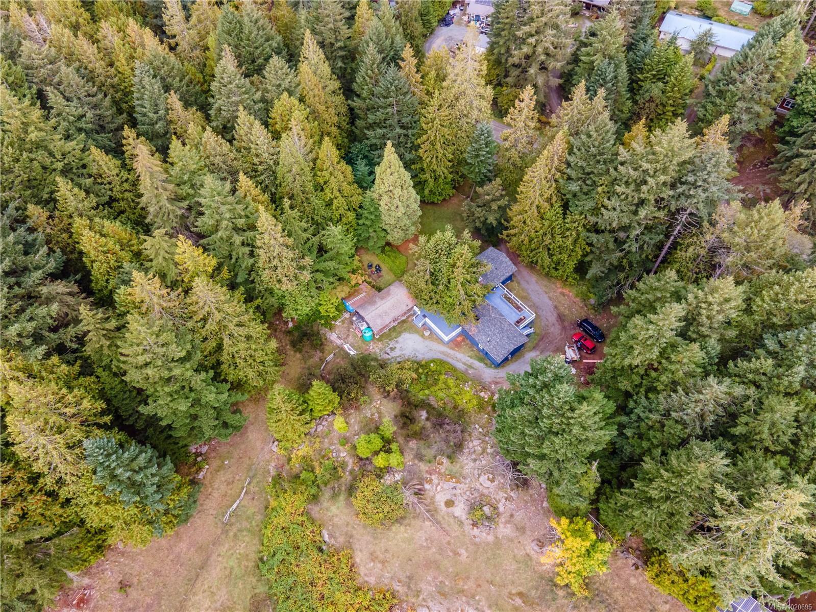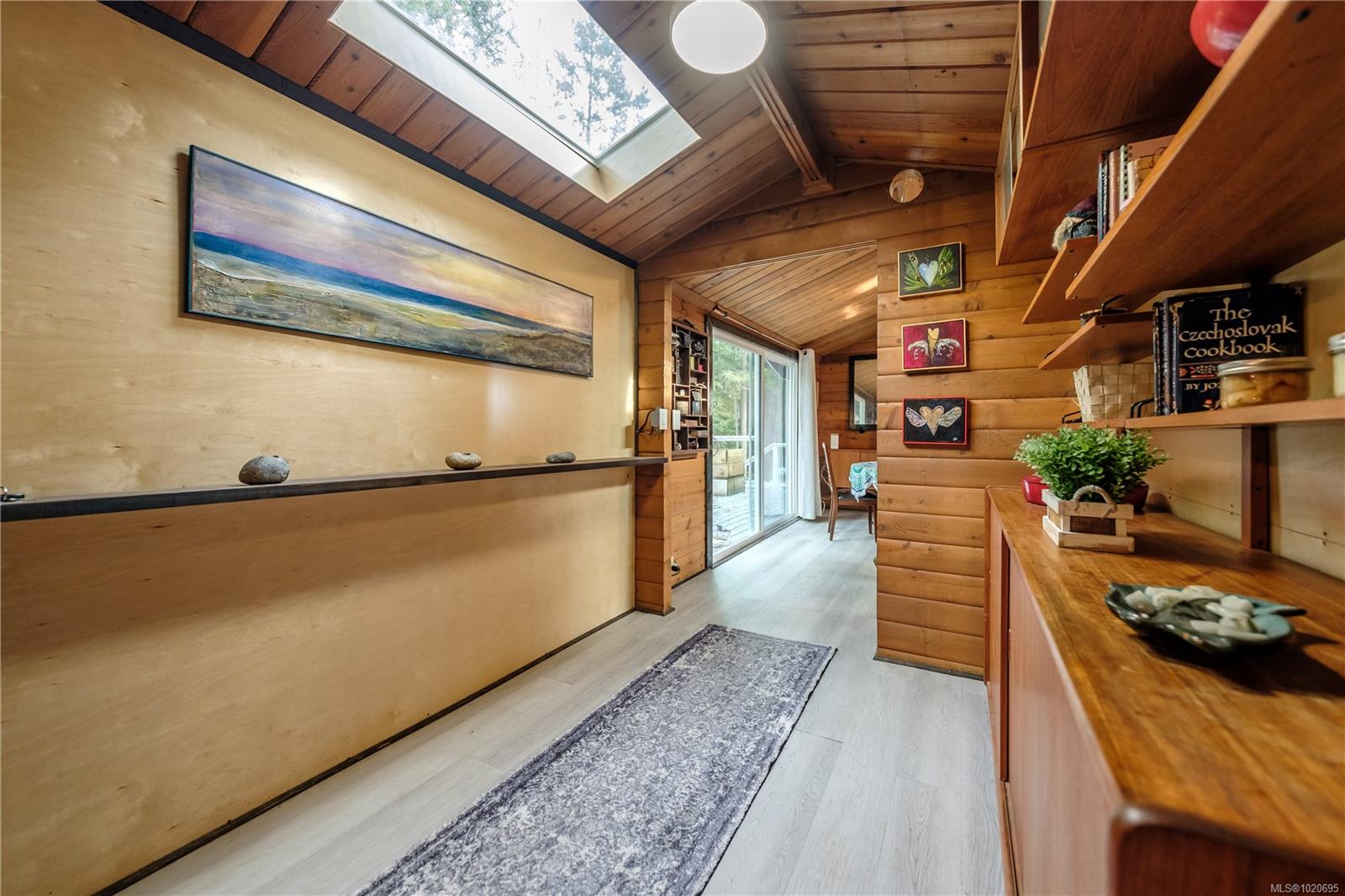 Charming and private Pan-Abode home on 2.1 acres, set toward the back of the property for a peaceful West Coast feel. This well-loved home features new skylights, upgraded windows, new flooring, two renovated bathrooms, a renovated kitchen, updated lighting, two high-efficiency heaters, and a newer woodstove (2022). The exterior has been fully painted, giving it a fresh cottage vibe. Practical updates include a new roof (approx. 2 years), septic pumped recently, insulated and heat-traced above-ground water lines, plus both a well and cistern. Enjoy great bedroom separation, warm wood interiors, and two decks overlooking the forested acreage. A detached 448 sq. ft. studio with toilet, sink, and two flexible rooms is ideal for a home office, artist’s studio, or workshop. A rare and beautifully treed property on Gabriola—come take a look.