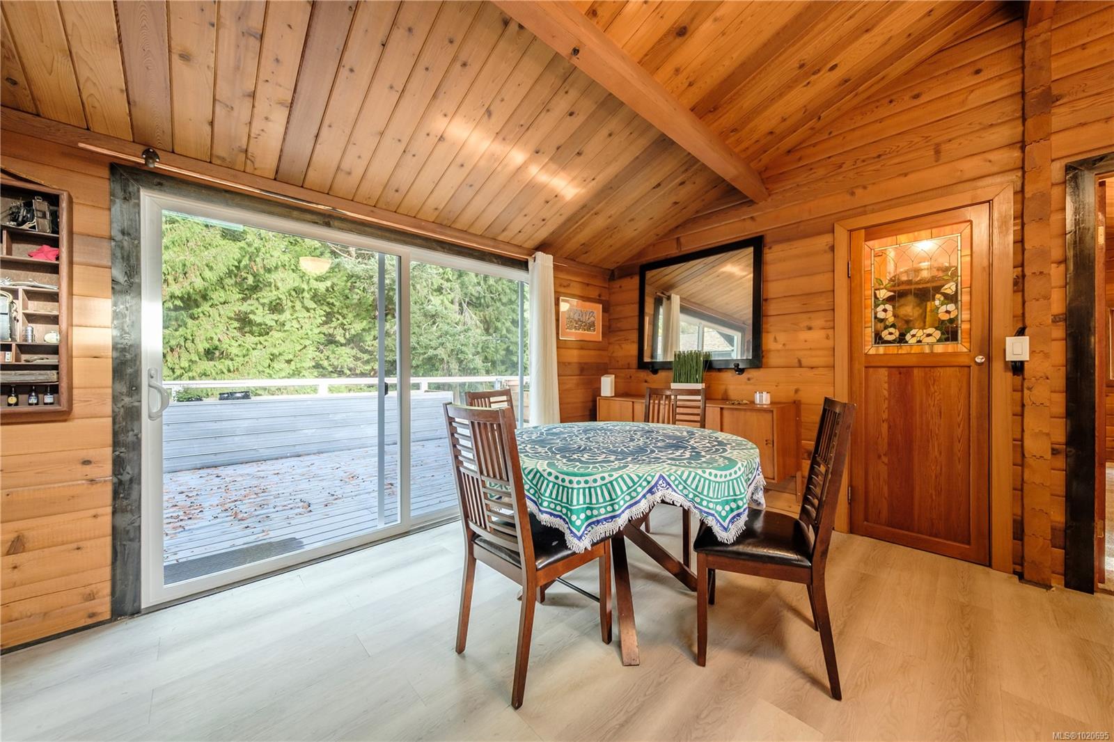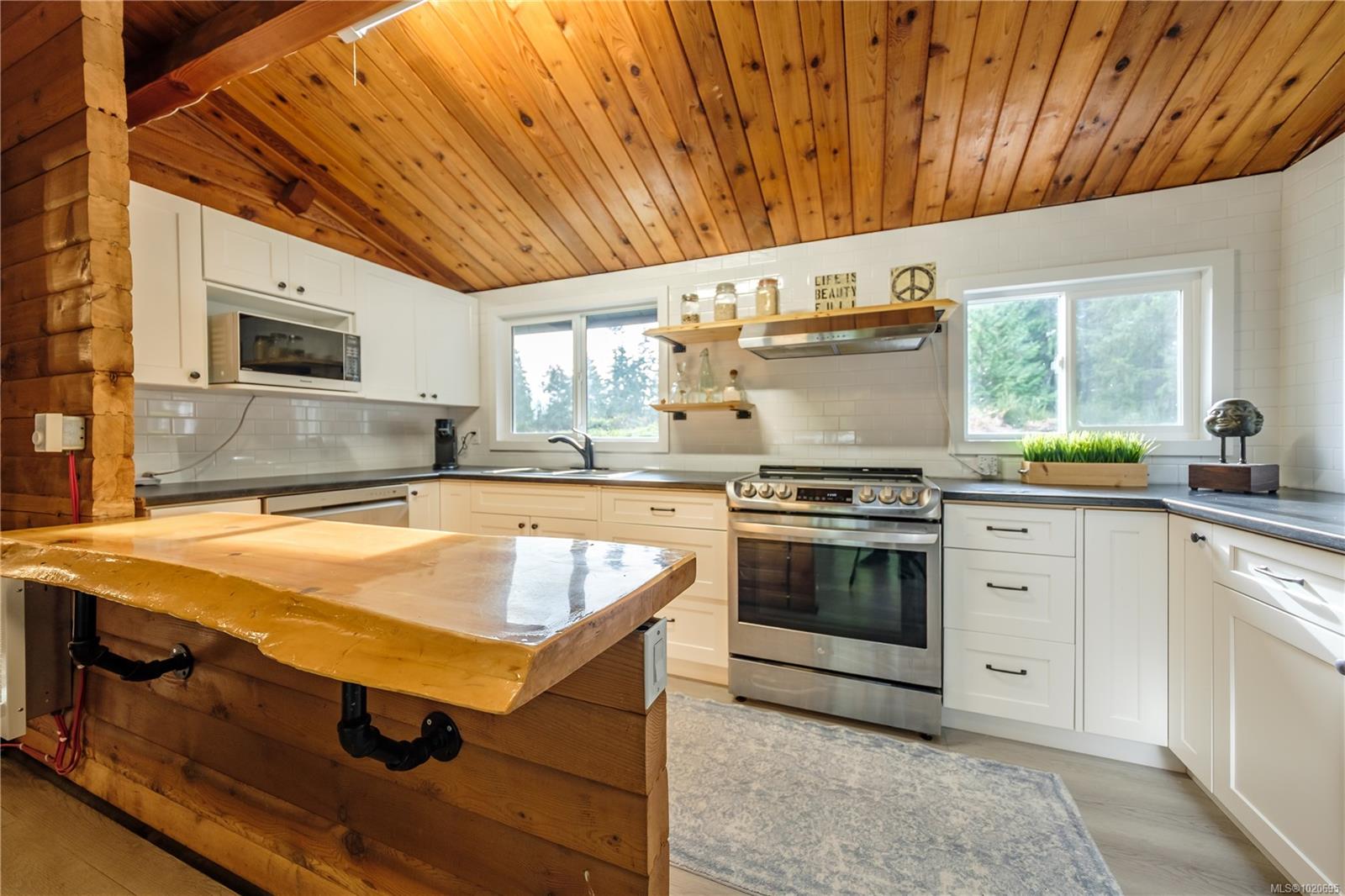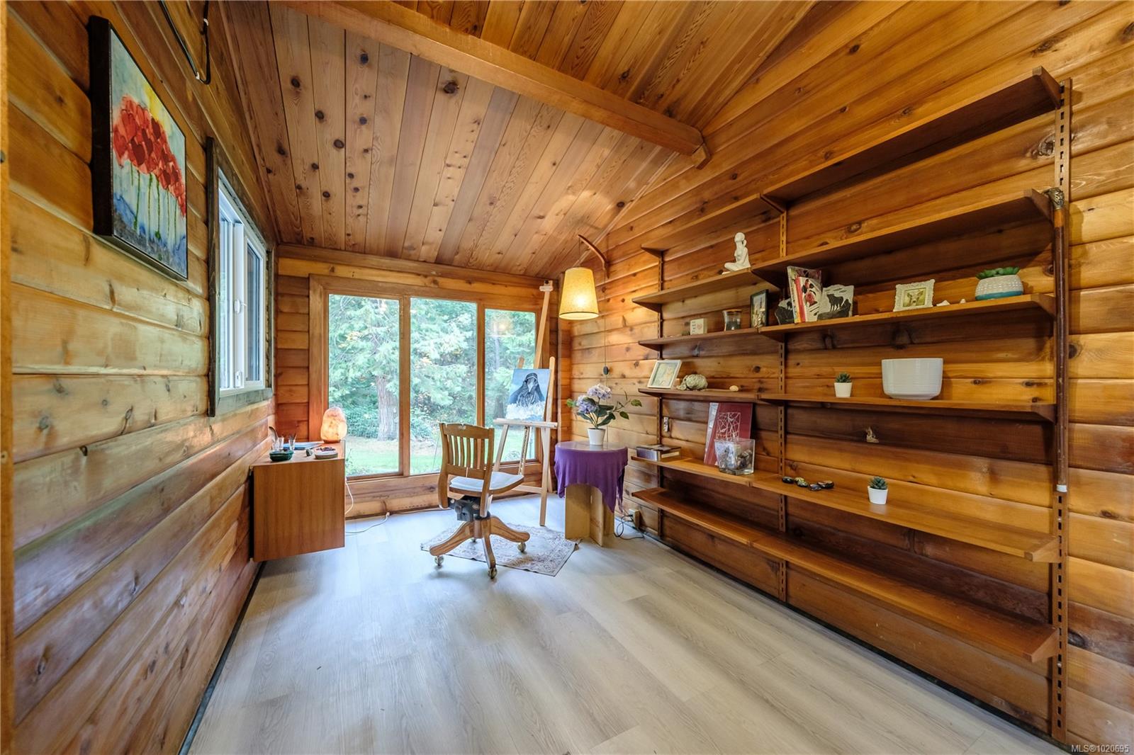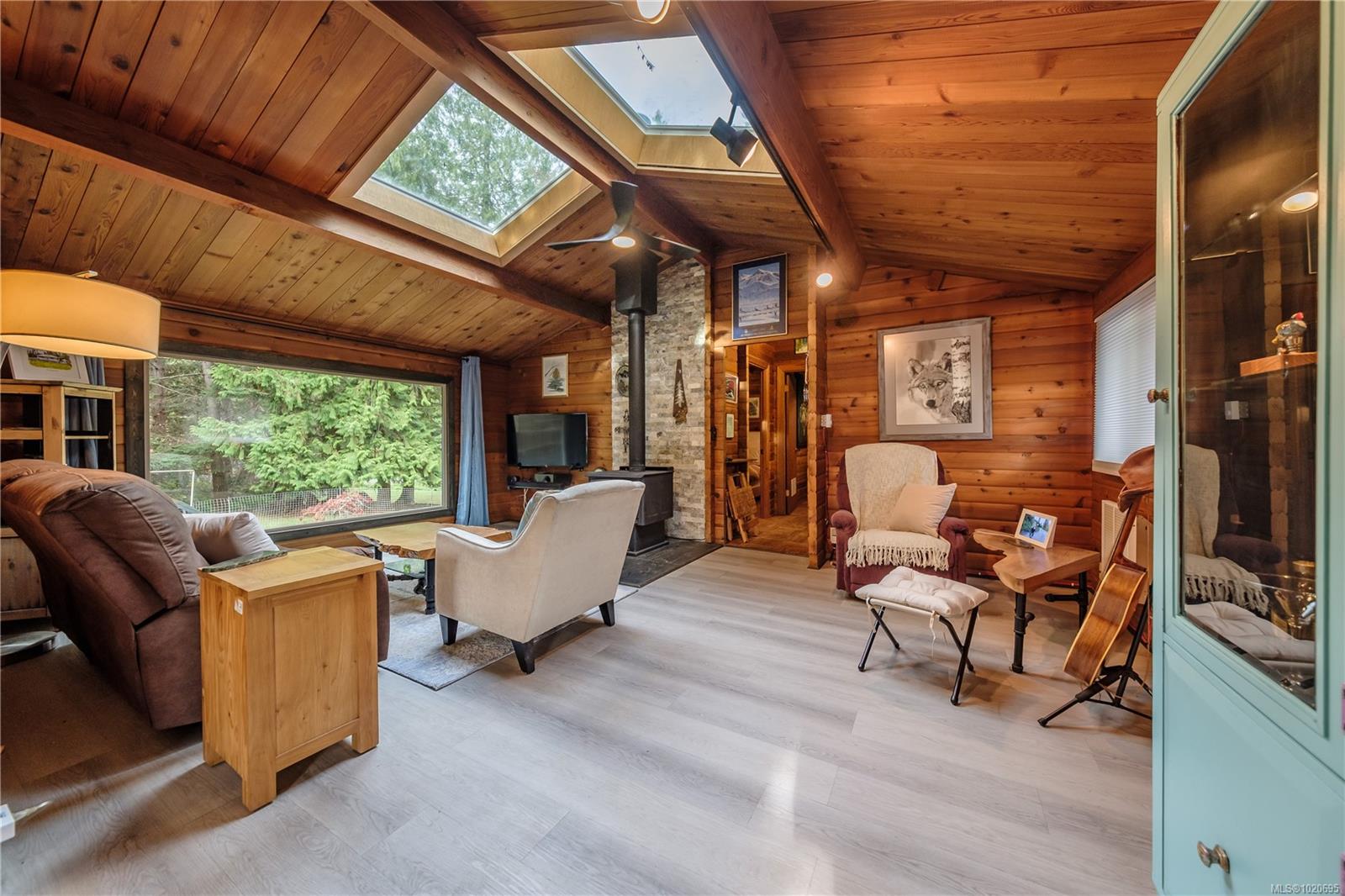 Charming and private Pan-Abode home on 2.1 acres, set toward the back of the property for a peaceful West Coast feel. This well-loved home features new skylights, upgraded windows, new flooring, two renovated bathrooms, a renovated kitchen, updated lighting, two high-efficiency heaters, and a newer woodstove (2022). The exterior has been fully painted, giving it a fresh cottage vibe. Practical updates include a new roof (approx. 2 years), septic pumped recently, insulated and heat-traced above-ground water lines, plus both a well and cistern. Enjoy great bedroom separation, warm wood interiors, and two decks overlooking the forested acreage. A detached 448 sq. ft. studio with toilet, sink, and two flexible rooms is ideal for a home office, artist’s studio, or workshop. A rare and beautifully treed property on Gabriola—come take a look.