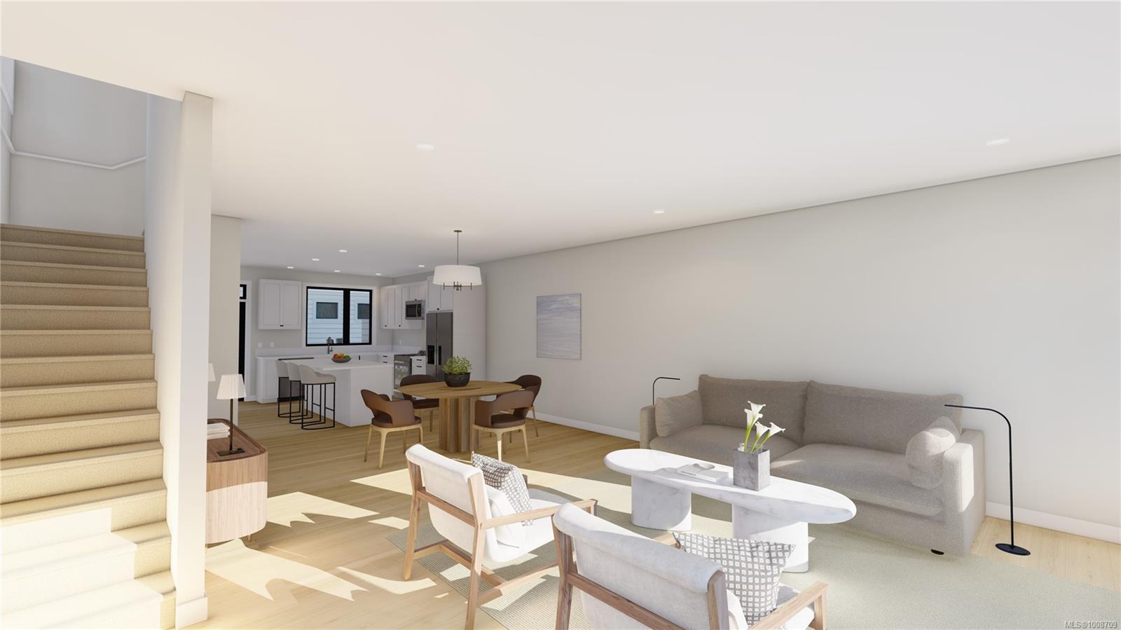 Each home offers a smart, three-level layout. The upper floor features three bedrooms, two bathrooms, and convenient top-floor laundry. On the main level, enjoy a bright, open-concept kitchen, dining, living space complete with powder room. The lower level offers a flexible open space with the option to upgrade to a kitchenette with laundry, making it perfect for a guest suite or student accommodation. Private fenced courtyards and a shared green space create a welcoming environment for kids and pets alike. Quality built and finished by Silver Maple Contracting, these homes feature ICF walls between units for exceptional soundproofing and heat pumps for energy-efficient heating & comfortable cooling. Rendering & floorplan mirror of 303A.