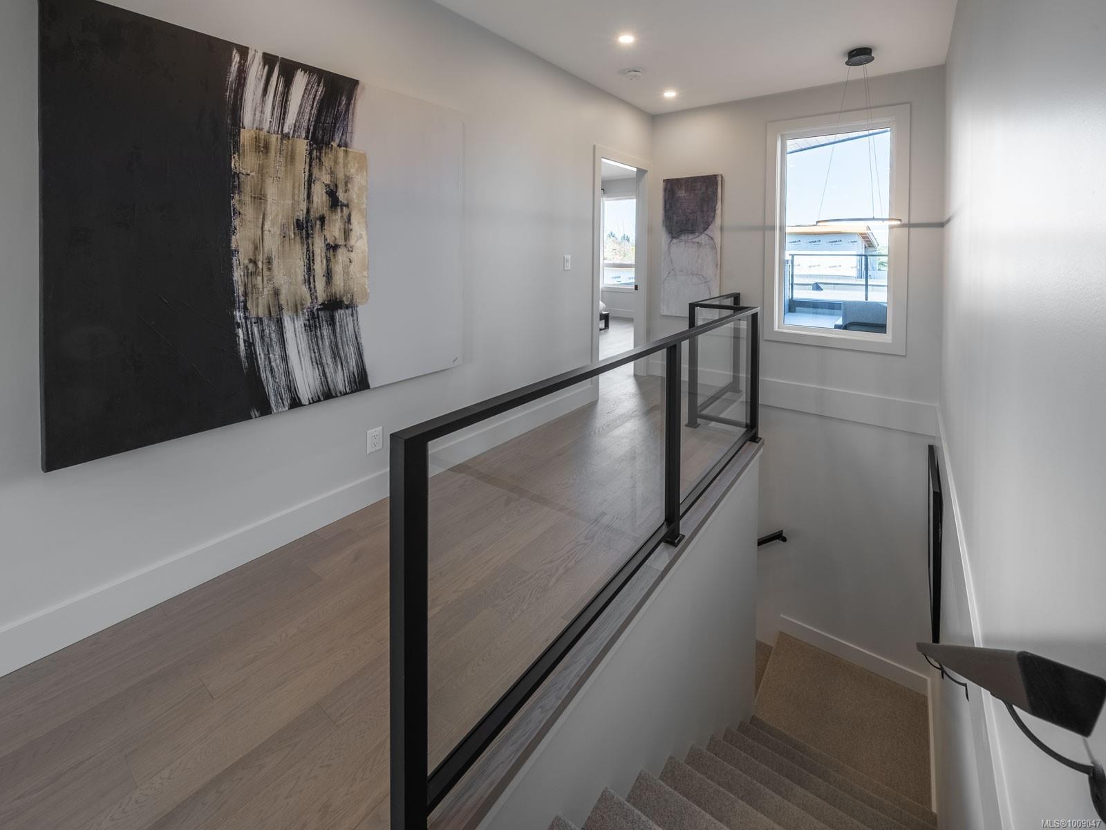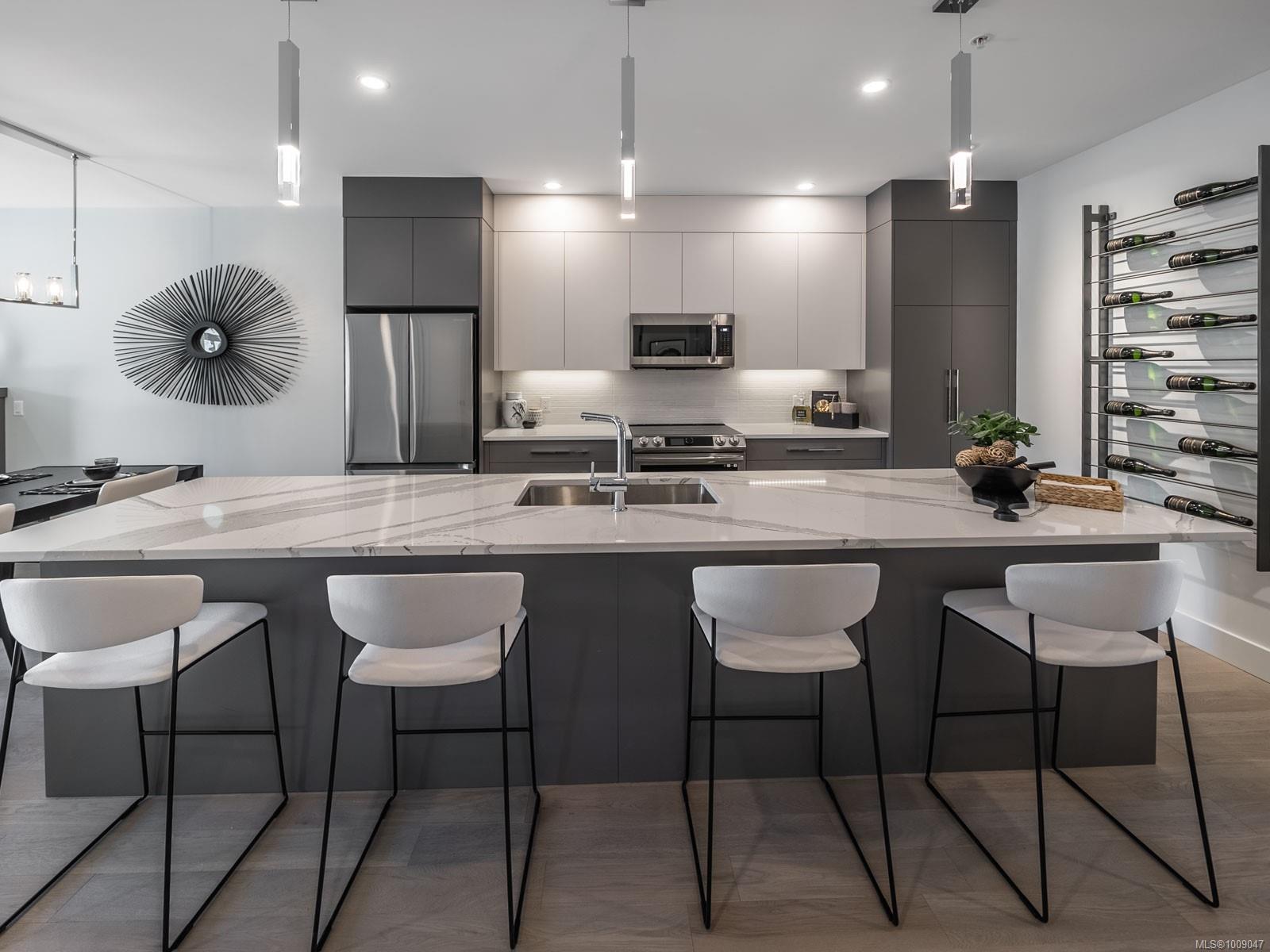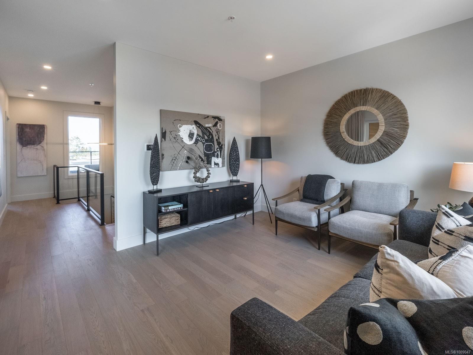 Welcome to “DUO” – a luxury development in the heart of town, just blocks from shopping, amenities, the boardwalk, and the beach! Flex Suite #112 is an Executive Townhome with a Primary Suite on each level, a Den, upper Flex Room, sunny patio, and two large balconies with lovely views of the Island Mountains, and Strait of Georgia with Lasqueti/Texada Islands. Enjoy a Chefs Kitchen with quartz counters, Cambria island, and Wi-Fi stainless appliances, plus a Living/Dining Room with a nat gas FP and door to a south-facing patio. There is also a Laundry Closet, Powder Room, & Primary Suite with a 4 pc ensuite. The upper level hosts a 2nd Primary Suite with a 4 pc ensuite and door to a large covered balcony. Also a 3 pc Bath and a Flex Room with a door to a 2nd balcony. Features include eng hardwood floors, hot water on demand, a heat pump, and an OS Single Garage pre-wired for EV. Two dogs/cats allowed. A Base Window Covering/Blinds Package is included. Visit our website for more.
