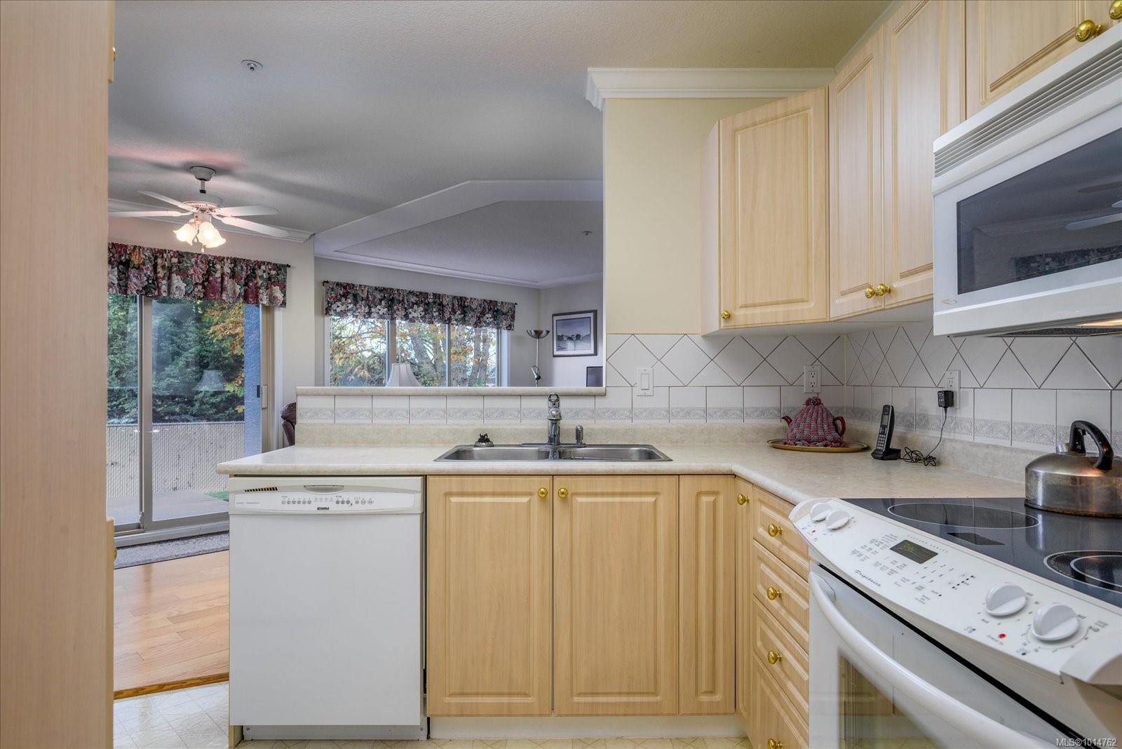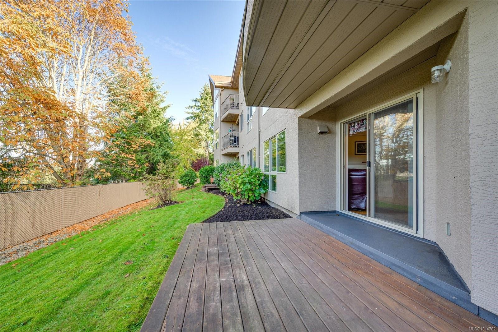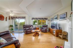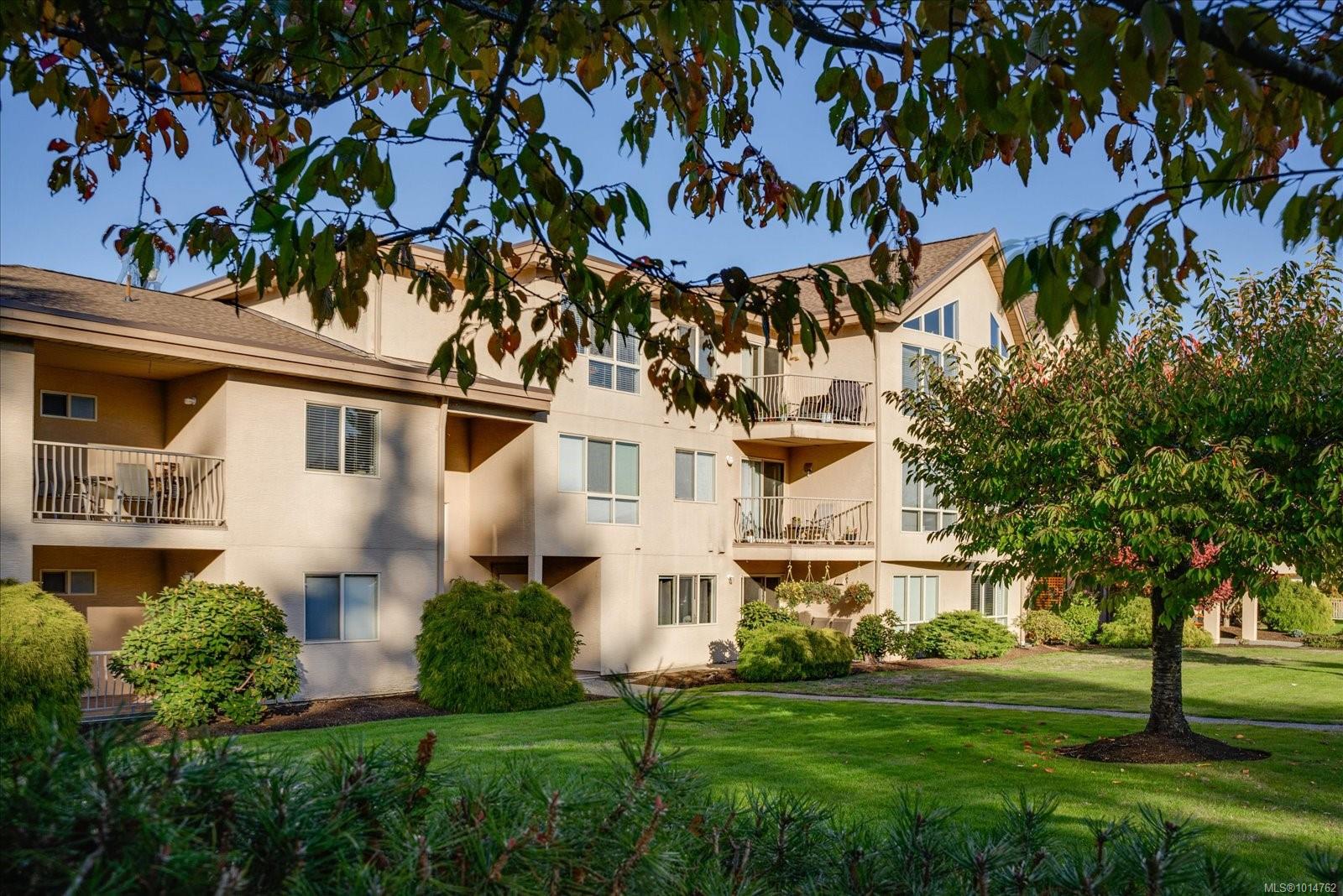 This ground-floor condo in Ashleigh Manor boasts two bedrooms plus a den with a spacious layout covering over 1430 square feet. The kitchen offers ample cupboard space, with glass doors opening up from your eating nook to your large outdoor patio. The living room features large windows allowing lots of natural light & an electric fireplace plus if looking for a more formal dining experience, there’s a separate dining area adjacent to the kitchen/living rm. The 20×11 Primary bdrm is accompanied by a huge walk-through closet that leads to an ensuite with a stand-up shower and soaker tub. The separate 12×11 laundry room provides space for a deep freezer plus additional storage. Included:1 secured Parking spot, storage room, community library, plus guest suite that can be reserved for out of town guests. Ashleigh Manor is a well run Strata & a Great Community you will love.
