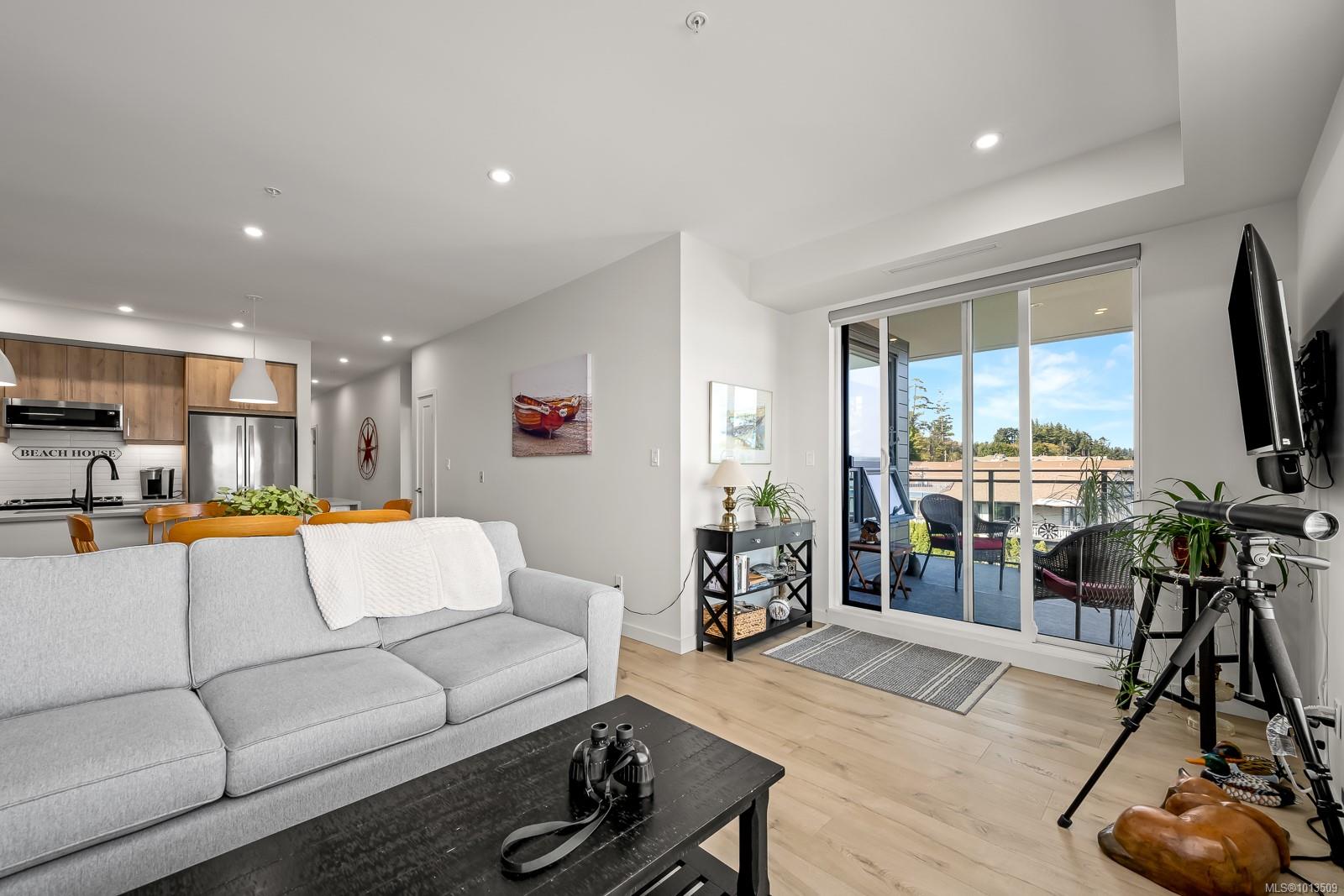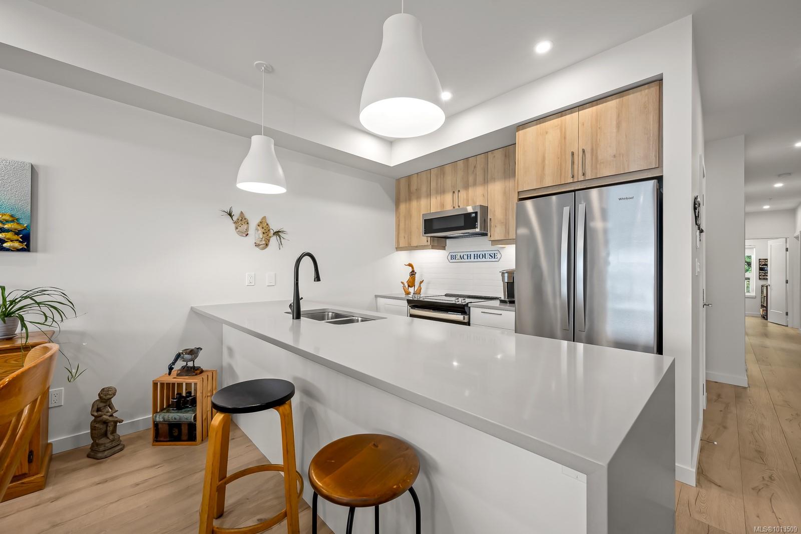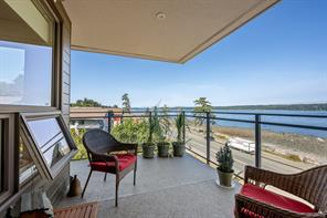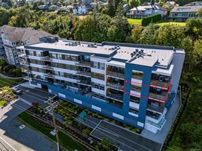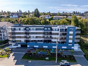 Ocean view Condo-two parking spots. Built in 2023, this property looks brand new inside and out. Exceptional features include three bedrooms plus den, open concept end unit with ocean views on two sides facing west, enjoy the boats and wildlife passing by with Quadra Island in the background. Neutral paint tones, designer kitchen with quartz countertops, two full bathrooms, and high end appliances. The owners have enjoyed the heat pump with air conditioning, and, walking distance to marina, cafes and shopping, yet parklike quiet setting in the backyard. A perfect investment, as most condominiums do not have 2 secured entry parking spots designated and 3 bedrooms plus a den. Open air hallways with parklike setting at the back. Ocean views all day long with sunsets in the evening, lock up and go lifestyle.