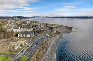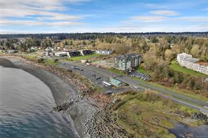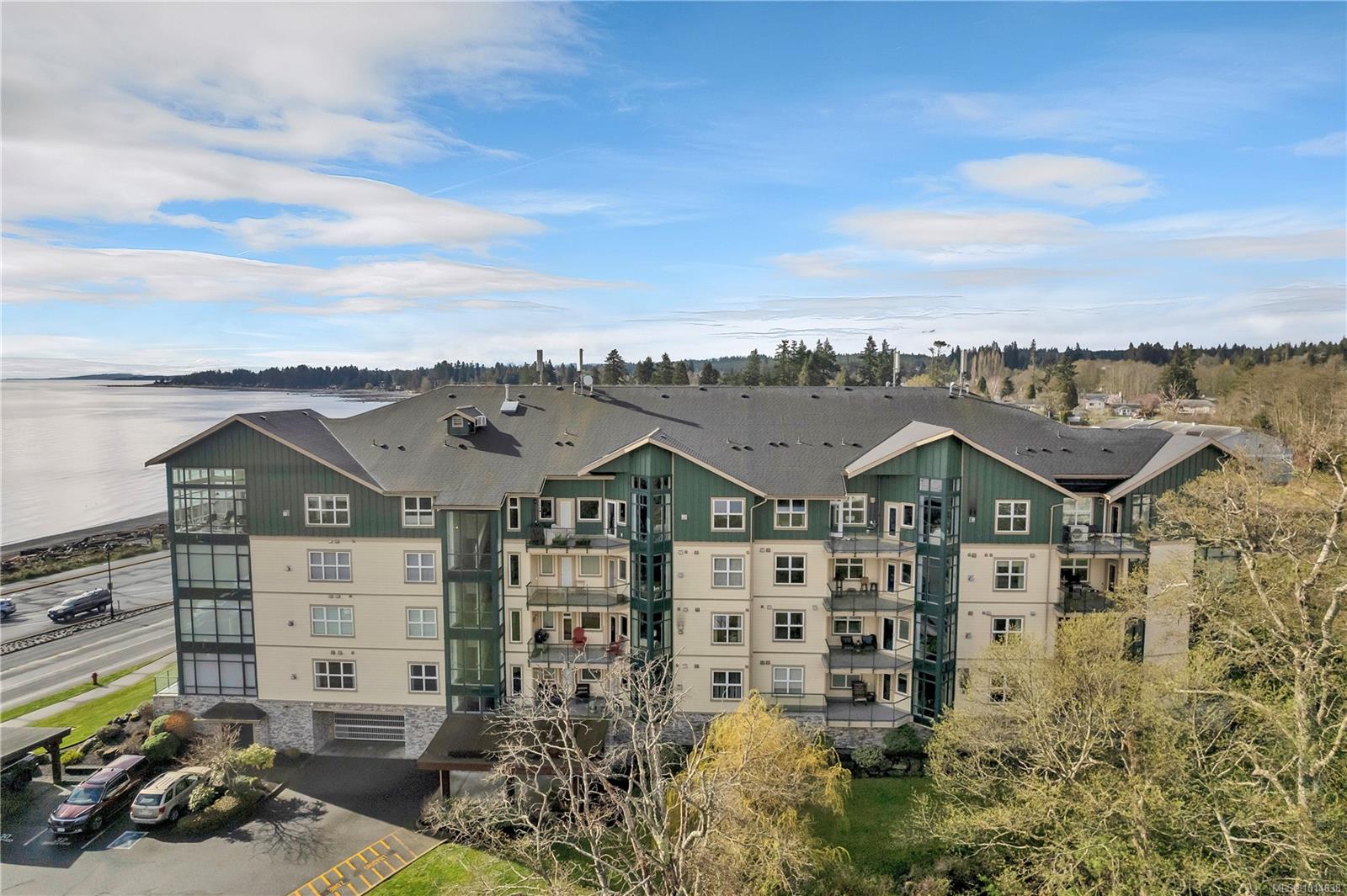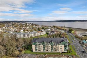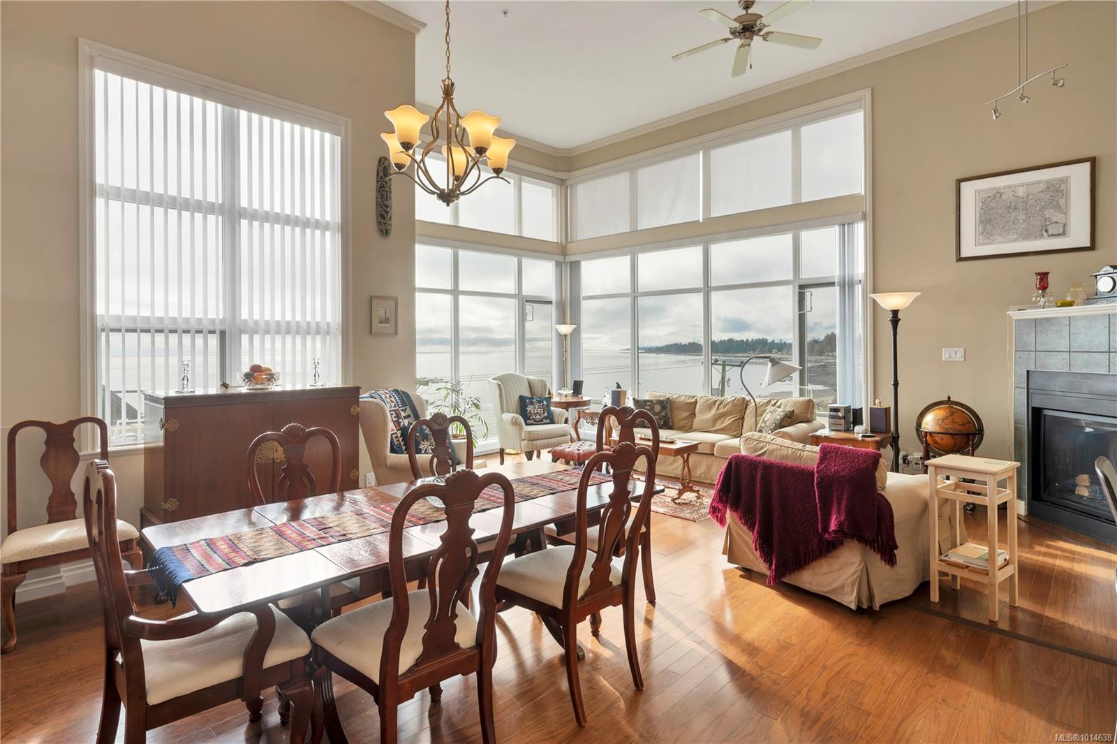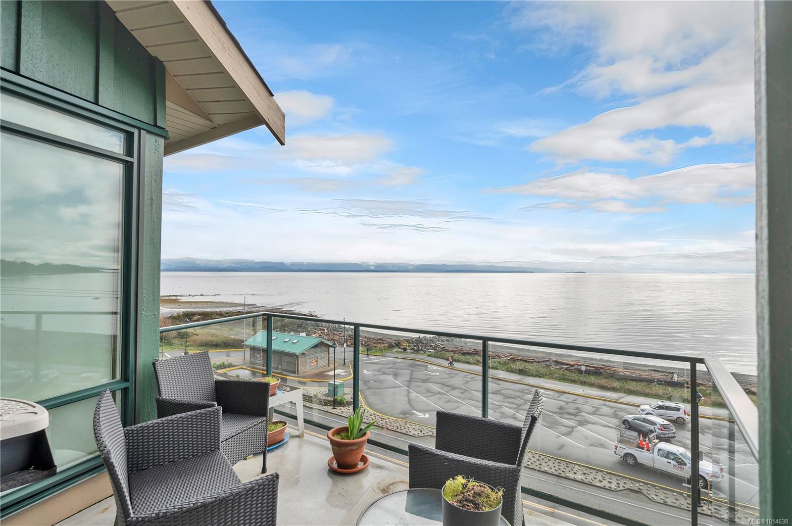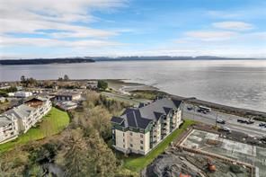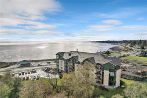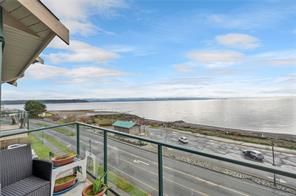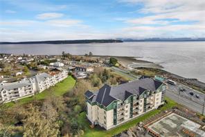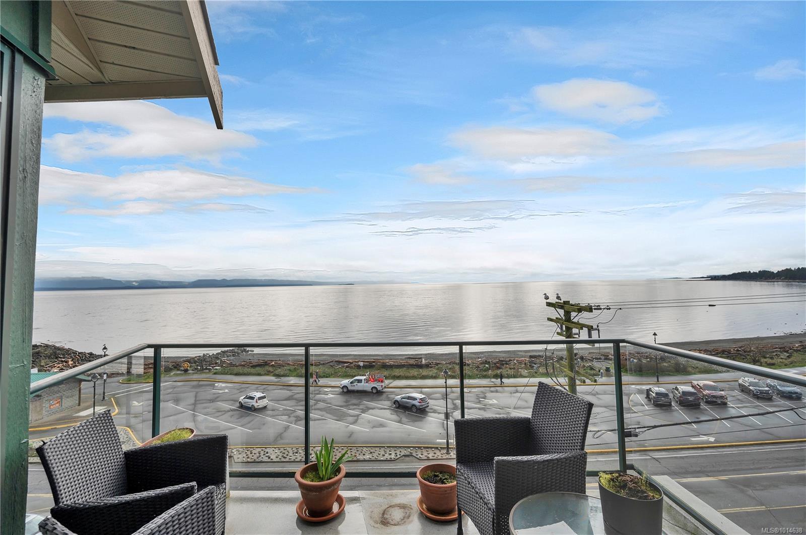 This beautifully appointed 3-bedroom, 2-bathroom condo in the coveted Willows Oceanside complex offers semi oceanfront living with stunning views of the Discovery Islands and passing marine traffic. Floor-to-ceiling windows flood the open-concept space with natural light, while rich hardwood floors, granite countertops, and maple cabinetry add warmth and elegance. The kitchen includes a handy island and flows into the living area anchored by a cozy gas fireplace – perfect for relaxed coastal living.