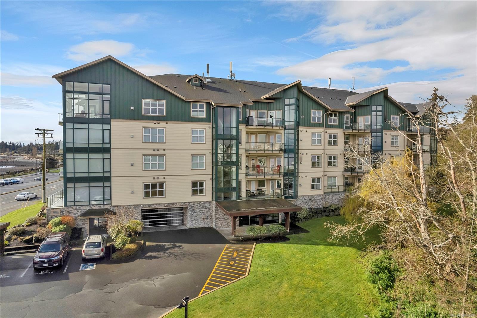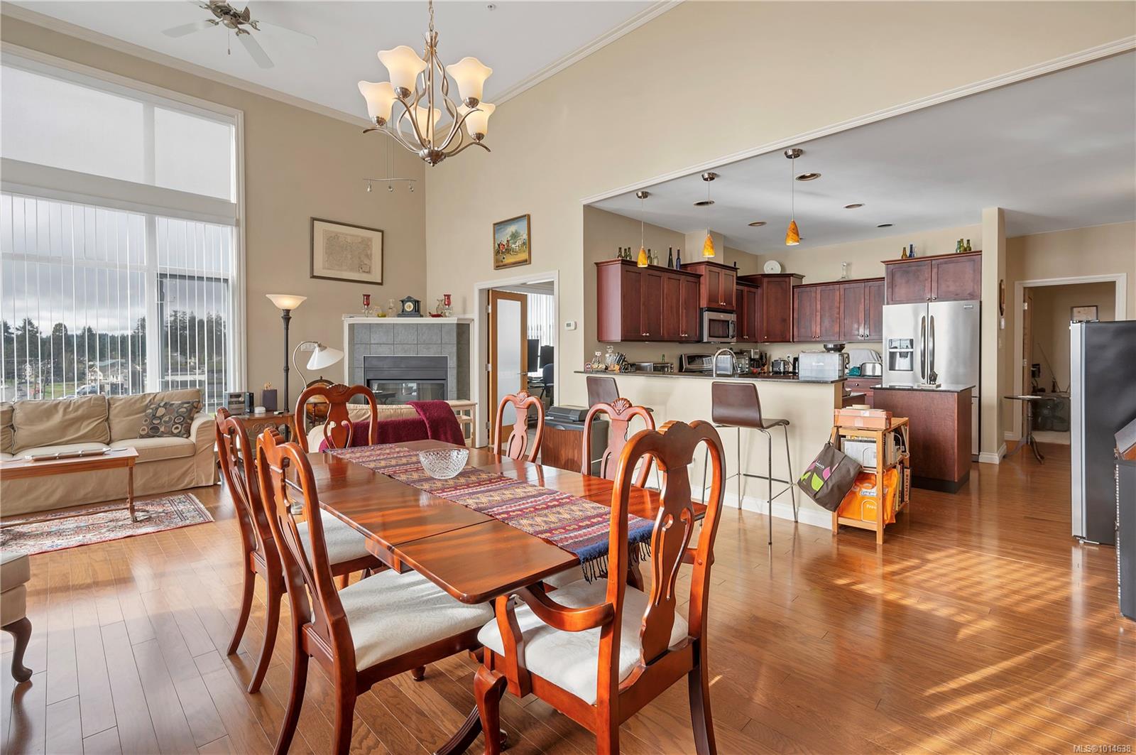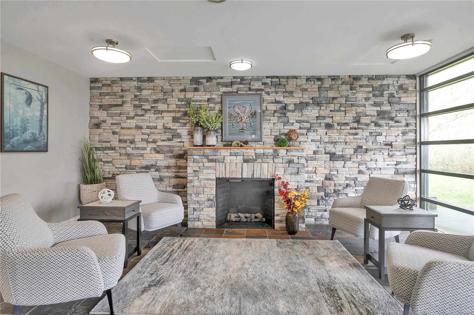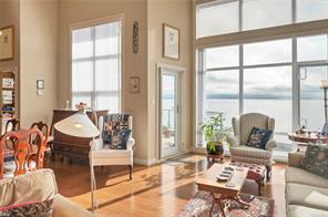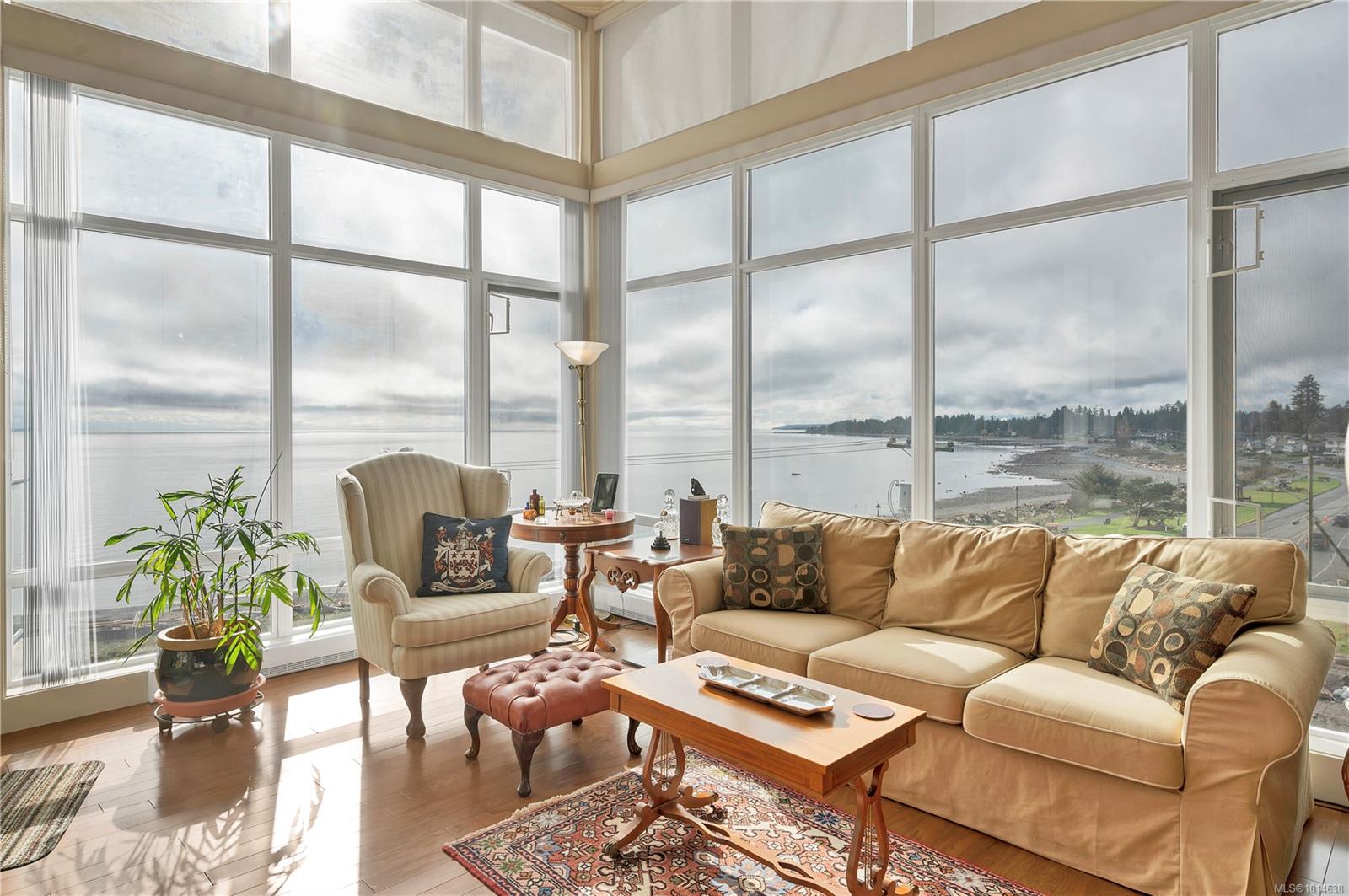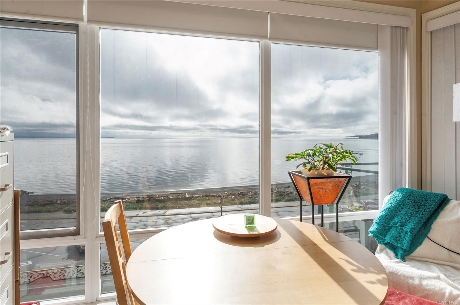 This beautifully appointed 3-bedroom, 2-bathroom condo in the coveted Willows Oceanside complex offers semi oceanfront living with stunning views of the Discovery Islands and passing marine traffic. Floor-to-ceiling windows flood the open-concept space with natural light, while rich hardwood floors, granite countertops, and maple cabinetry add warmth and elegance. The kitchen includes a handy island and flows into the living area anchored by a cozy gas fireplace – perfect for relaxed coastal living.
