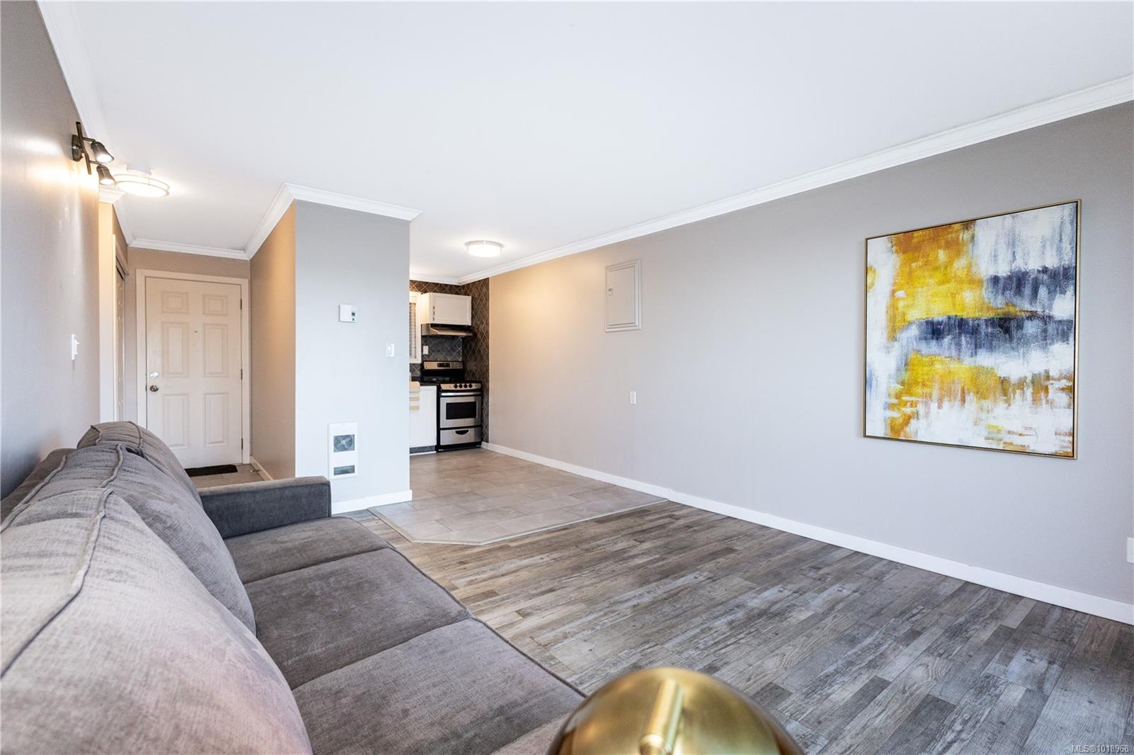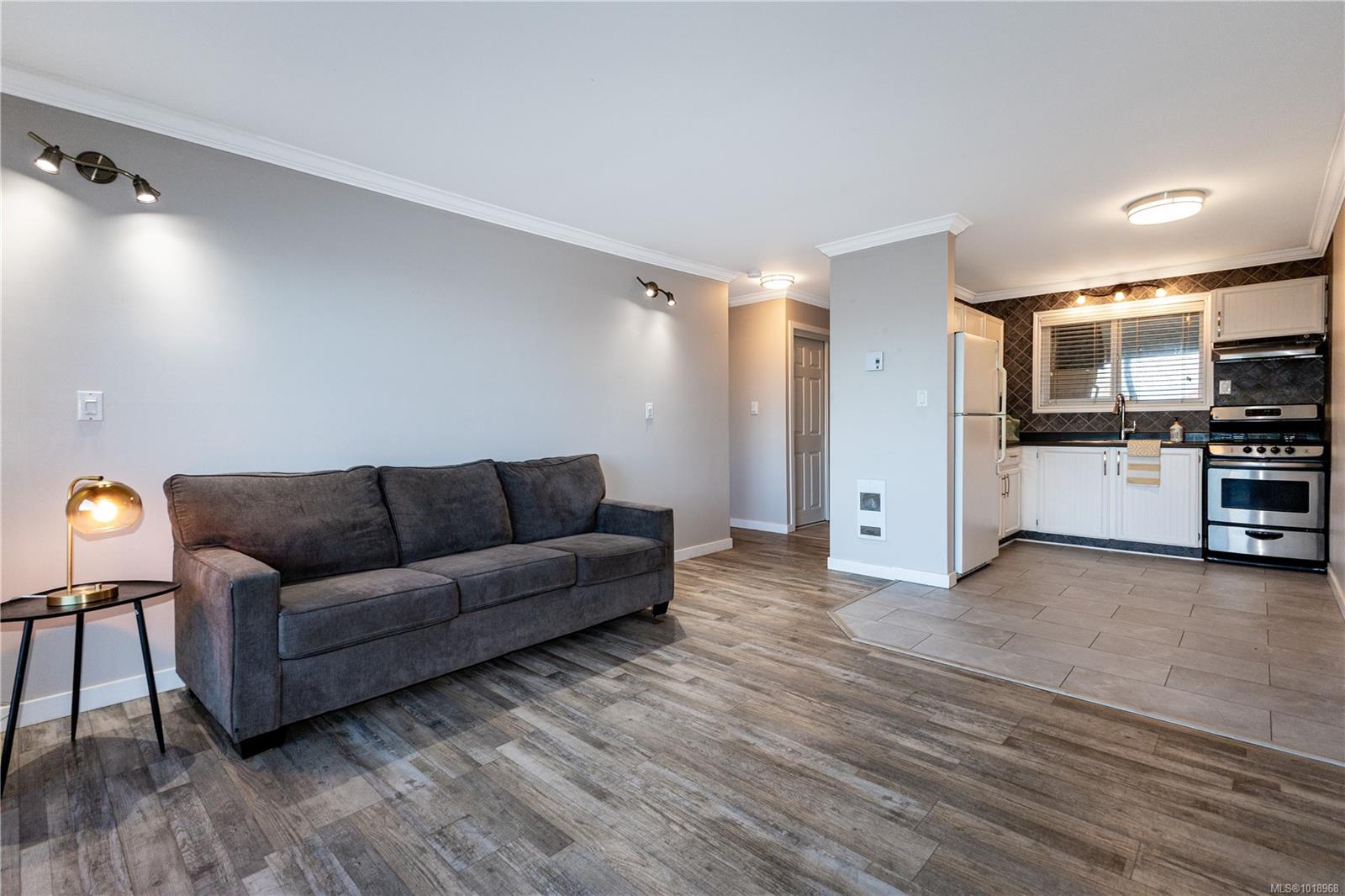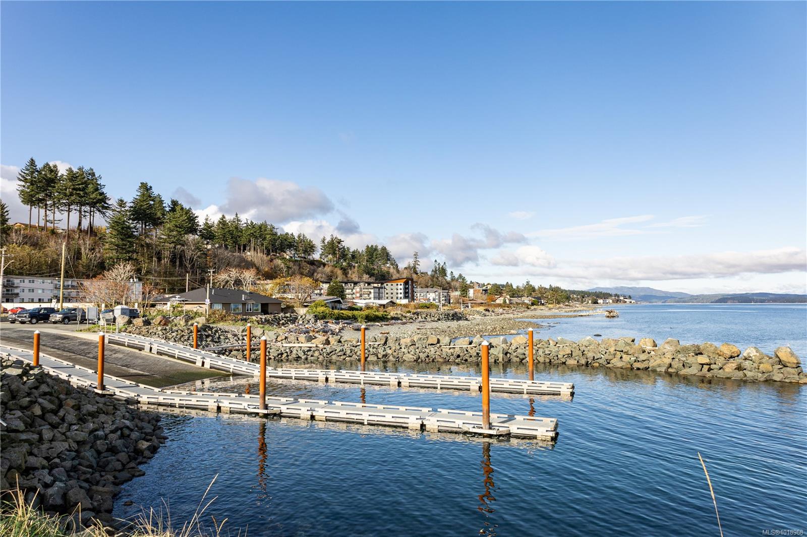 Tastefully renovated ocean view condo! Located across the street from a boat launch, FoggDukkers and famous coffee place, Seawalk and beach. You will not believe the list of improvements: Acoustic soundproofing in the exterior hallway wall and ceilings making ground floor living more enjoyable, lovely kitchen with tile backsplash, in-suite laundry, new hot water tank, new laminate and tile flooring, nice paint colour, light fixtures, crown molding, tiled and renovated bathroom plus UV film on the windows. The building has new roof. Windows, decks and siding was replaced in 2006. All ages welcome as well as caged birds and fish. Covered boat or carport parking at an additional cost if available. BBQ area right outside your door. Ground floor unit giving easy access as this condo does not have an elevator (there is a wheelchair ramp to the right side of the building making this home suitable for wheelchair accessibility).