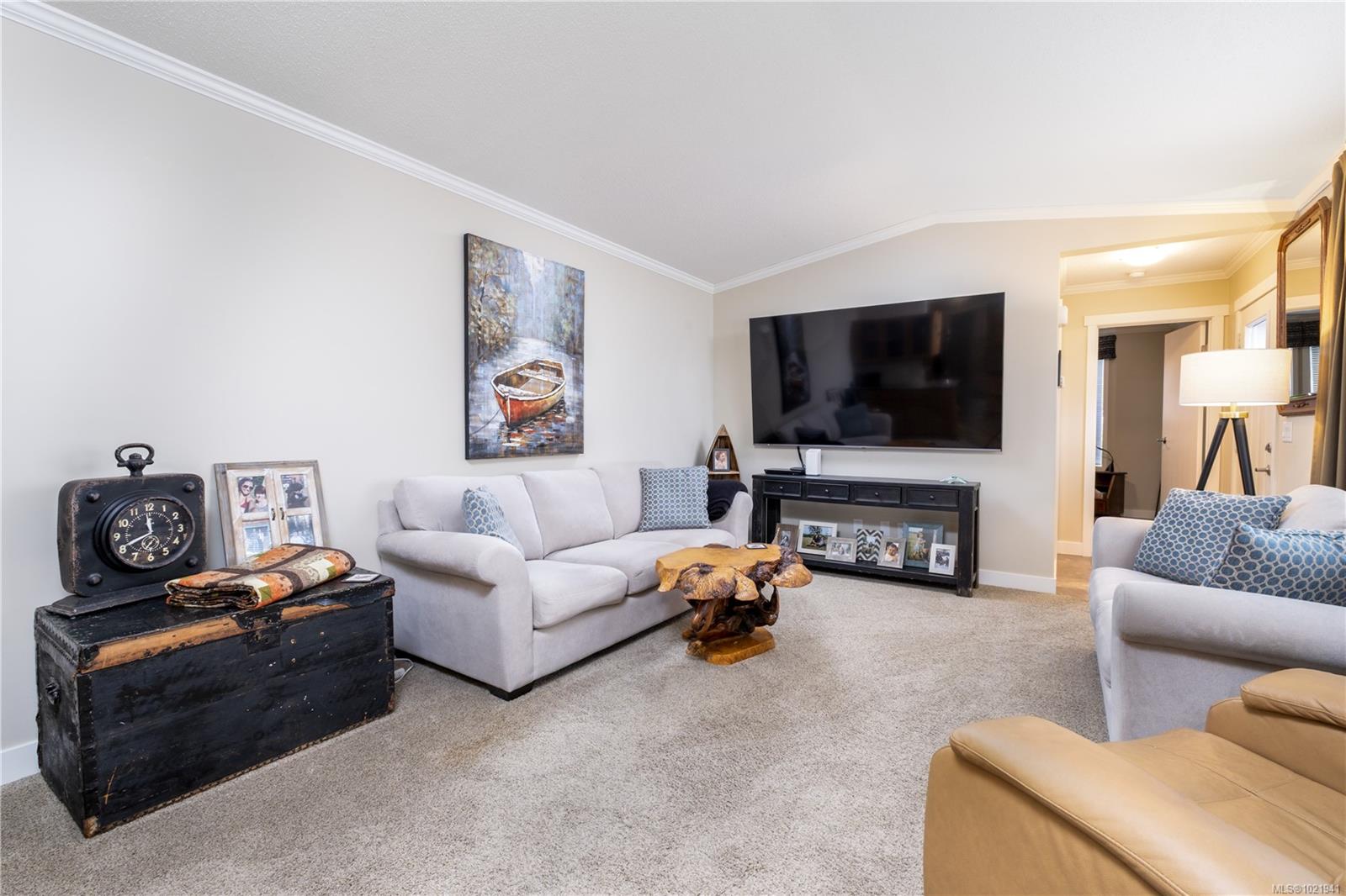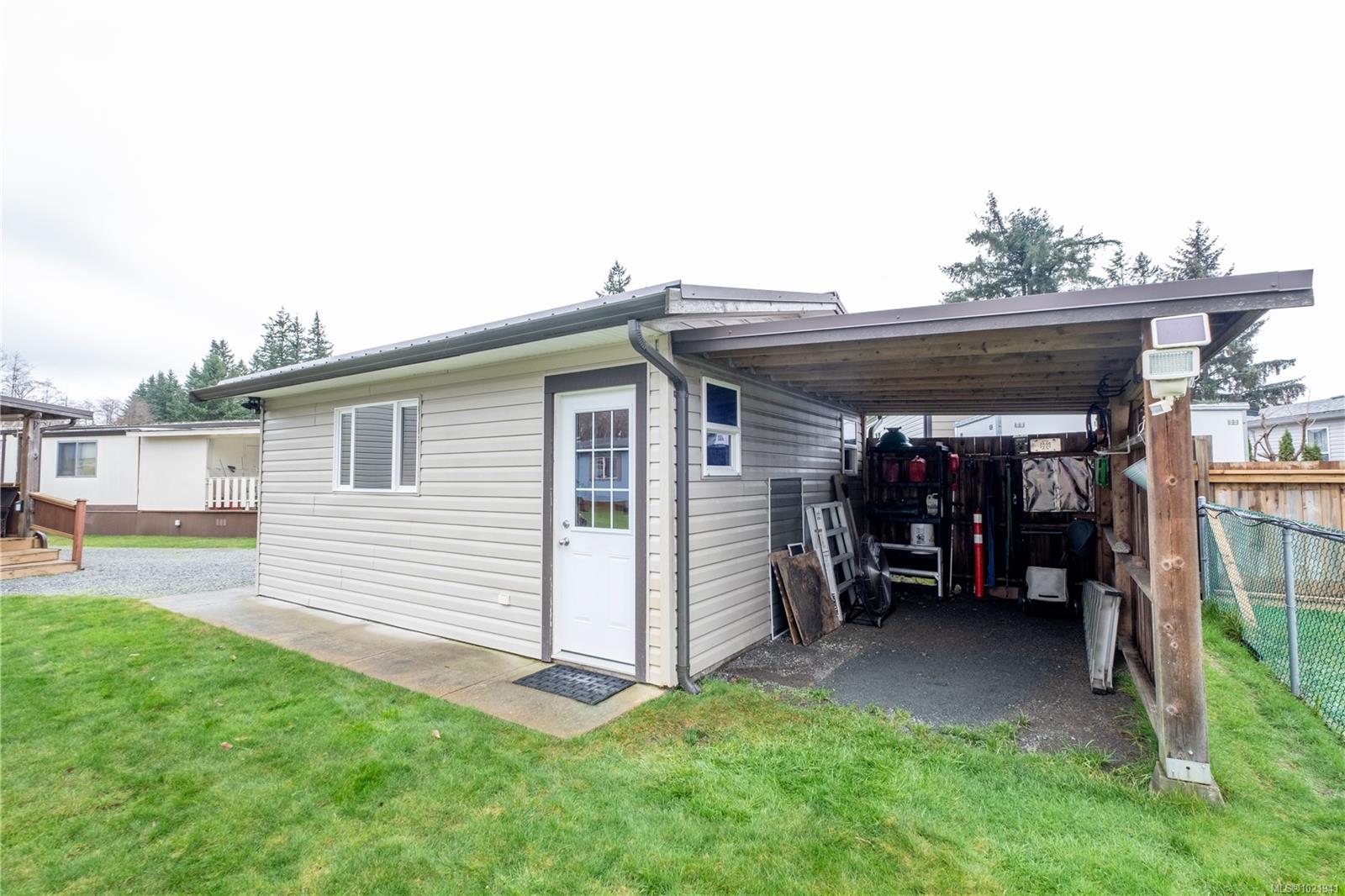 Great 2 bedroom 2 full bathroom home with an incredible shop and you OWN THE LOT! Built in 2014 this manufactured home is move in condition. Wonderful park and the $140/monthly fee includes landscaping, garbage removal, water and sewer. This is a top end manufactured home with full drywall package (not panelling) full solid concrete slab with engineered footings, and an upgraded kitchen with solid cabinets, tons of counter space, high-end appliances, garburator and a brand new hot water tank. The house is inexpensive to heat with extra insulation and an efficient propane furnace. Hydro runs $100/mth and propane was $1100 per year. Propane tank rental is $138/ yr. ** The heated 18’x20’ SHOP is well constructed and comes with shelving and a desk, perfect for any project. Forest Glen park is a great self-managed and desirable park in a great location with a strong reserve fund. Taxes $2200.00 with home grant applied