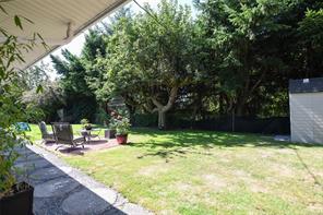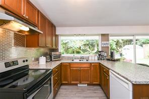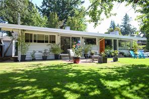 Mid-Century Modern Rancher on Oversized Lot in Courtenay Just minutes north of downtown Courtenay, this charming mid-century modern rancher sits on a spacious 0.34-acre lot with dual frontage on Island Hwy and Oakridge Drive. There’s plenty of room to park your RV, boat, or other toys. Inside, you’ll love the vaulted ceilings and vinyl floors that add warmth and character to the living room, complete with a woodstove insert for cozy, efficient heating in the winter. The updated kitchen features tile backsplash, modern cabinetry, and a convenient peninsula for extra prep space. Offering 3 bedrooms, 1 full bathroom, and a generous utility/storage room. Step outside into a beautifully private yard dotted with Garry oaks — ideal for entertaining, gardening, or simply enjoying the outdoors. With new R-SSMUH zoning, explore the potential to add a secondary suite, carriage house, granny flat, or even investigate subdivision options (verify with the City of Courtenay)