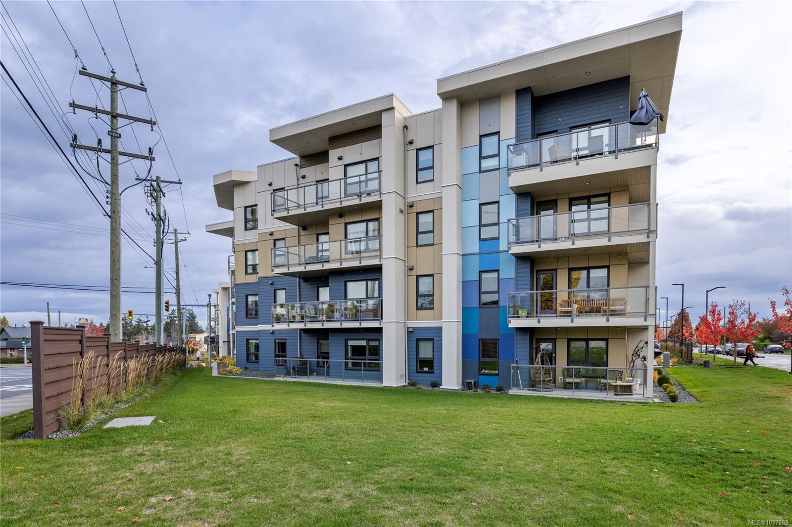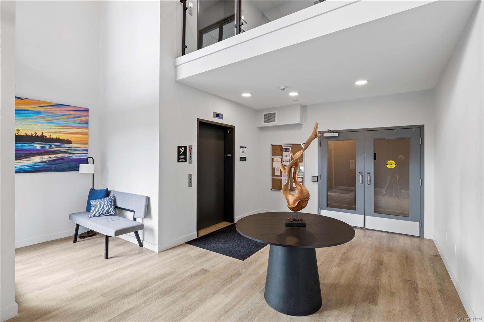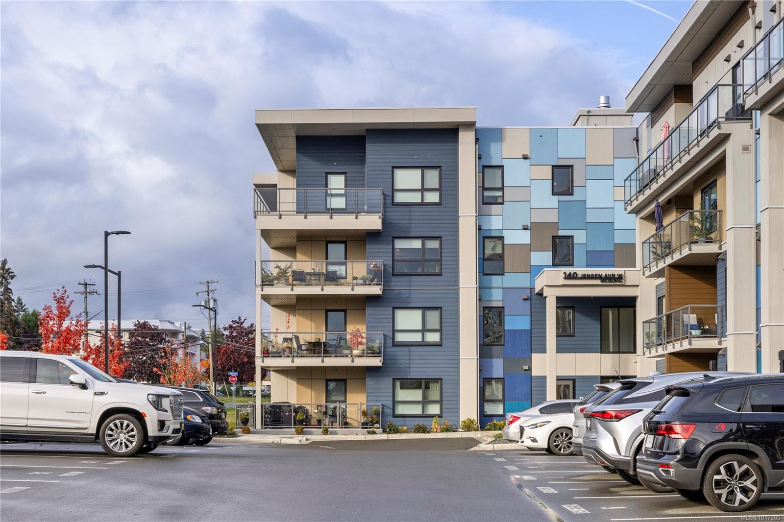 Welcome to Mosaic, Parksville’s green built centrally located condo building! This 1 bed, 1 bath, plus storage unit, boasts 9’ ceilings, quartz countertops, triple-pane windows, and energy-efficient upgrades including a heat pump, and hot water on demand. The building is designed for sustainability with solar panels, leak detection, and superior soundproofing.