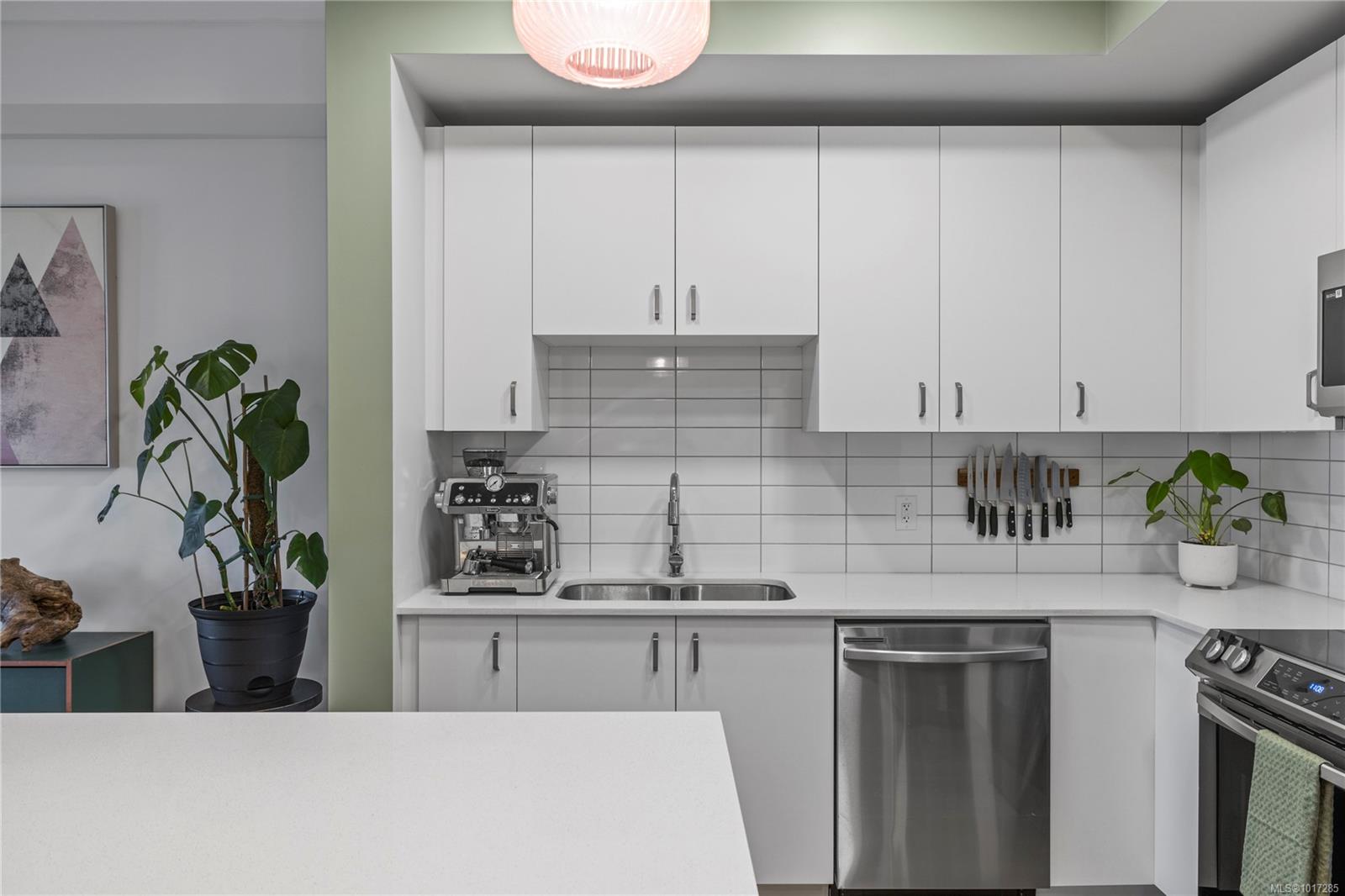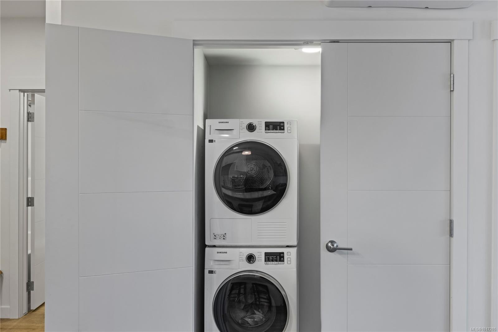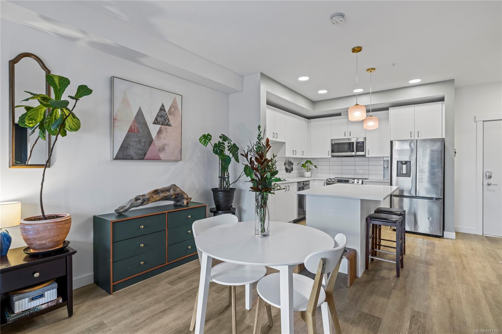 Welcome to Mosaic, Parksville’s green built centrally located condo building! This 1 bed, 1 bath, plus storage unit, boasts 9’ ceilings, quartz countertops, triple-pane windows, and energy-efficient upgrades including a heat pump, and hot water on demand. The building is designed for sustainability with solar panels, leak detection, and superior soundproofing.