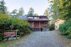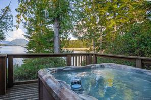 Tofino inlet front oasis. .63 acre lot, 2693sq ft home, 3 bed, 2 bath, plus 1 bed 1 bath suite. This home has one of the best views in all Jensens Bay. The open-concept great room boasts 18ft vaulted wood ceilings, gorgeous wood beams, wood flooring & trim, & a slate tile propane fireplace. The main living area leads to an expansive wrap around balcony, great for wildlife viewing. Kitchen w/granite countertops, stainless steel appliances & breakfast bar. Also on the second level are 2 beds & 1 bath. Third level hosts the primary bed, w/jack & jill ensuite bath, & third level balcony. Bonus loft space. The ground level offers a large laundry room & full garage in addition to the 1 bed 1 bath suite. The exterior of this home ticks all the boxes, expansive decks, hot tub & firepit overlooking the inlet, ample yard space, outdoor surf shower, plenty of parking & a storage shed for all your toys. If you have been looking for a property on the tranquil inlet, look no further. GST may apply