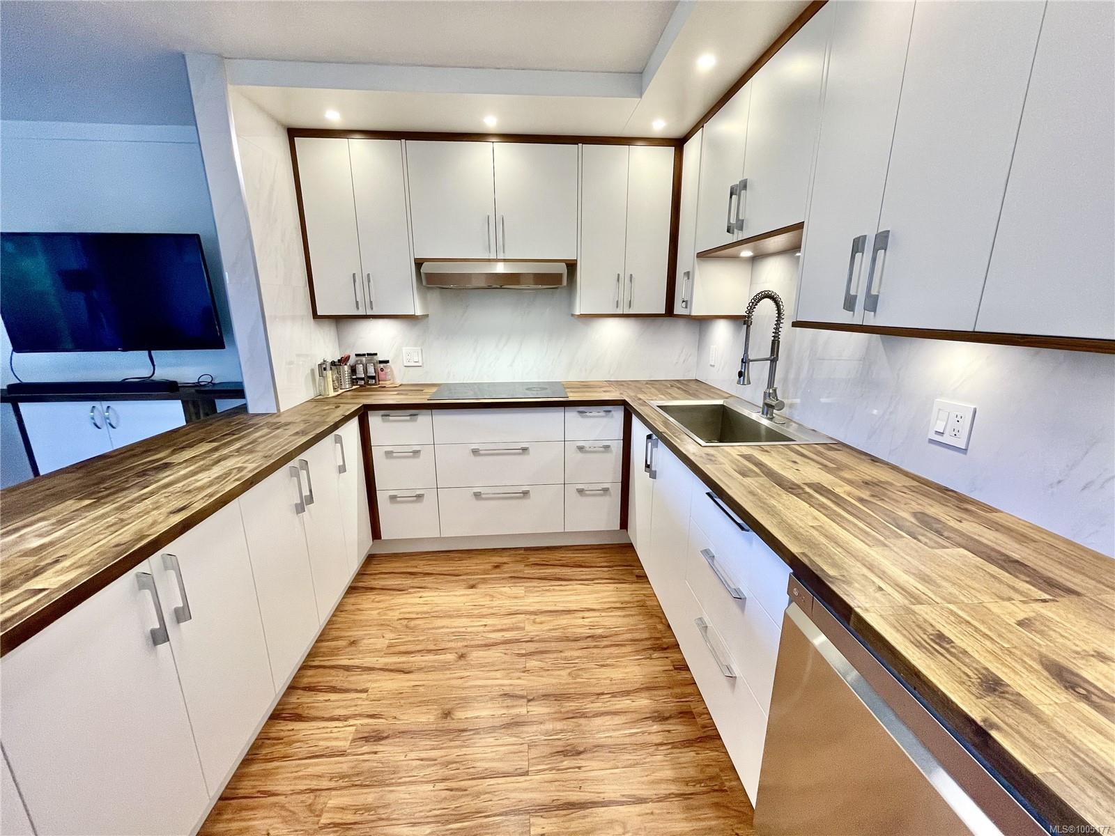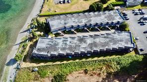 Oceanfront living in a nicely updated 1 bedroom, 1 bathroom ground level condo. Opportunity to own just steps from the beach and enjoy a paddle, sunset stroll or shoreline social. This desirable 1 bed, 1 bath Beachcomber Estates condo offers an open kitchen/living room area with warm wood counters, spacious cabinets, accent lighting and sliding glass patio doors that lead to covered patio to relax with a morning coffee. The 4-pc bath is ideal with a decorative vanity, tile floor and linen storage. Bright bedroom features privacy blinds, double closets, durable and attractive laminate flooring throughout this efficient, comfortable floorplan. Utility/storage room with convenient built in shelving, a nearby storage locker provides plenty of space to live, work and play! Common laundry room nearby. Your west coast lifestyle awaits!