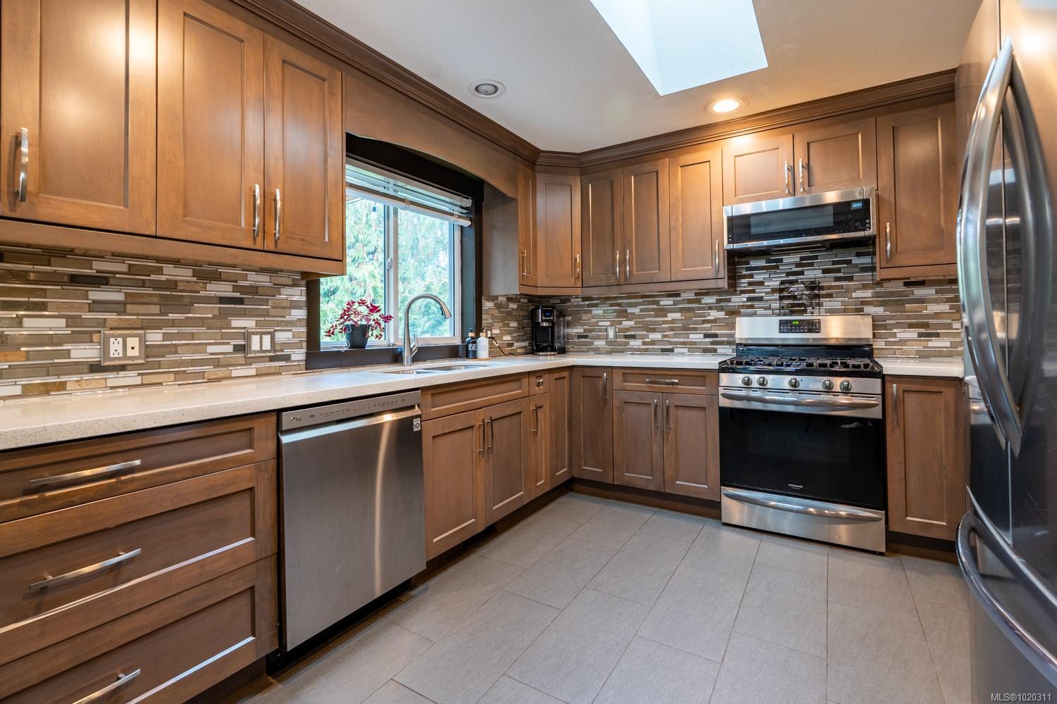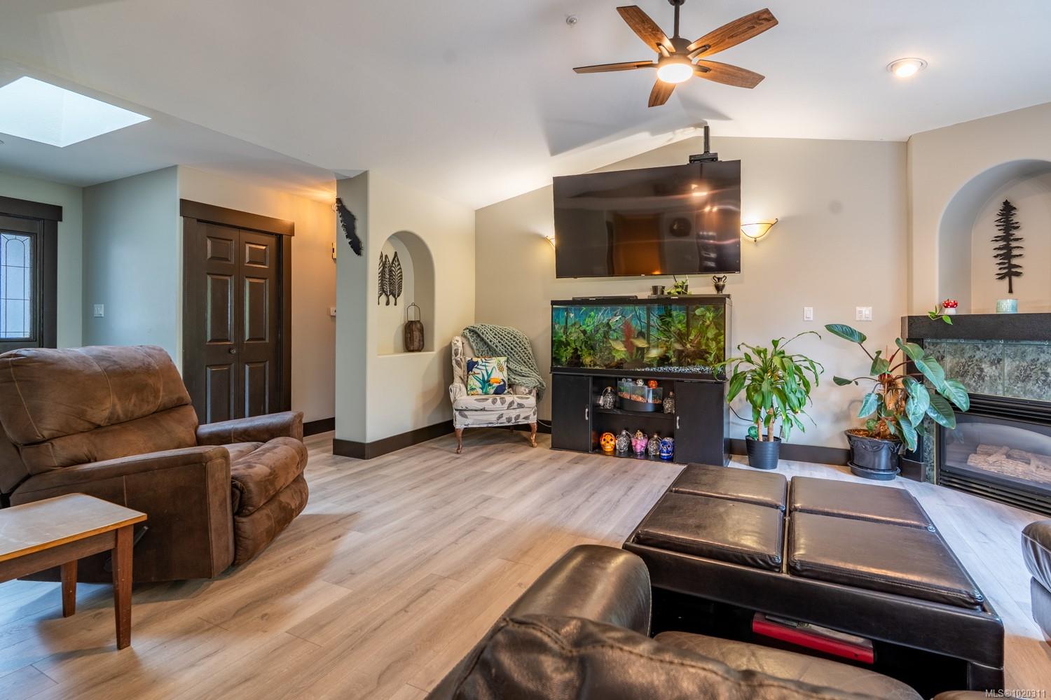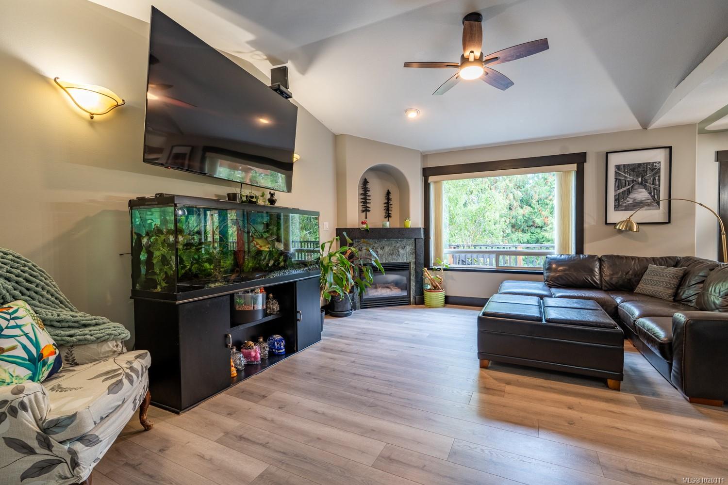 OPEN HOUSE November 29th 1:30pm to 3:00 pm. You could be all moved in for Christmas! Welcome to 1941 Kells Bay, a beautifully maintained 4-bed, 3-bath home in Cinnabar Valley on a no through road. This bright, spacious residence features an open living area with a cozy gas fireplace and an updated kitchen with quartz countertops, stainless-style appliances, and a pantry. The primary suite offers a walk-in closet and 4-piece ensuite, with two additional bedrooms and a full bath completing the main floor. The redone basement adds versatility with a large rec room, bedroom, 4-piece bath, laundry, and storage—easily suited for family or income potential. Enjoy the private patio backing onto Richards Marsh Park, fresh paint, new laminate flooring, newer roof, & a storage shed. Close to schools, parks, & amenities, this move-in-ready home blends comfort, updates, & a prime location in one of Nanaimo’s most sought-after neighbourhoods. All measurements are approx, please verify if important.