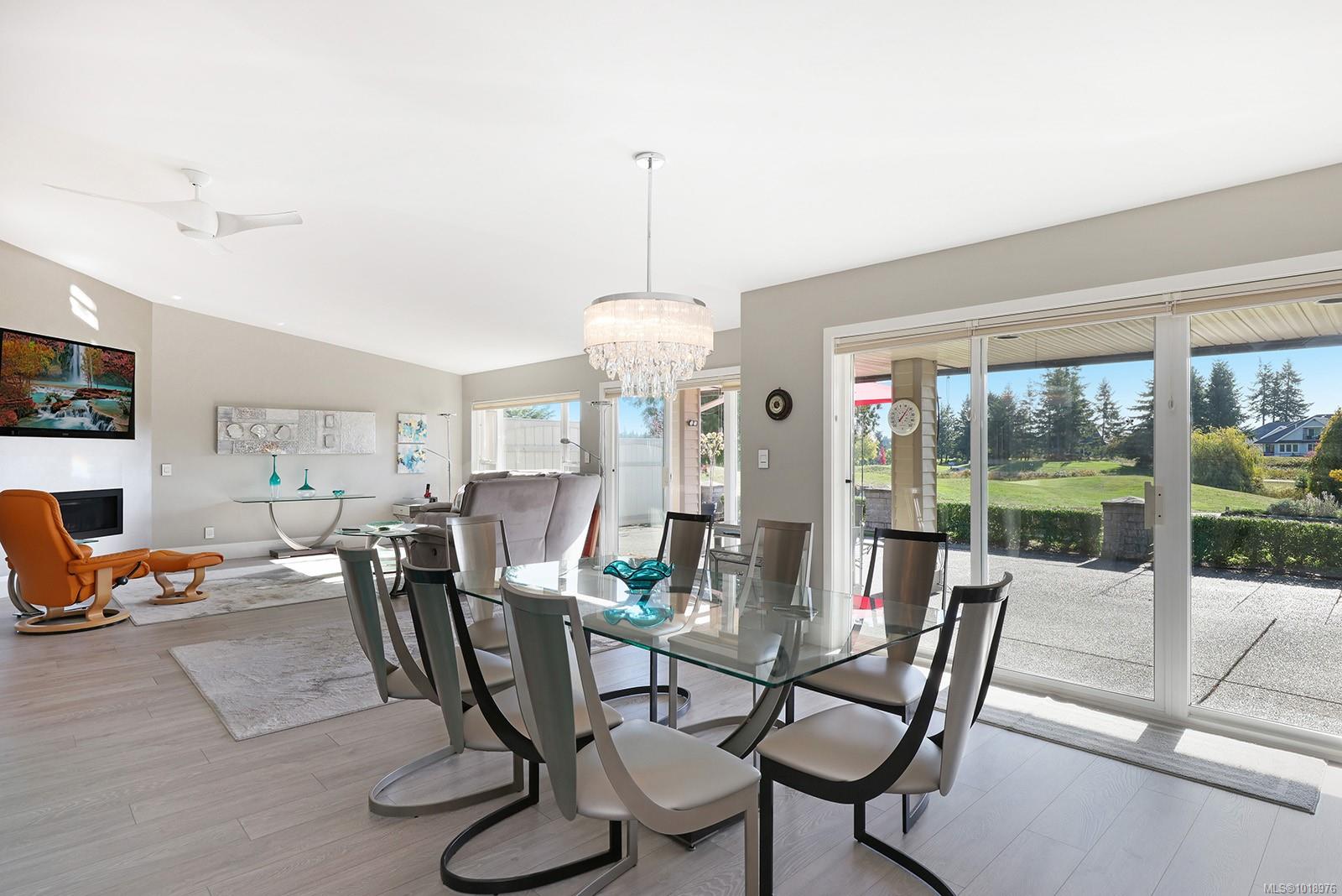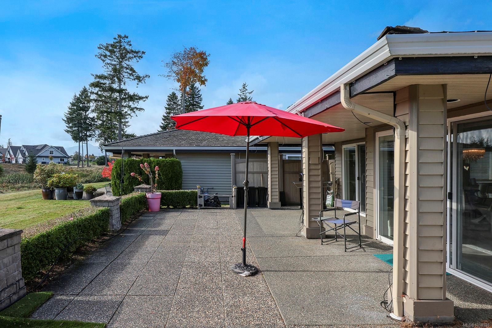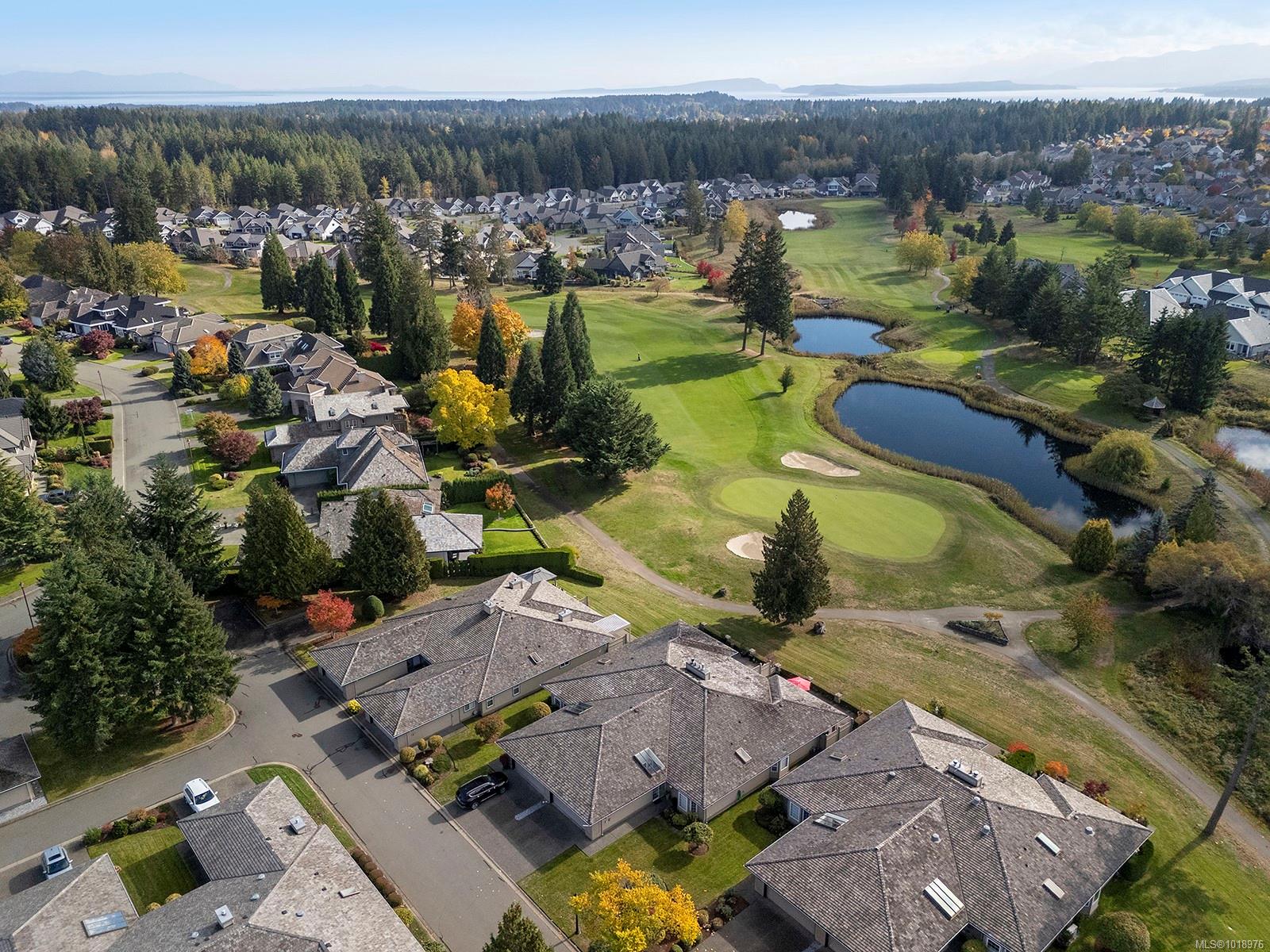 Perfectly positioned beside the 13th green at Crown Isle, this immaculate 1,745 sq. ft. patio home in the desirable 55+ Crown Point community offers easy, elegant living with stunning views of the Comox Glacier. The bright kitchen overlooks the green and features an induction cooktop, pot filler, on-demand hot water tap, soft-close cabinetry, under-cabinet lighting, and upgraded outlets and switches. The spacious living room, featuring a gas fireplace, opens to a sun-drenched patio, ideal for relaxing or entertaining. Thoughtful upgrades include a central vacuum with toe-kick sweep, Nest controls, motion-activated bedside switches, and under-cabinet lighting in both bathrooms. The double garage offers ample storage, a work area, and a second fridge. Complete with an irrigation system for planters and pots, this beautifully maintained home combines comfort, style, and low-maintenance living just minutes from shopping and recreation.