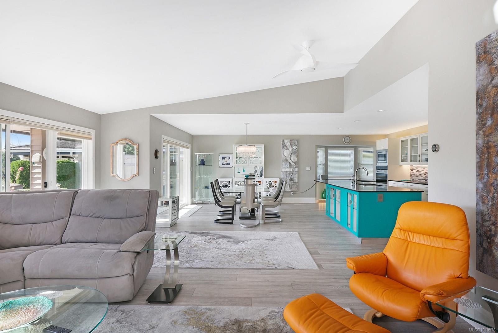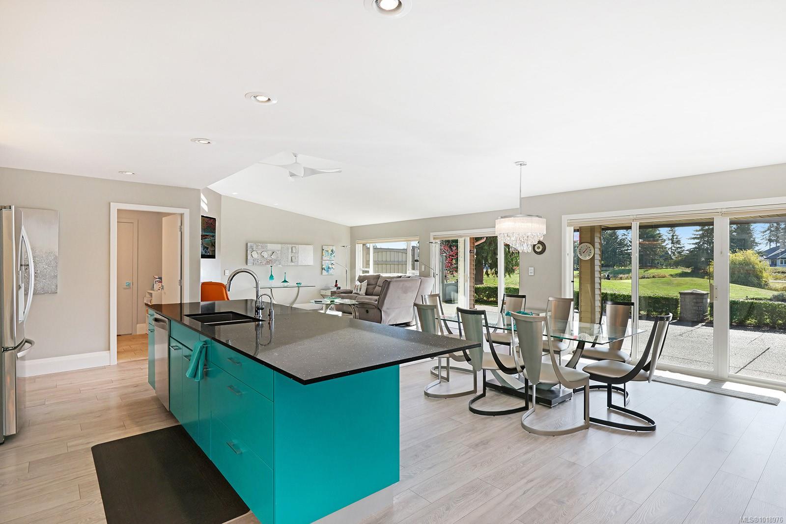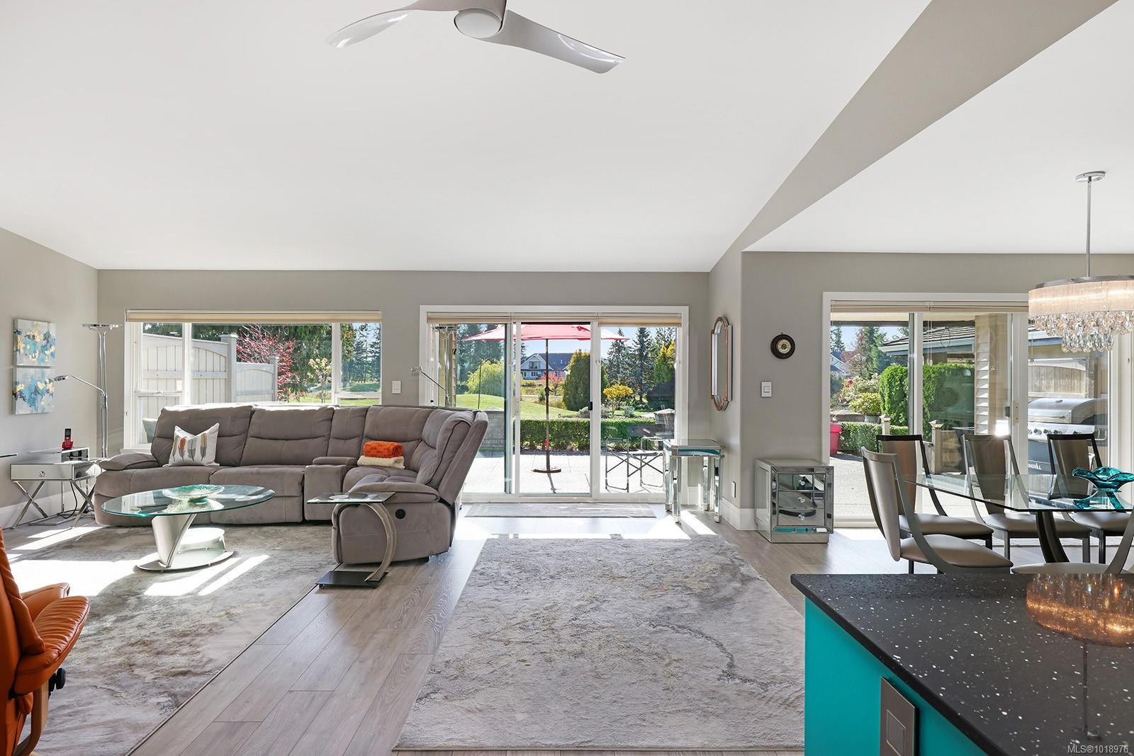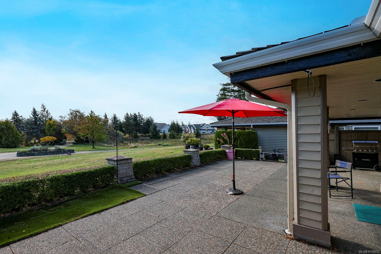 Perfectly positioned beside the 13th green at Crown Isle, this immaculate 1,745 sq. ft. patio home in the desirable 55+ Crown Point community offers easy, elegant living with stunning views of the Comox Glacier. The bright kitchen overlooks the green and features an induction cooktop, pot filler, on-demand hot water tap, soft-close cabinetry, under-cabinet lighting, and upgraded outlets and switches. The spacious living room, featuring a gas fireplace, opens to a sun-drenched patio, ideal for relaxing or entertaining. Thoughtful upgrades include a central vacuum with toe-kick sweep, Nest controls, motion-activated bedside switches, and under-cabinet lighting in both bathrooms. The double garage offers ample storage, a work area, and a second fridge. Complete with an irrigation system for planters and pots, this beautifully maintained home combines comfort, style, and low-maintenance living just minutes from shopping and recreation.