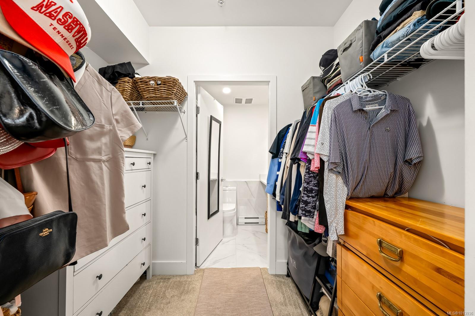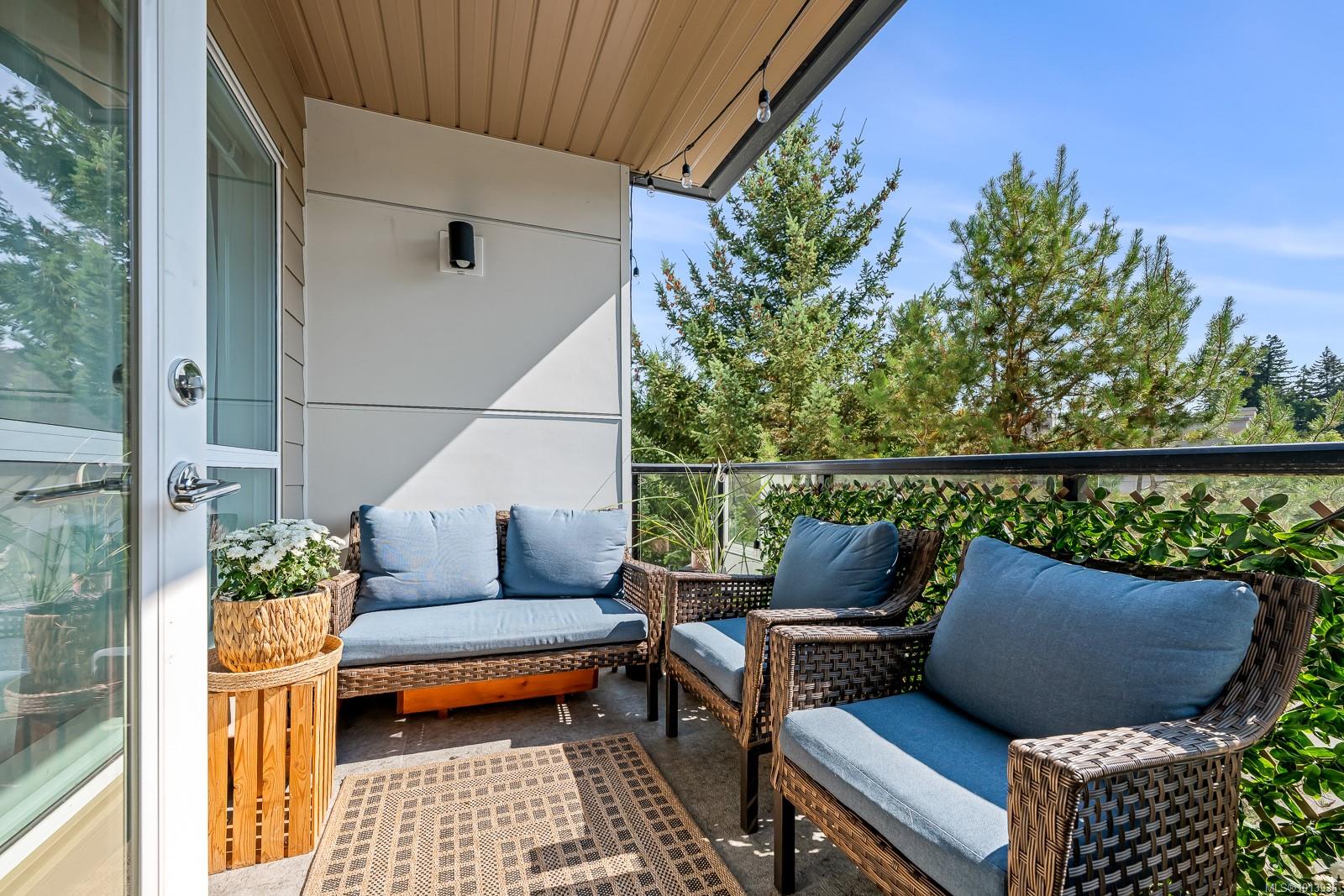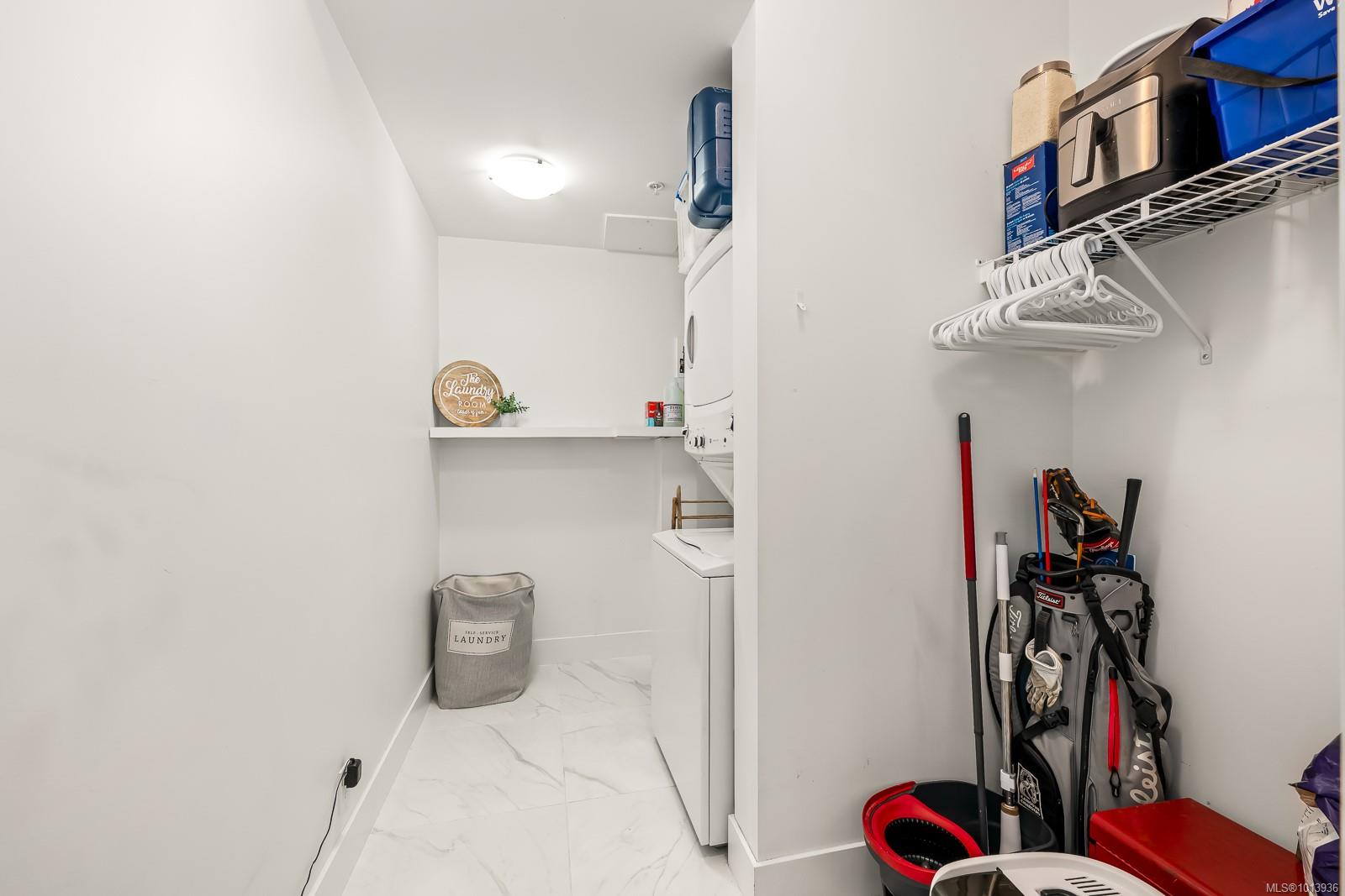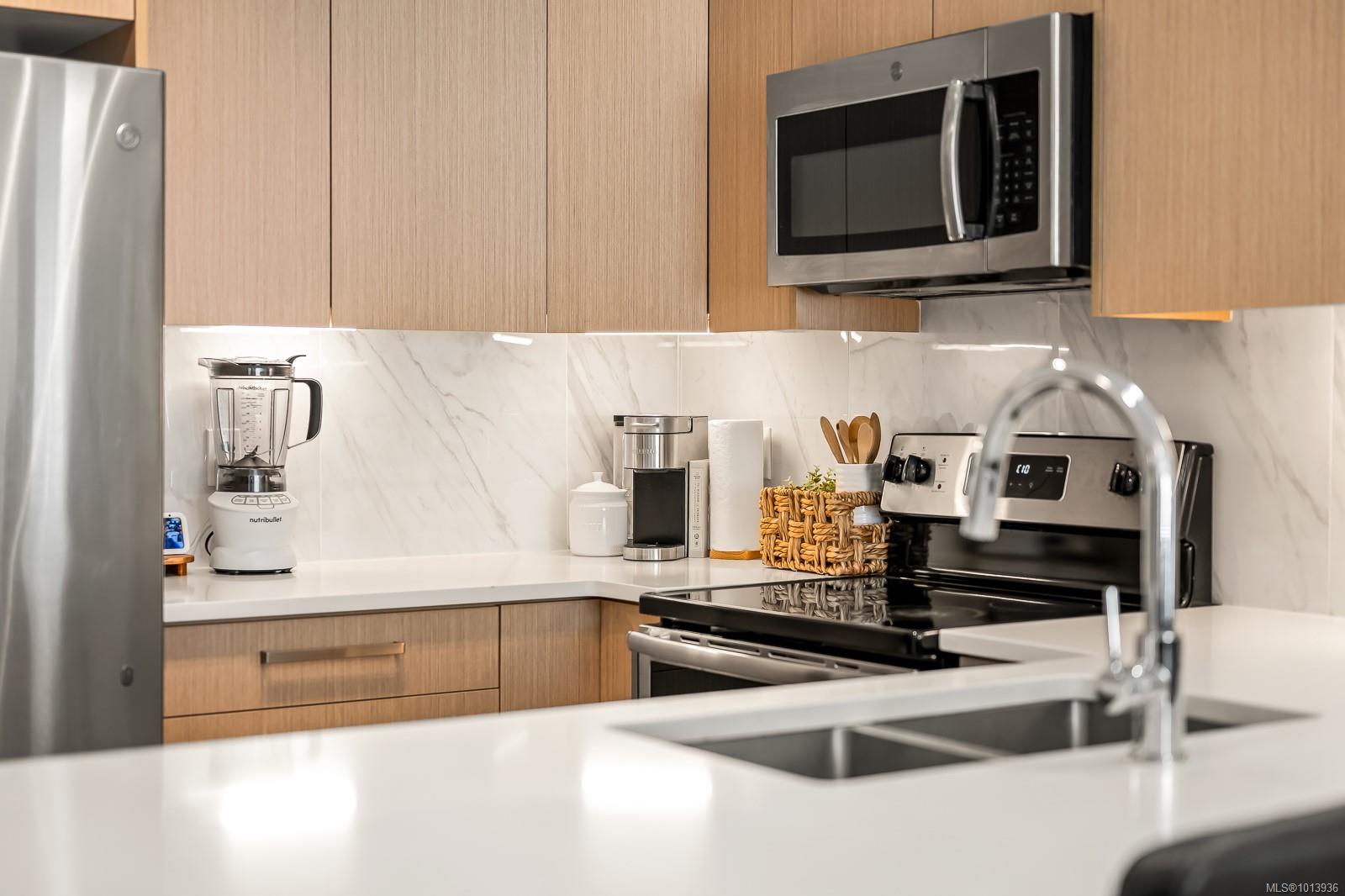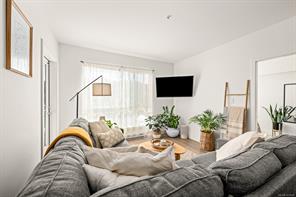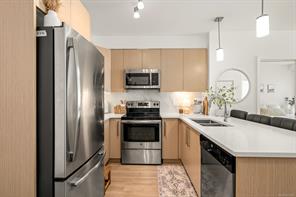 This bright and modern 2 bedroom, 2 bathroom condo offers over 900 sqft of comfortable living in a fantastic central Courtenay location. Built in 2019, the home has been well cared for by its owner and features an open concept floor plan with a stylish kitchen, stainless steel appliances, and plenty of cabinet space. The living area is filled with natural light and opens to a generous south-facing patio, perfect for enjoying the sunshine. The spacious primary bedroom includes a walk-through closet and private ensuite, while the second bedroom and full bathroom provide flexibility for guests, family, or a home office. Additional highlights include in-suite laundry, secure underground parking, and a well-managed building with modern design and elevator access. Within walking distance to shopping, restaurants, cafes, transit, this home is ideal for first-time buyers, down sizers, or investors looking for a low-maintenance property in a desirable location.
