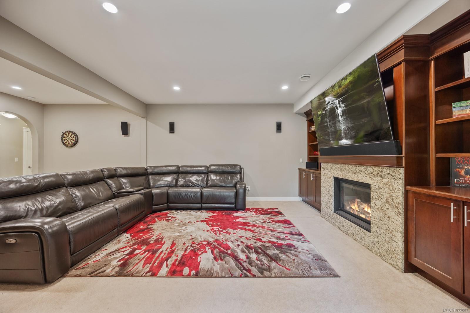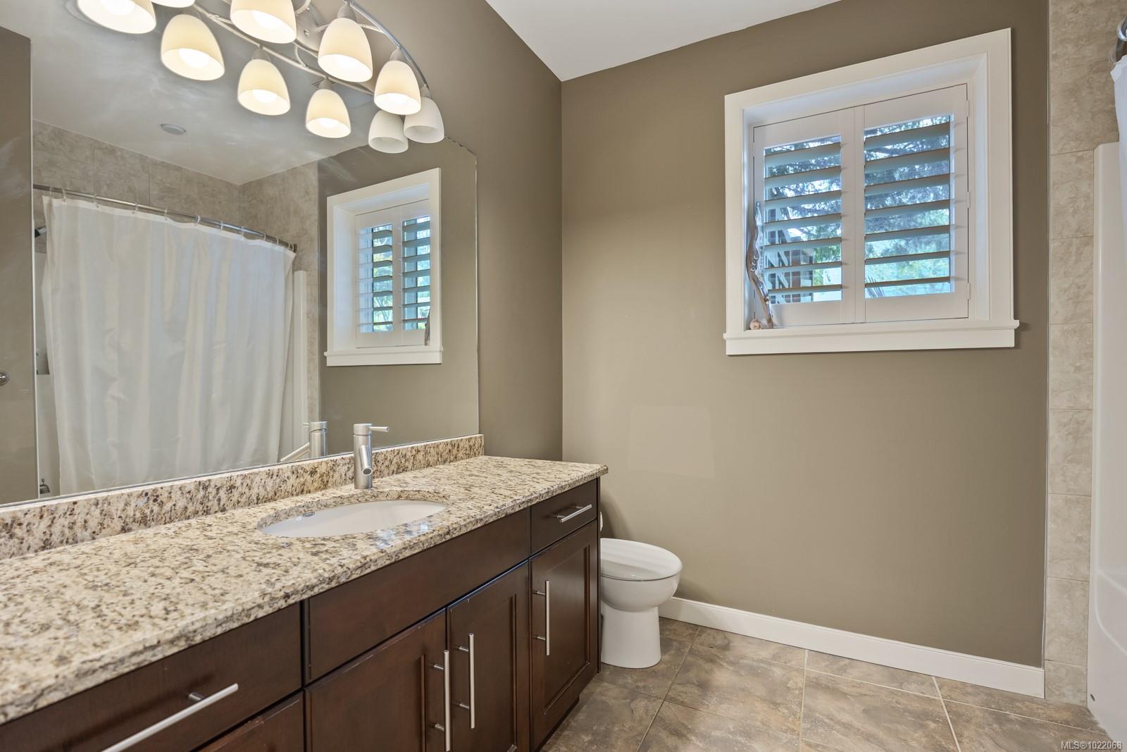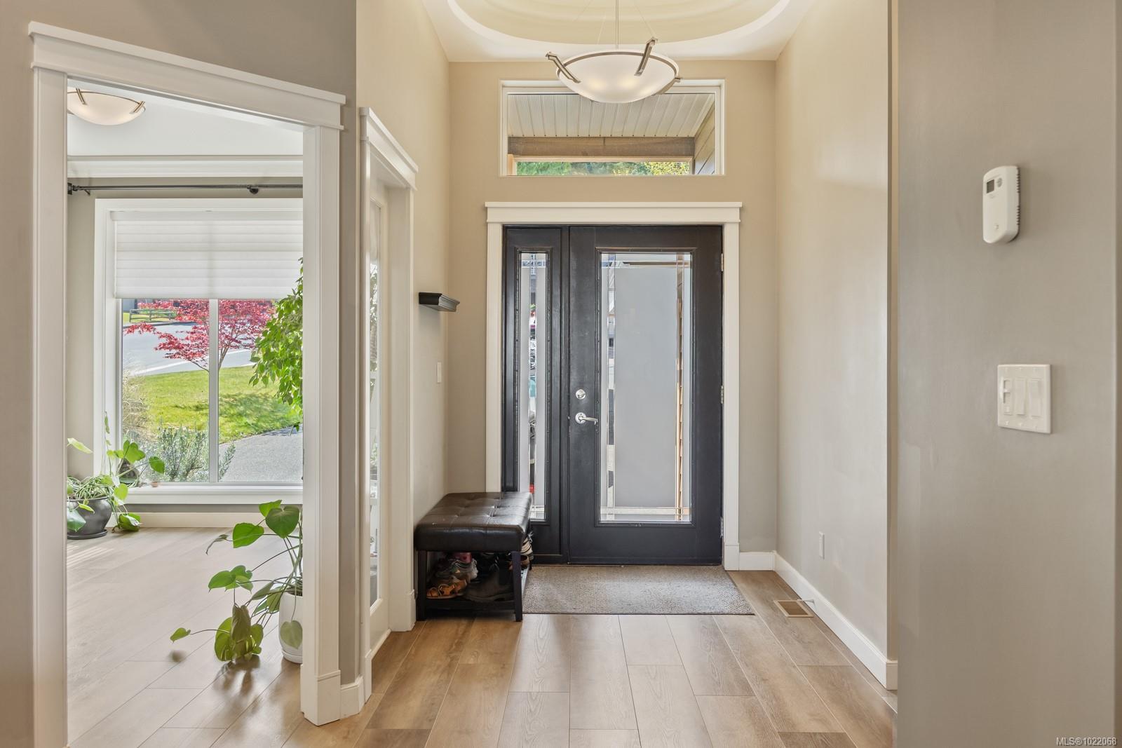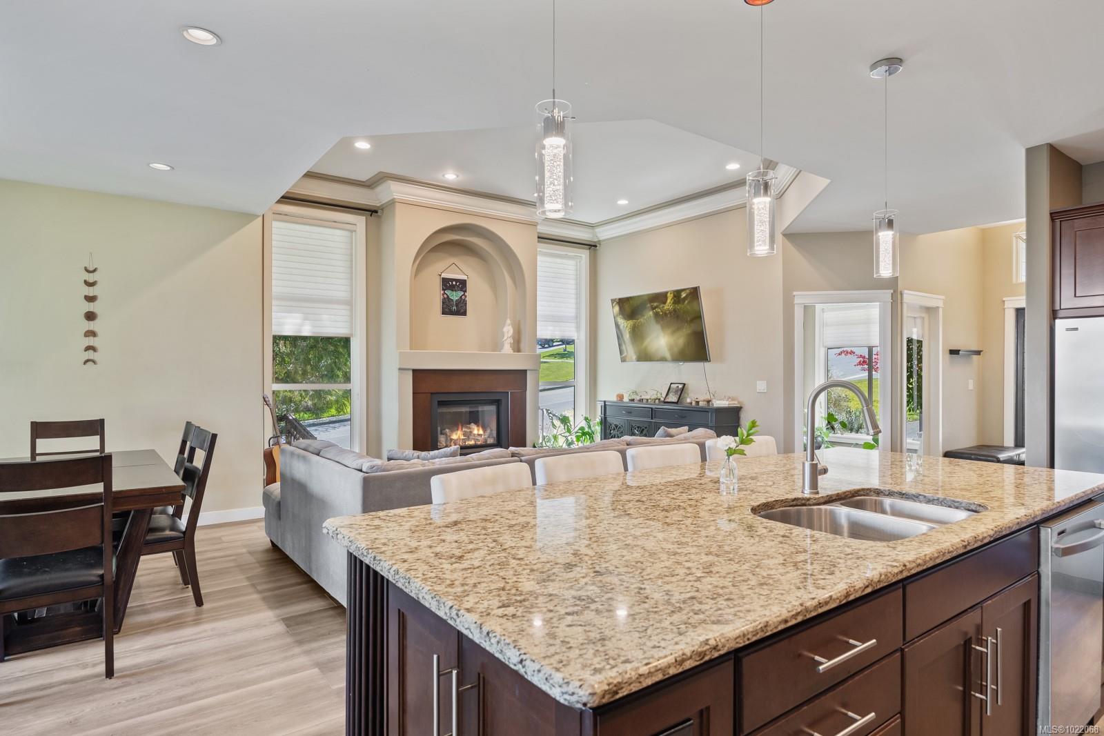 Priced below BC Assessment value. 3101 Klanawa Cres- a remarkable family home nestled in one of East Courtenay’s most desirable neighbourhoods. Beautiful mountain views & a private backyard set the backdrop for this property. At 3233 sqft, this home offers main-floor living & a walk-out basement. Throughout, extensive moldings, soaring ceilings, hardwood floors, granite counters, hot water OND, central vac, & irrigation system. The kitchen features stainless steel appliances, wood cabinetry, and generous workspace. The primary suite includes a soaker tub, walk-in shower, dual vanities, & a double-sided fireplace. For year-round comfort; a heat pump, & 3 gas fireplaces. The lower floor is an entertainer’s dream, rec room & theatre room, wet bar, and direct access to a covered patio. Included downstairs, 2 large bedrooms, & a storage room. The outdoor space has both sun & shade, lush landscaping, & a waterfall feature that ties it all together.