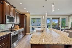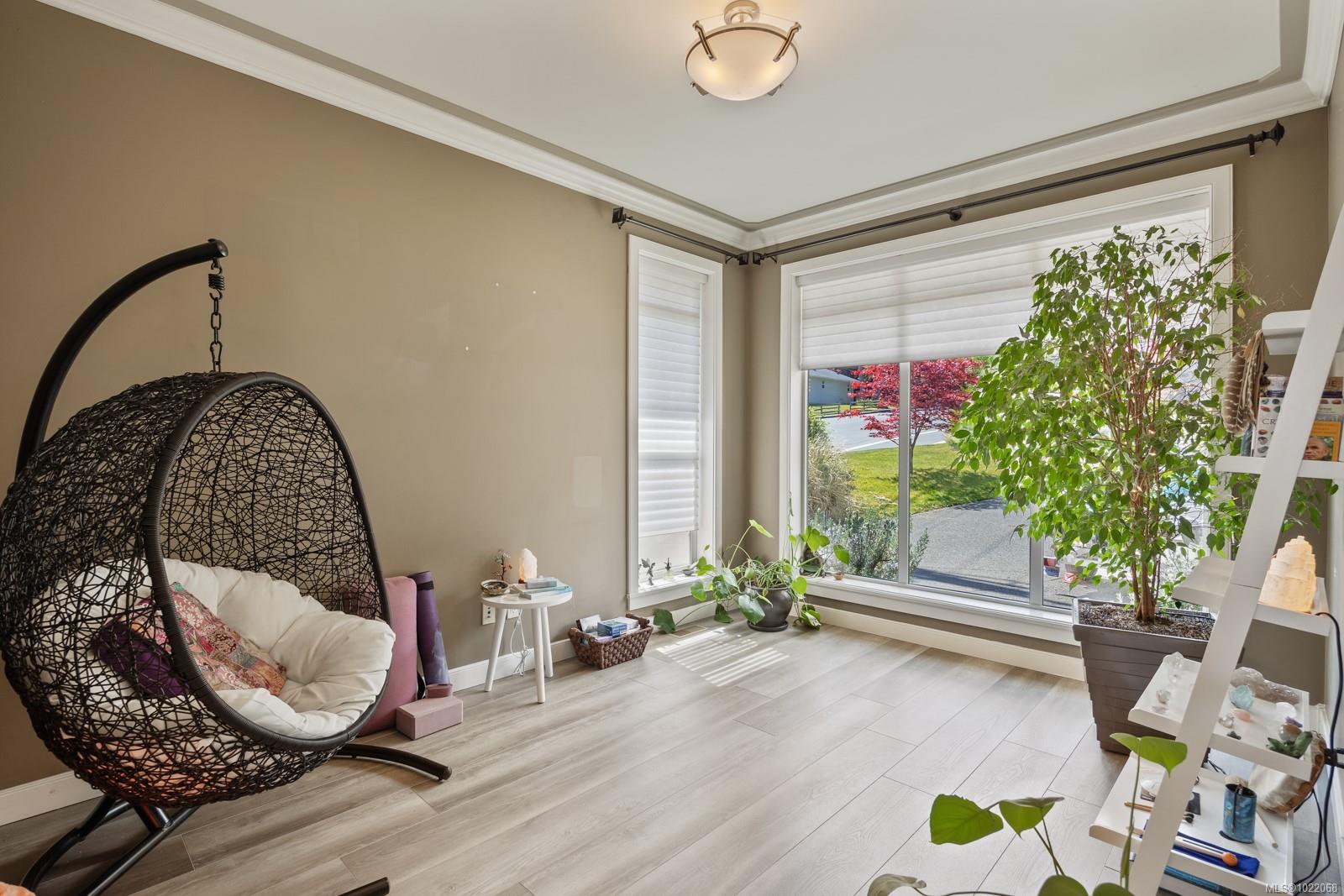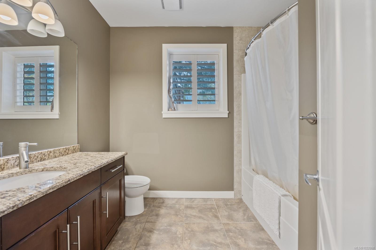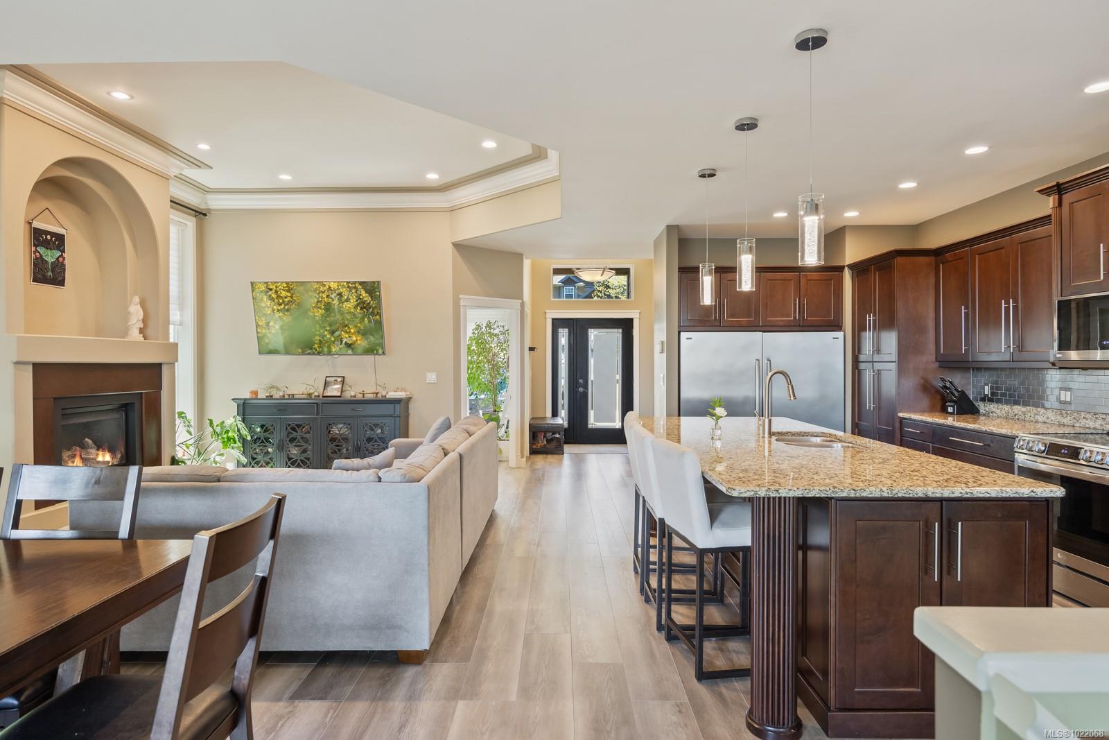 Priced below BC Assessment value. 3101 Klanawa Cres- a remarkable family home nestled in one of East Courtenay’s most desirable neighbourhoods. Beautiful mountain views & a private backyard set the backdrop for this property. At 3233 sqft, this home offers main-floor living & a walk-out basement. Throughout, extensive moldings, soaring ceilings, hardwood floors, granite counters, hot water OND, central vac, & irrigation system. The kitchen features stainless steel appliances, wood cabinetry, and generous workspace. The primary suite includes a soaker tub, walk-in shower, dual vanities, & a double-sided fireplace. For year-round comfort; a heat pump, & 3 gas fireplaces. The lower floor is an entertainer’s dream, rec room & theatre room, wet bar, and direct access to a covered patio. Included downstairs, 2 large bedrooms, & a storage room. The outdoor space has both sun & shade, lush landscaping, & a waterfall feature that ties it all together.