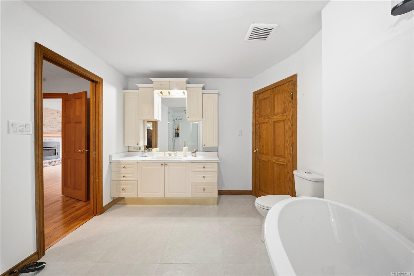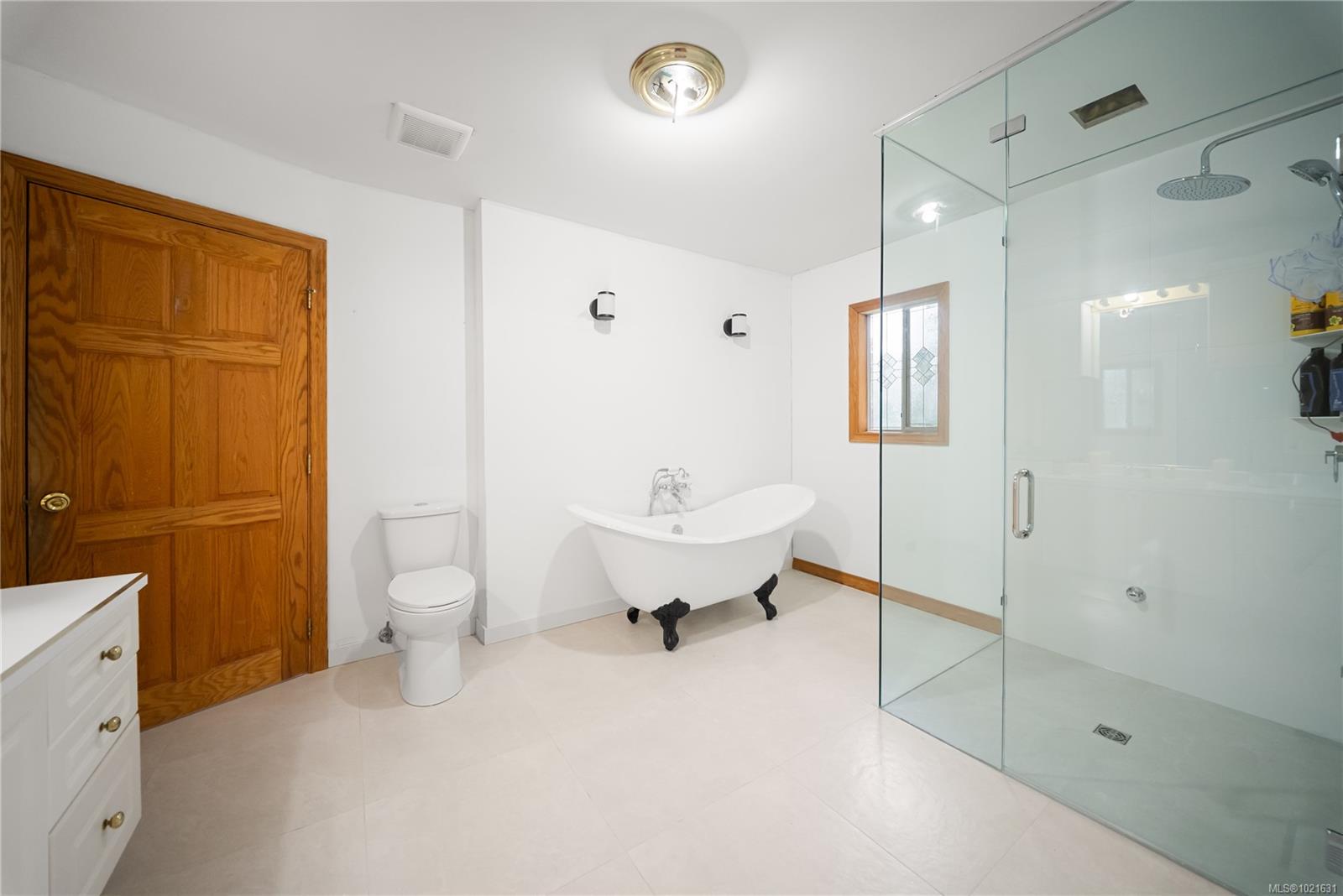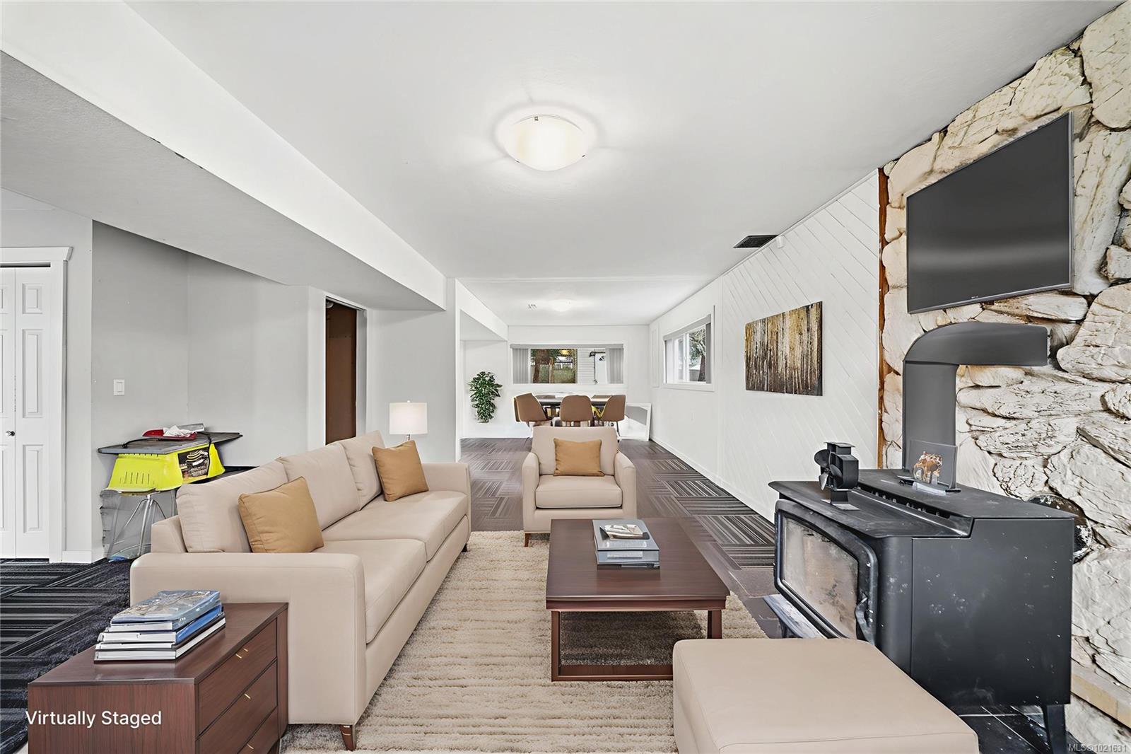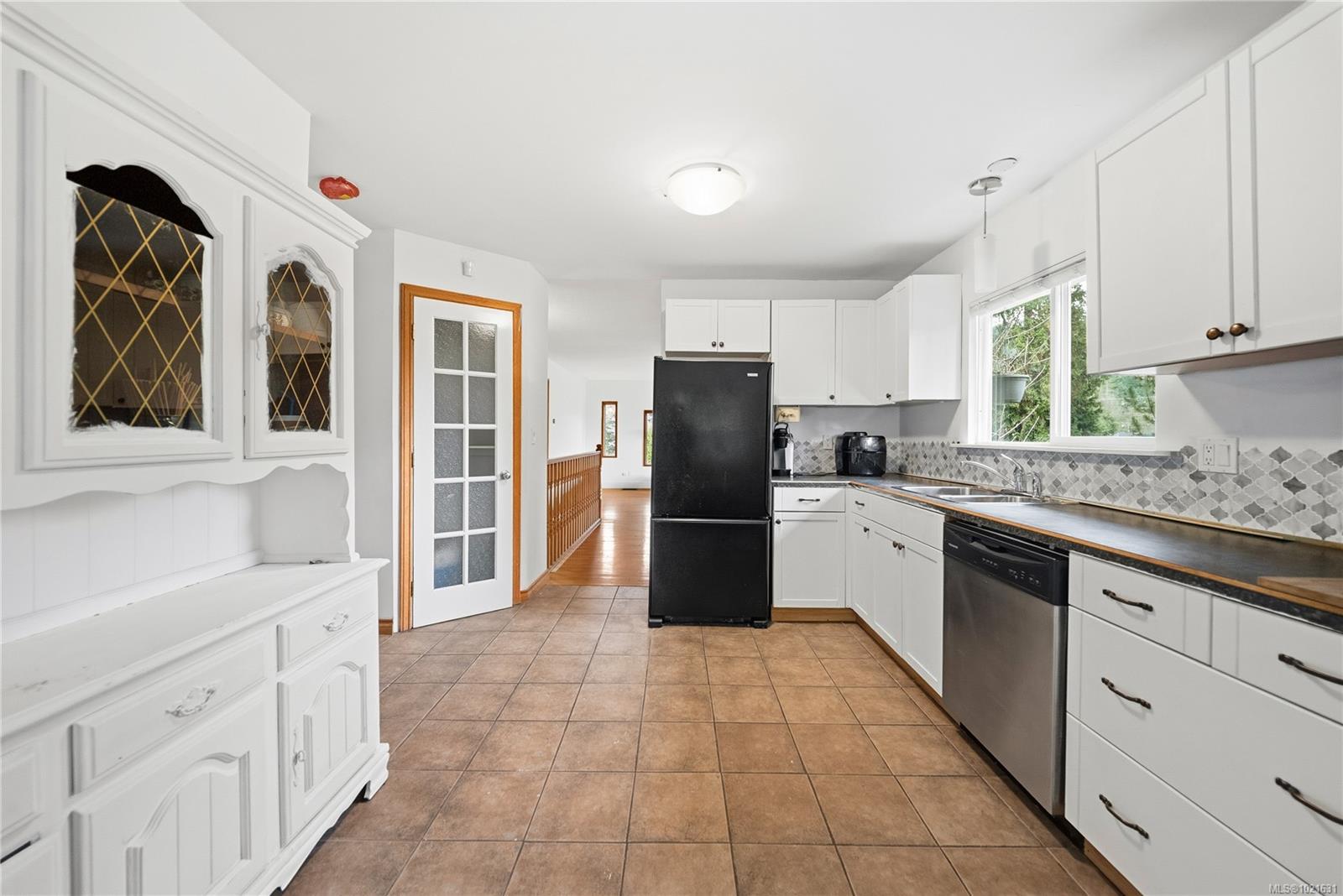 Beautiful Cinnabar home with suite on a prime R-5 zoned corner lot with potential subdivision. This property offers flexibility for families, investors, or multi-generational living, with development potential for up to four dwellings (buyer to verify w/ City of Nanaimo). The main level features a bright living room with hardwood floors and feature fireplace, plus an updated kitchen with stainless appliances, pantry, and great flow for entertaining. The primary bedroom includes an ensuite, and another bedroom also has its own ensuite—ideal for guests or family. The lower level offers a family room with woodstove, den, and separate 1-bedroom suite with private entrance. Enjoy the wrap-around deck, fully fenced yard with fruit trees, ample parking, and convenient corner-lot access. Close to parks, schools, shopping and trails. (Measurements/info approx.; verify if important.)