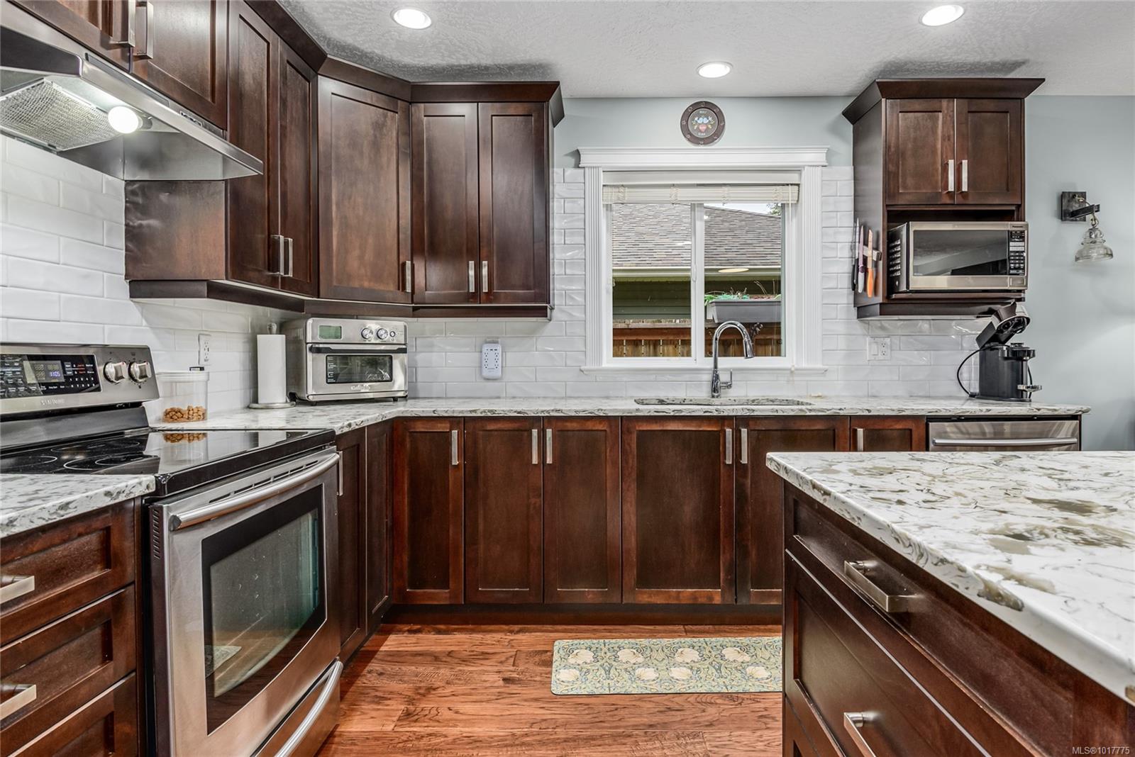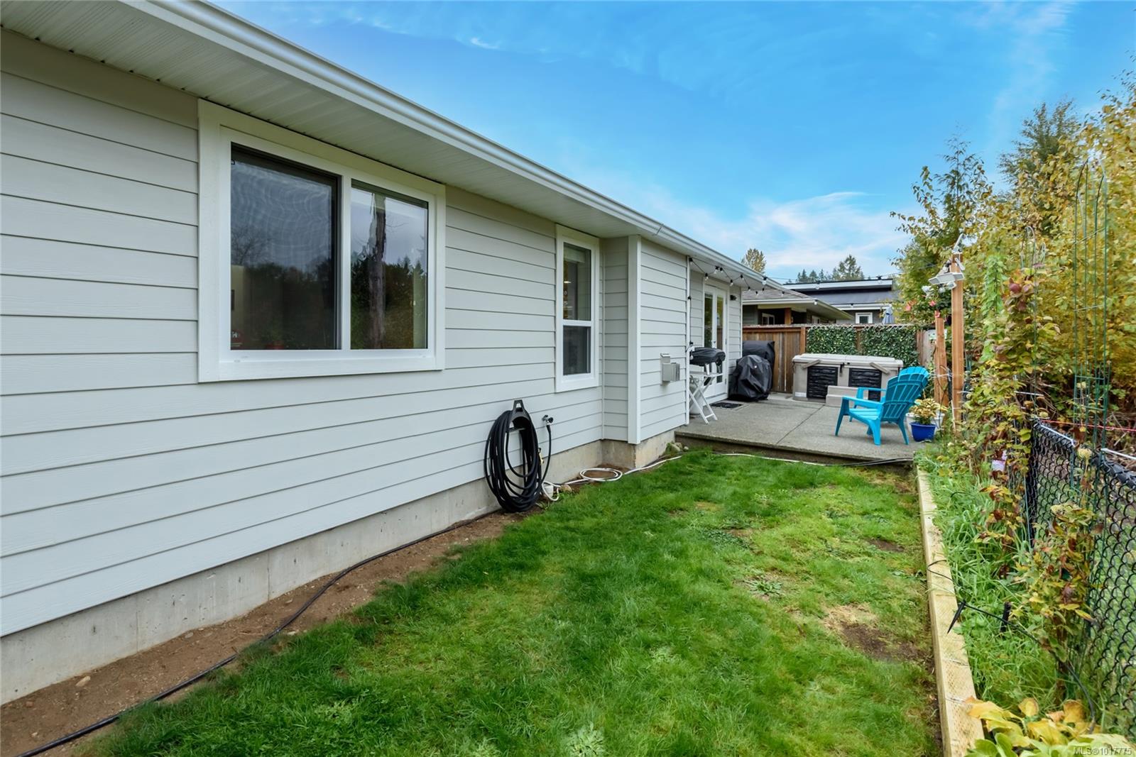 Check out this fantastic 3 bed/2bath rancher built in 2014 offering 1560 sq ft situated in Courtenay. Located on a quiet street this stylish home has rounded drywall corners & upgraded trim & baseboards. Enjoy the open concept plan with a gorgeous kitchen with quartz countertops & a large island for breakfast. The living room offers a cozy gas fireplace. The flooring is engineered hardwood & tile throughout. Interior doors are oversized for wheelchair accessibility. The primary bedroom is very spacious with a large walk-in closet and ensuite. There is the added bonus of a ductless heat pump providing cost efficient heat & air conditioning. Double car garage offers over 440 sq ft. Driveway has ample space for a couple of cars, boat or RV. The outside deck area has a natural gas connection for the BBQ & backs onto a recently cleared greenbelt area with plantings for added privacy. Just a few minute drive to downtown, schools & parks & a few minutes drive to the Courtenay Connector.