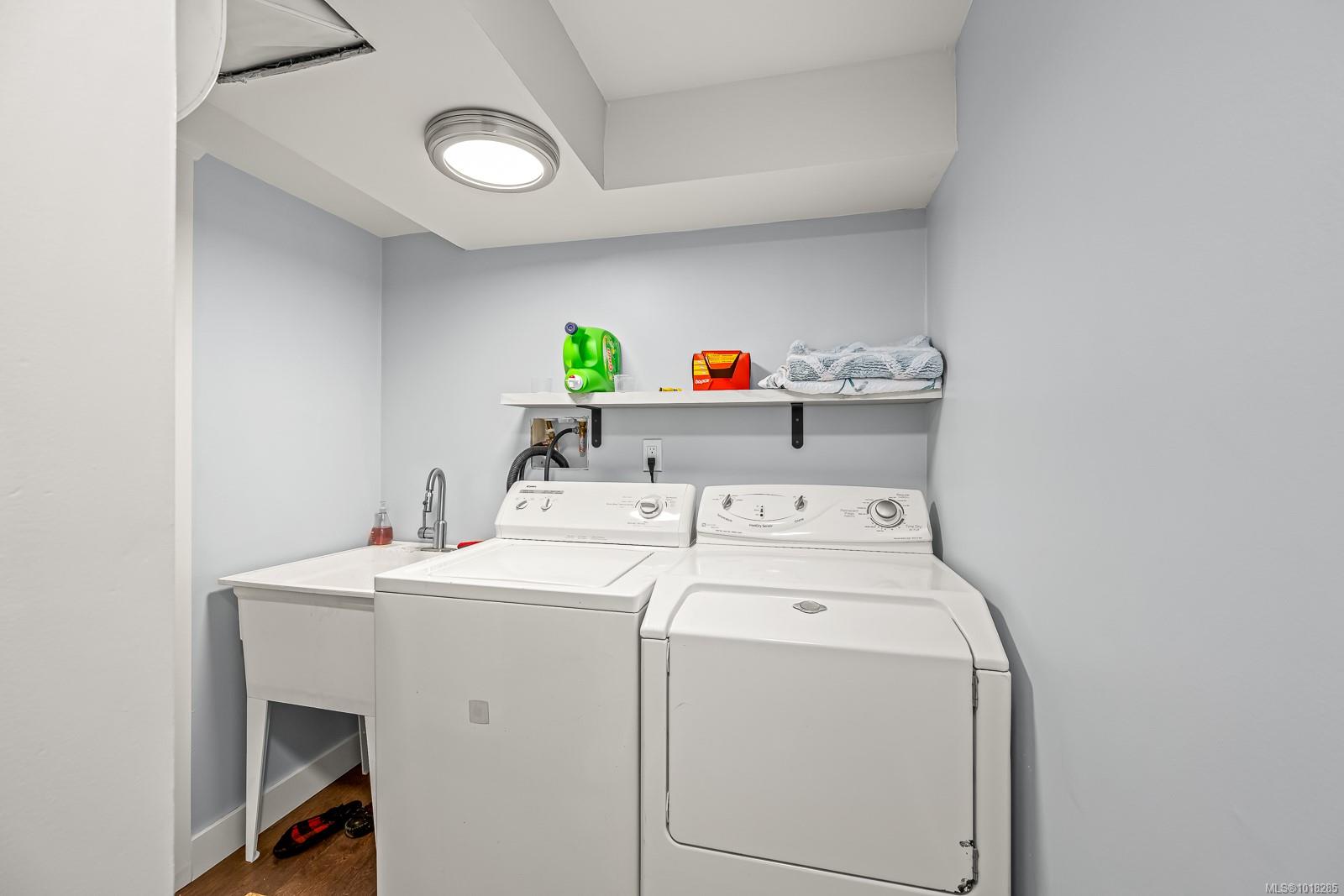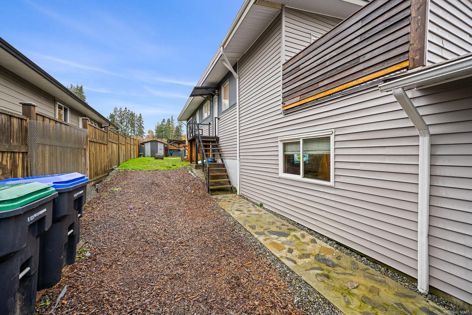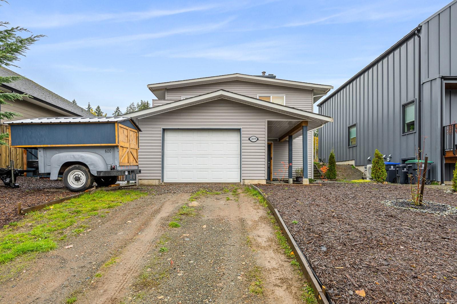 Spacious and updated 5 bedroom, 2 bathroom home on a quiet family street in the City of Courtenay. This ground level entry home offers 3 large bedrooms and a renovated 4 piece bathroom on the main floor, updated kitchen, cozy living room with wood burning stove and custom river rock hearth. There is also a flex space with access to a balcony off the front of the home, and the majority of the flooring has been replaced throughout. The improvements continue on the lower level, with 2 large bedrooms, which one could be used as a rec room, 3 piece washroom with tiled shower, wet bar/kitchenette, laundry and access to the double garage. Close to downtown, schools & parks.All Measurements and data are approximate, buyer to do their own due diligence, sold as is where is.