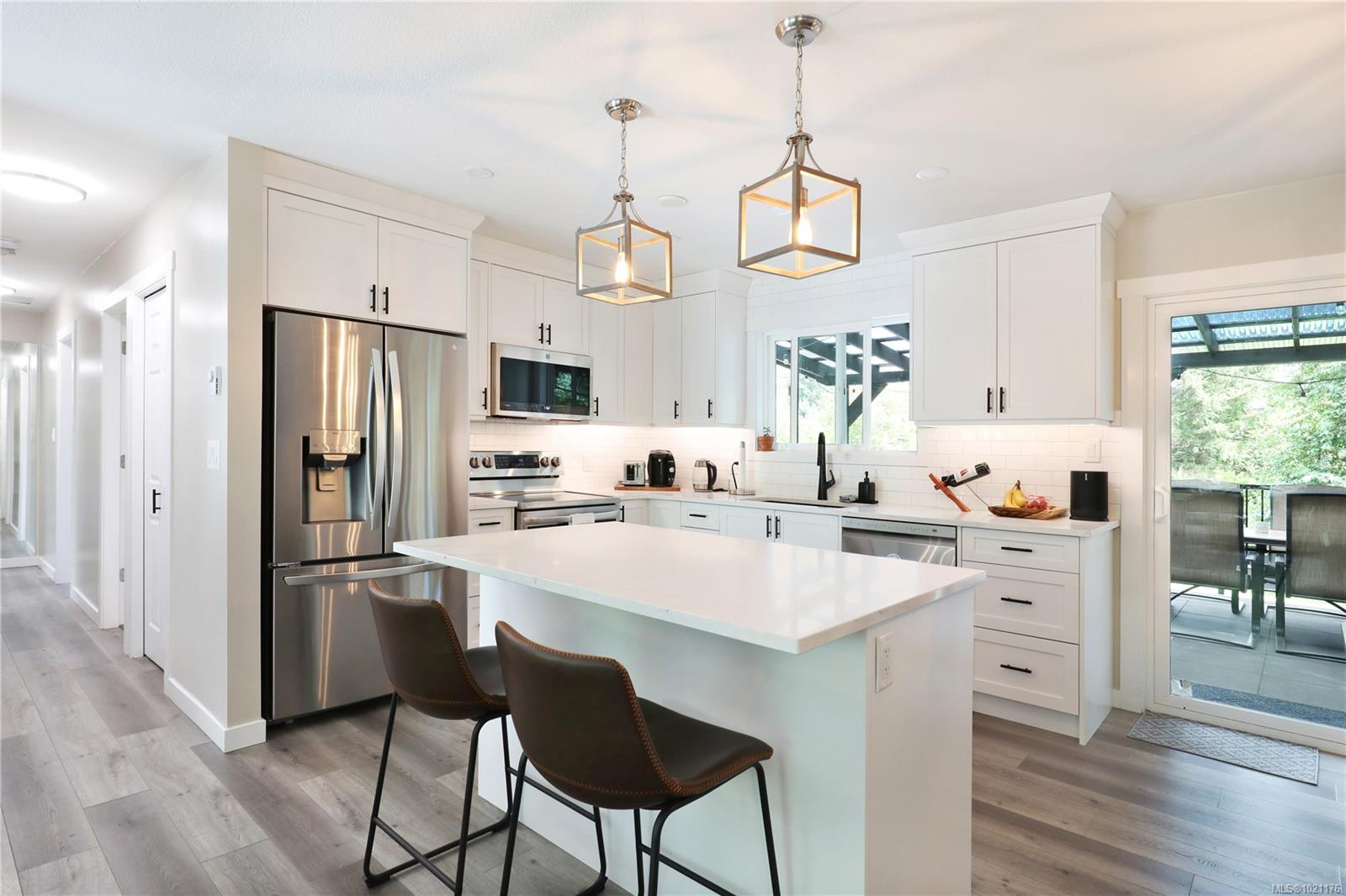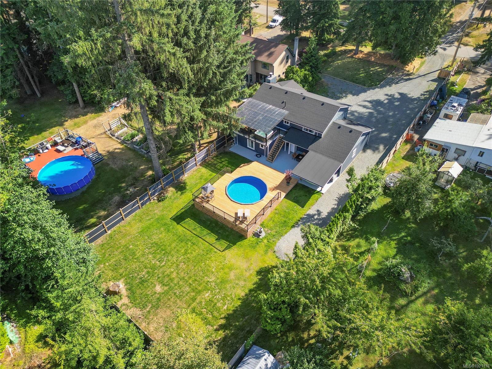 Fully Renovated home on .43 Acre quiet dead end road minutes from downtown, this stunning property offers privacy & convenience. Close to schools, shopping, parks, River, & Comox Lake, enjoy endless hiking, biking, fishing, and camping opportunities at your doorstep. This home renovated in 2023 sits on a generous lot & features 2 self-contained suites Upstairs:3bedrooms,1full bathroom open concept kitchen,living,& dining area, walk-out to a fully covered concrete deck & Relax in the hot tub & entertain guests in style. Downstairs Suite 2bedrooms + a den,2bathrooms,heated tile flooring,Full kitchen,living,& dining area perfect for extended family or rental income. Private backyard oasis, concrete patio half covered for year-round use Above-ground swimming pool,custom wood decking with plenty of space for entertaining. This property is ideal for multi-generational living or as an income-generating investment. With all the upgrades already done, all that’s left to do is move in and enjoy!