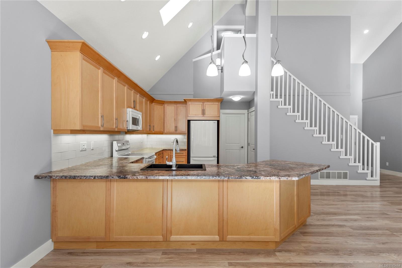 This beautiful custom home offers over 2,000 sq ft of comfortable living space. It features soaring ceilings, a gas fireplace, maple kitchen, engineered flooring, and a heat pump for year-round comfort.