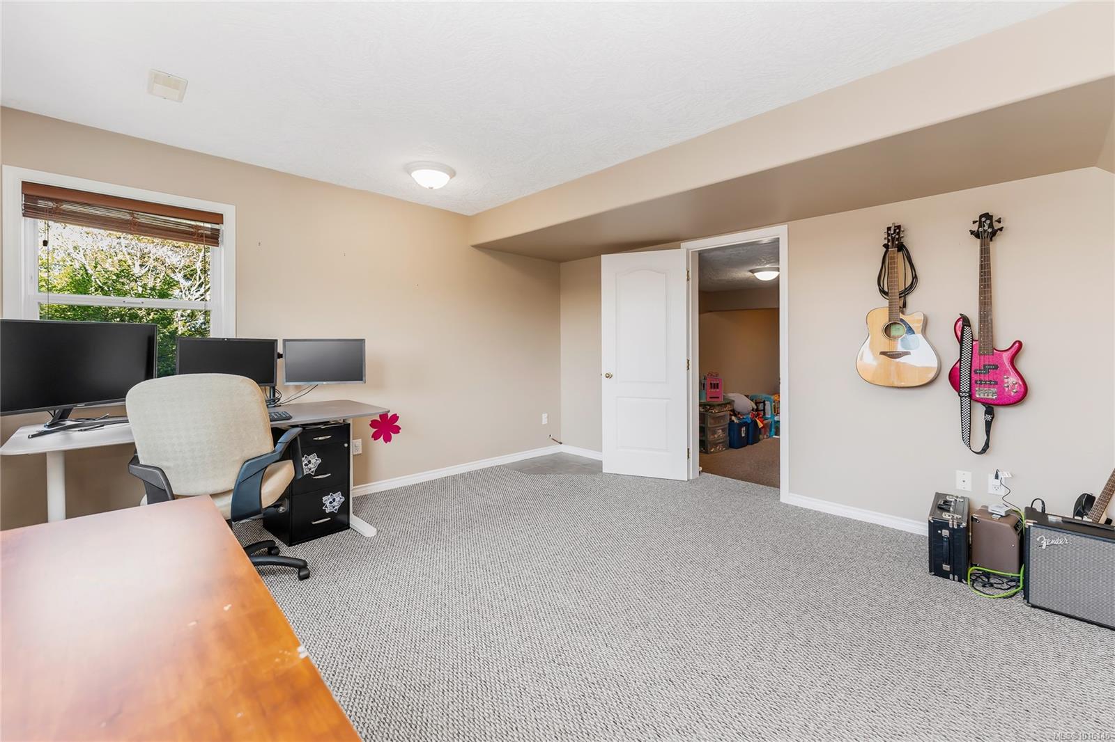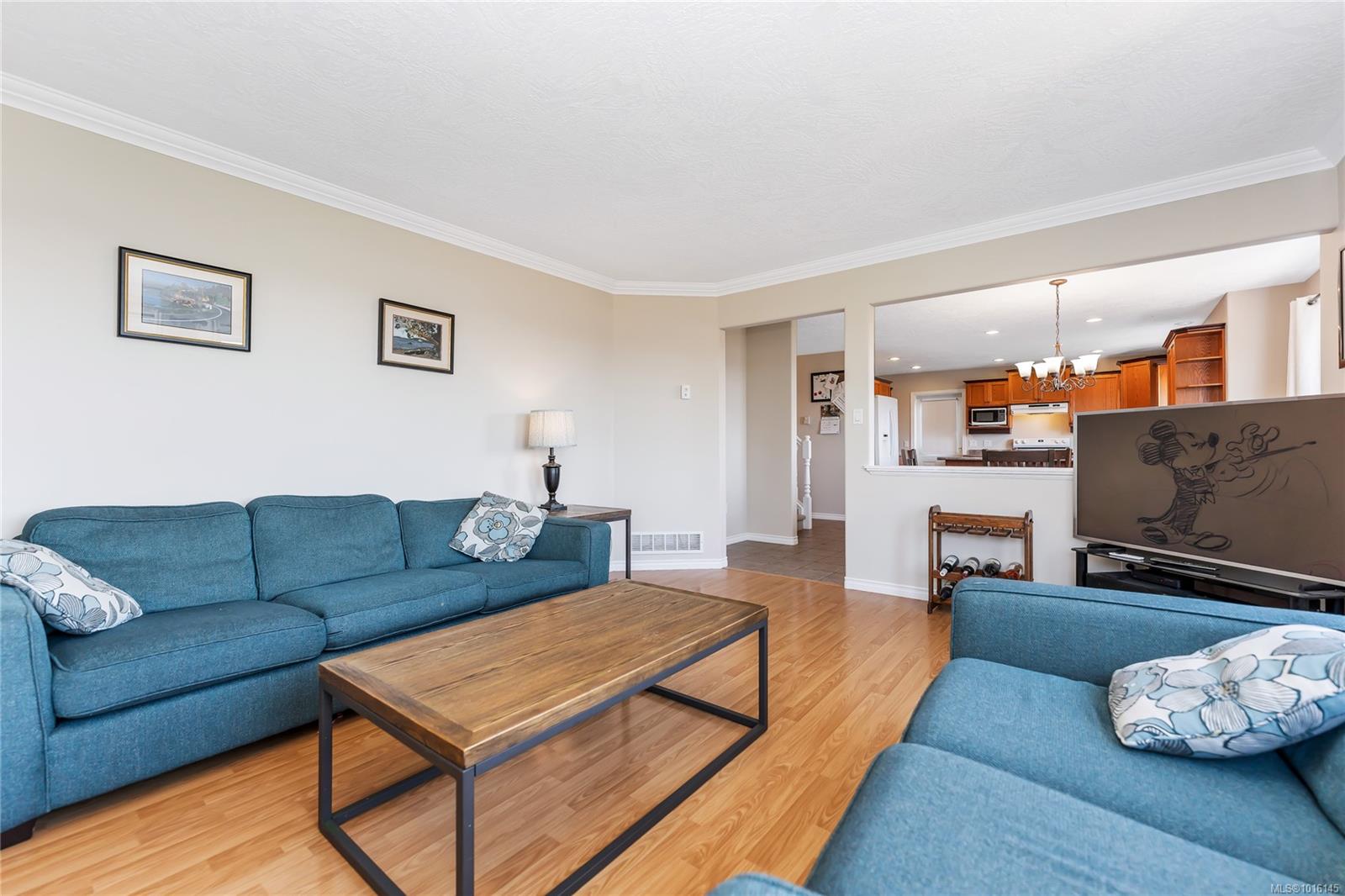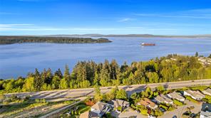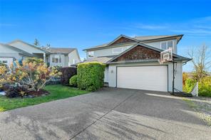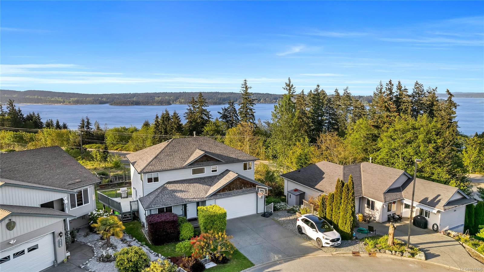 Wake up to sweeping ocean, island, and mountain views in this 4-bed, 4-bath home tucked on a quiet cul-de-sac in one of Ladysmith’s most secure and family-friendly neighbourhoods. From the bright, open-concept main floor, the kitchen flows onto a spacious deck with gas BBQ hookup—ideal for summer evenings and weekend brunches. Upstairs, the generous primary suite features a walk-in closet, soaker tub, and walk-in shower, while two additional bedrooms and laundry offer everyday convenience. Downstairs, the walkout basement adds rec and family rooms plus in-law suite potential with plumbing in place—perfect for growing families or multigenerational living. A main-level office, double garage, and a level, landscaped yard complete the picture. Close to beaches, trails, and schools, this home quietly offers the space, security, and views many wait years to find.